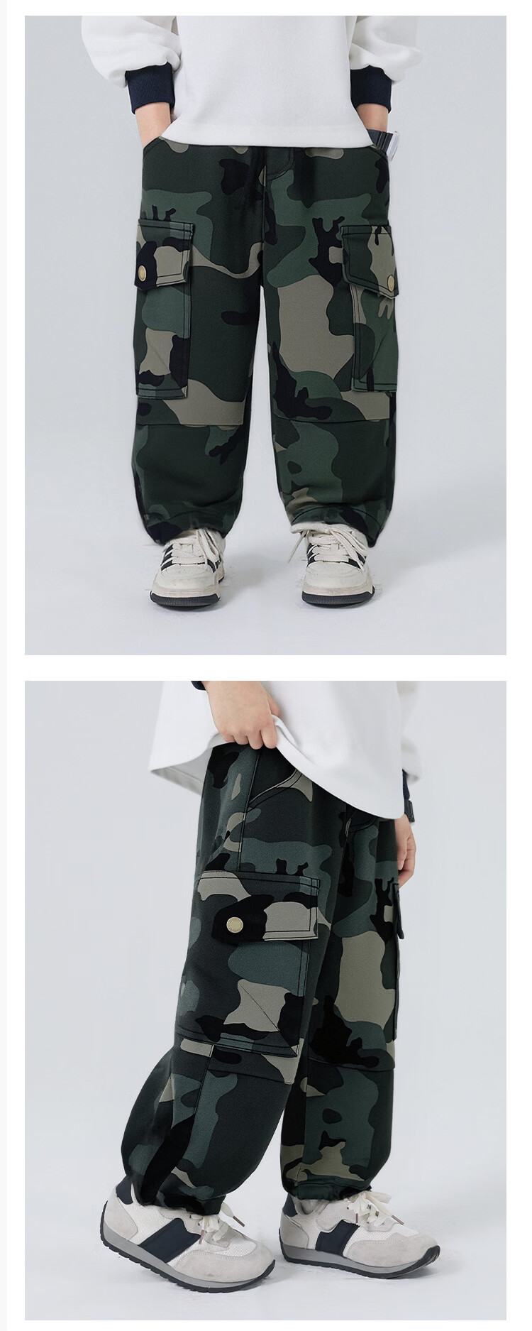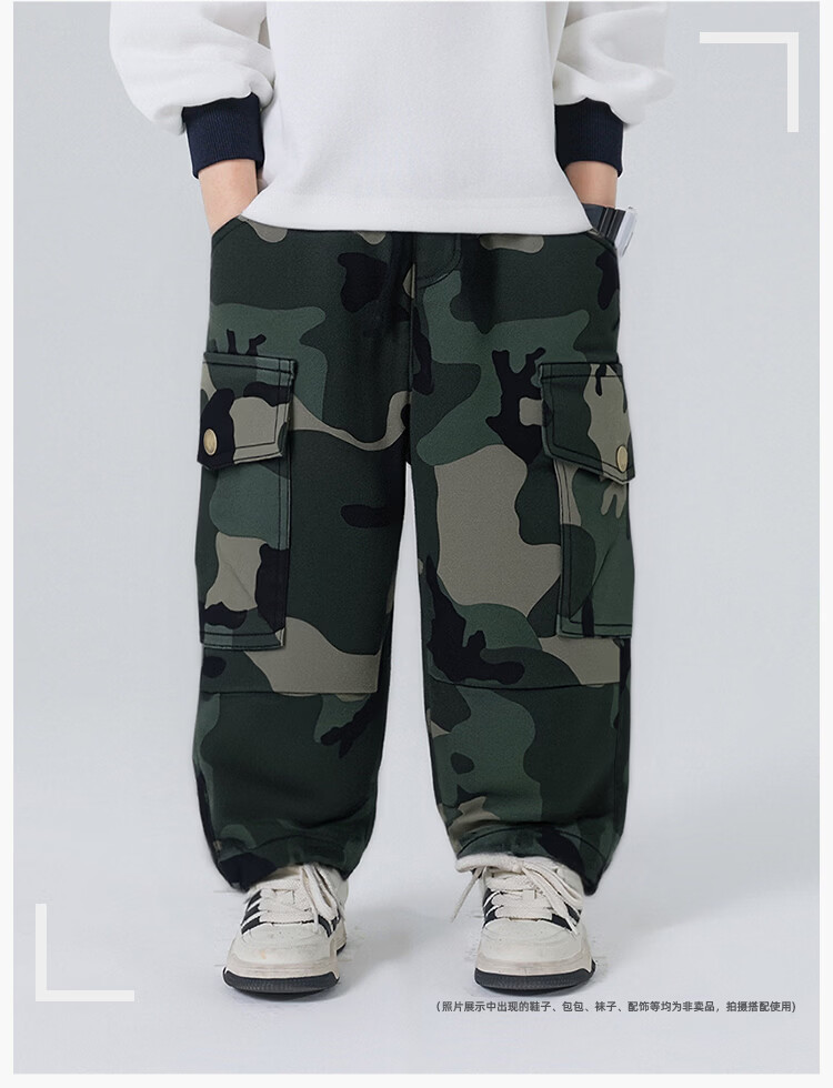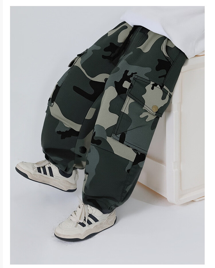 Yoyo Fairy Tale Boys' Camouflage Pants Spring Clothing 2026 Spring and Autumn Children's Overalls Medium and Large Children's Fashionable Casual Pants Cotton Camouflage 100