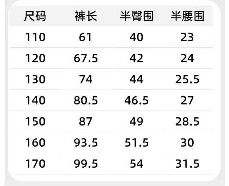 Outseam (cm) 99 cm 101.5 cm 104 cm 106.5 cm 109 cm