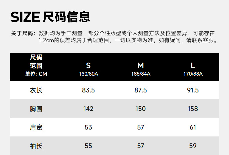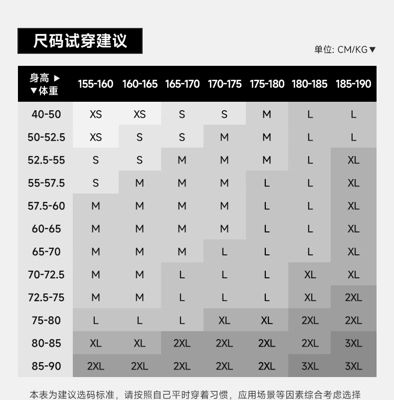 China (cm) 160-165/84-86 165-170 / 88-90 167-172 / 92-96 168-173 / 98-102 170-176 / 106-110