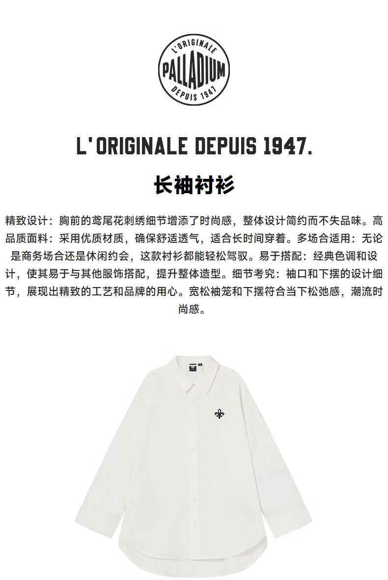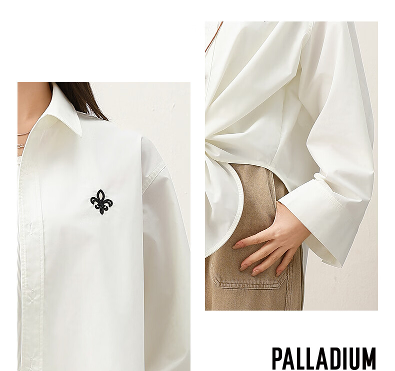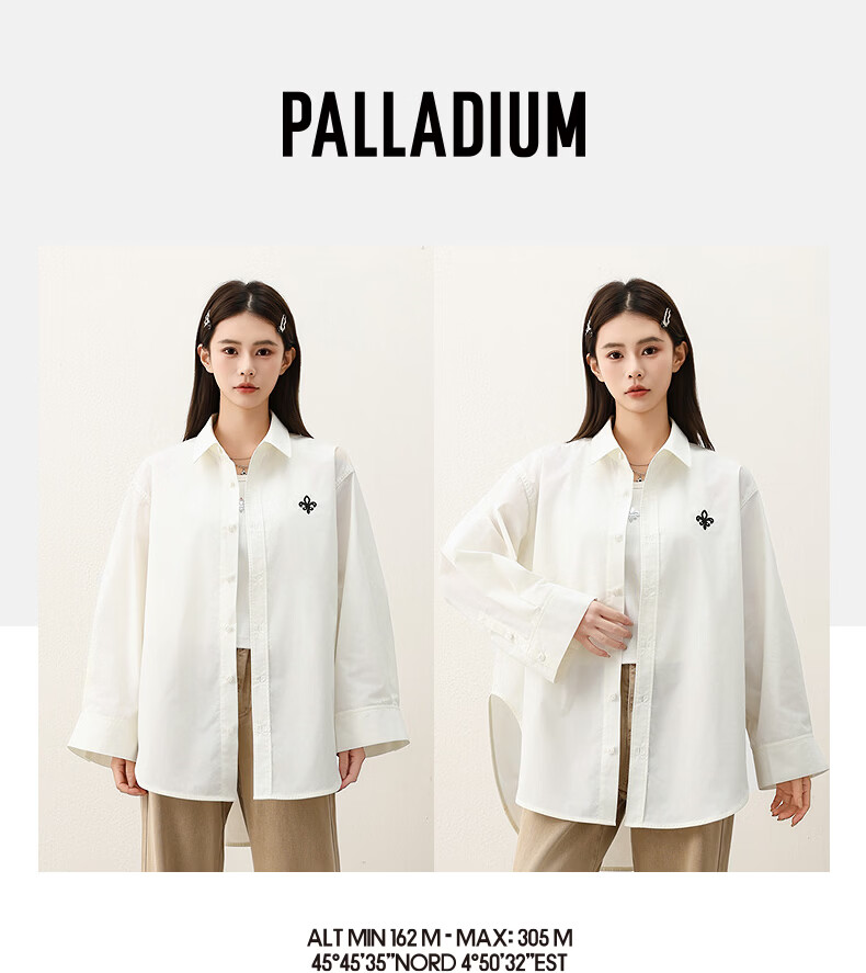 PALLADIUM Paladin top classic iris embroidered women's long-sleeved shirt 1913674 Marshmallow color L