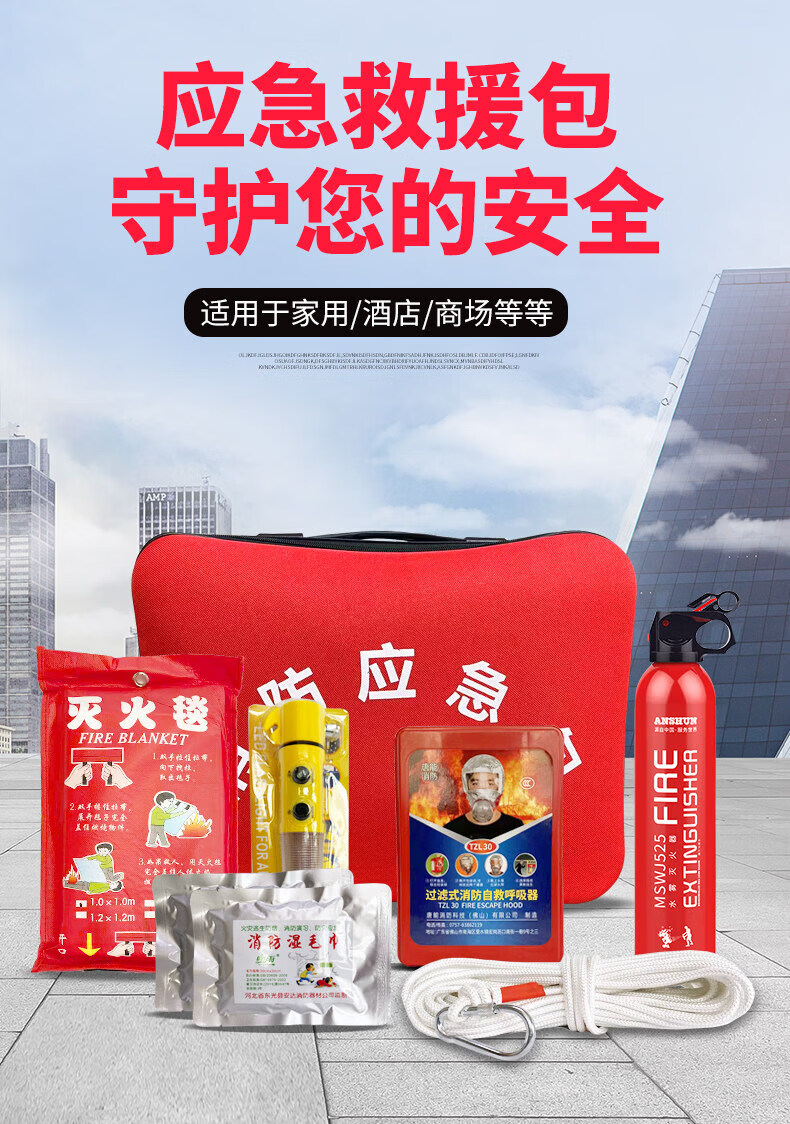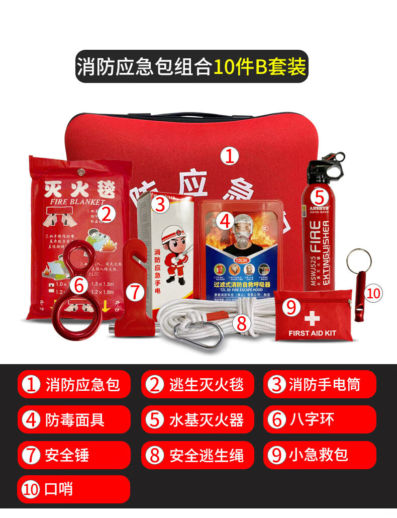 Flame Warrior Home Fire Escape Emergency Kit Water-Based Fire Extinguisher Fire Fighting 9-Piece Fire Blanket Smoke Mask Self-Rescue Set Escape Kit Combination 9-Piece Set Water-Based