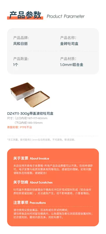 Yusen Yifeng and Rili Golden Brick Toast Mold with 23101 pine mold non-stick red bean and meat floss baking bread lid 471 MY23101 with lid 182x120x54mm MY23101 with lid 182x120x54mm