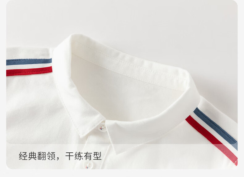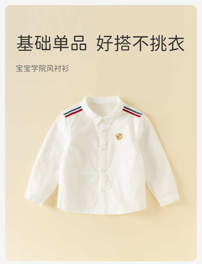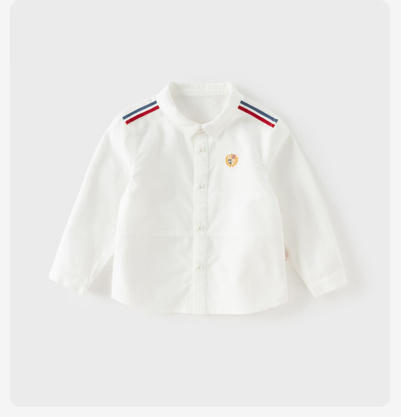 DAVE&BELLA children's shirt 2026 spring new college style boys' white shirt pure cotton children's top baby bottoming shirt off-white ready stock 120 cm (recommended height 110-120cm)