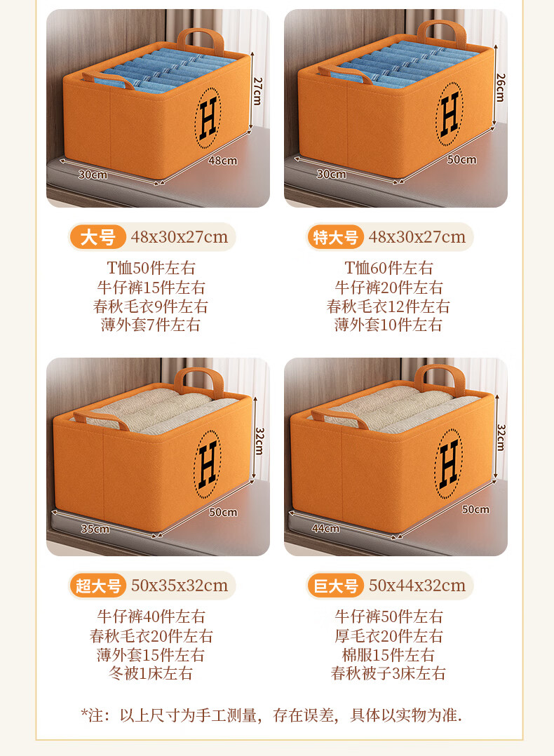 Youna Clothes Storage Box Home Wardrobe Layered Artifact for Autumn and Winter Clothes and Trousers Folding Box Storage Basket Organizing Box Medium Size 40*27*21 Shoot One and Get Seven Pieces