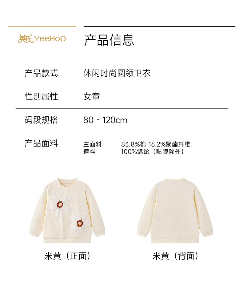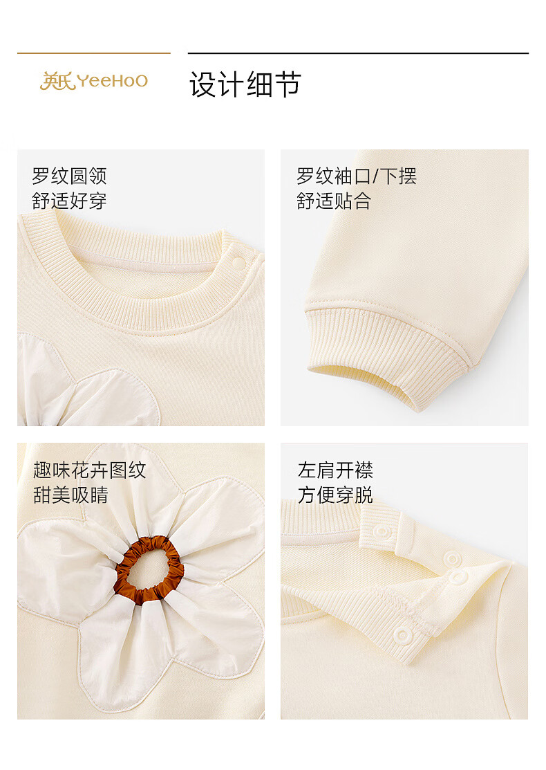 YEEHOO Haute Couture Series Children's Sweaters Baby Girl Round Neck Sweater Spring and Summer New Casual Cute Top Beige 90 cm