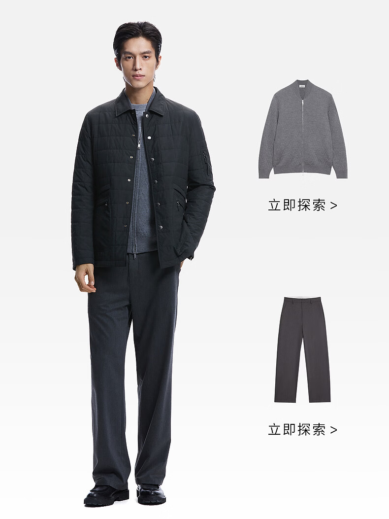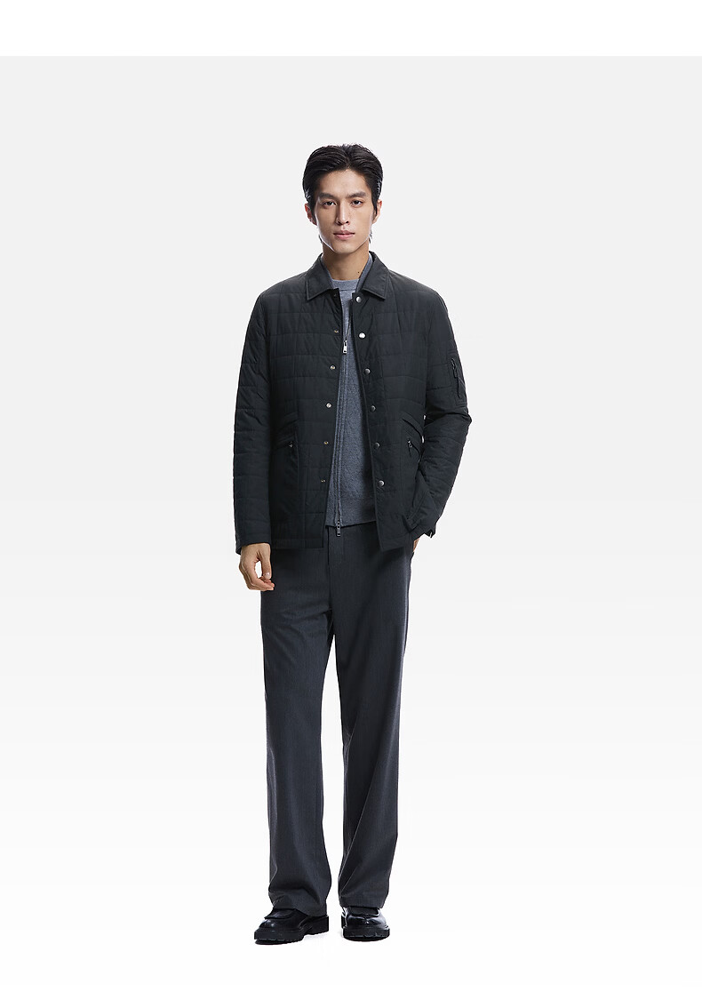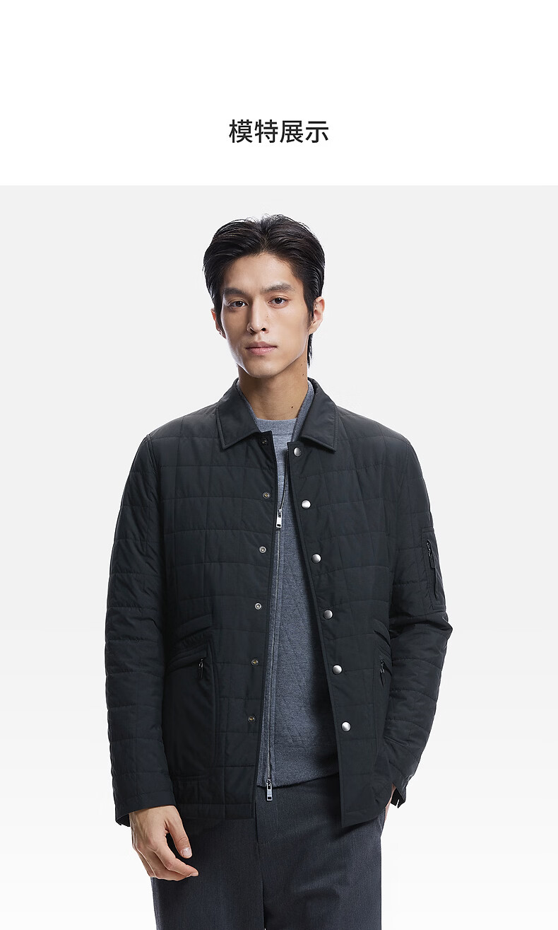 ERDOS men's pongee lapel executive jacket 26 years early spring new shirt version cotton jacket light and warm black M 170/92A