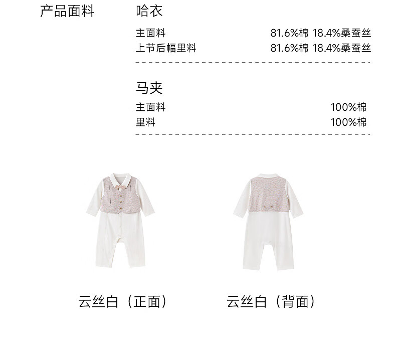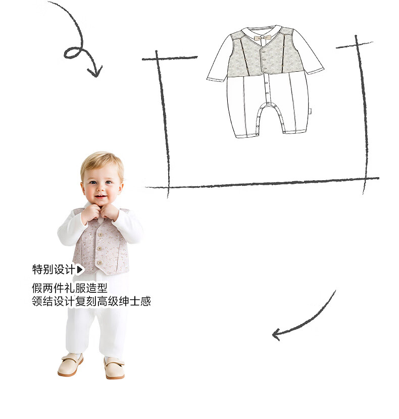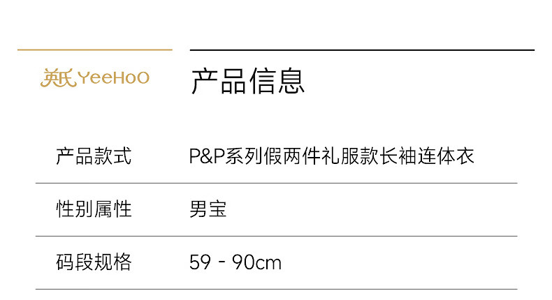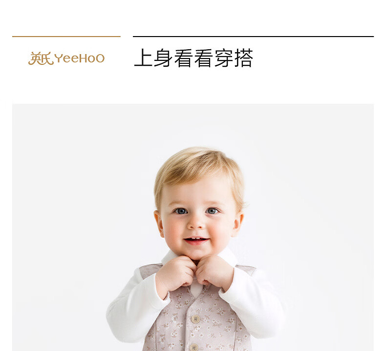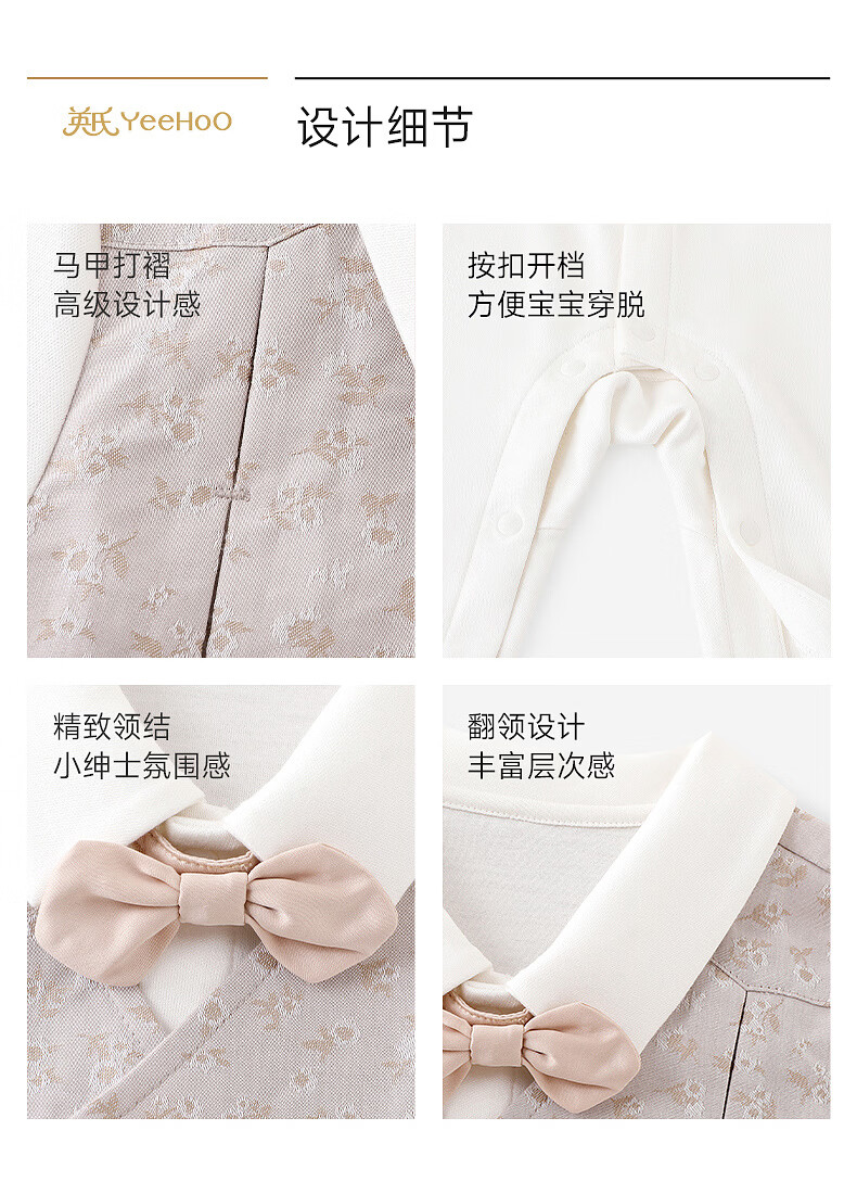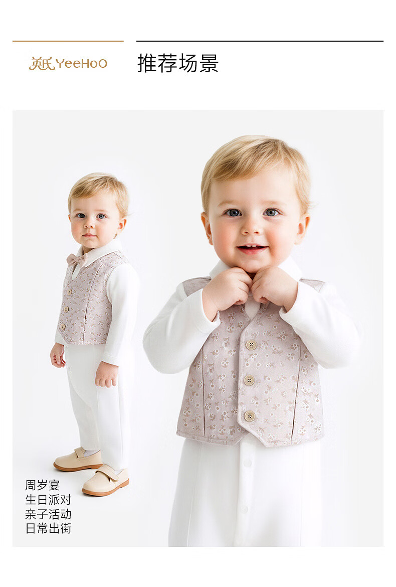 YEEHOO Haute Couture Series Baby Jumpsuit Male Baby Fake Two-piece Harness Spring and Summer Long Sleeve Harness Handsome and Versatile Yunsi White 66cm
