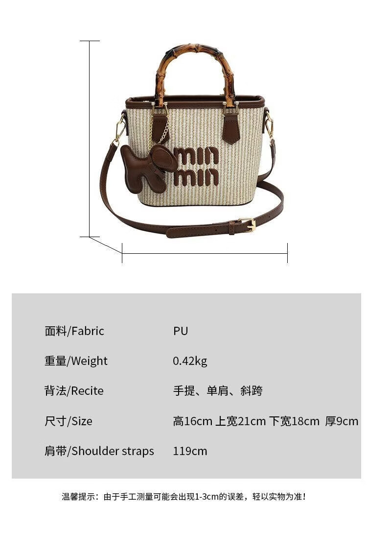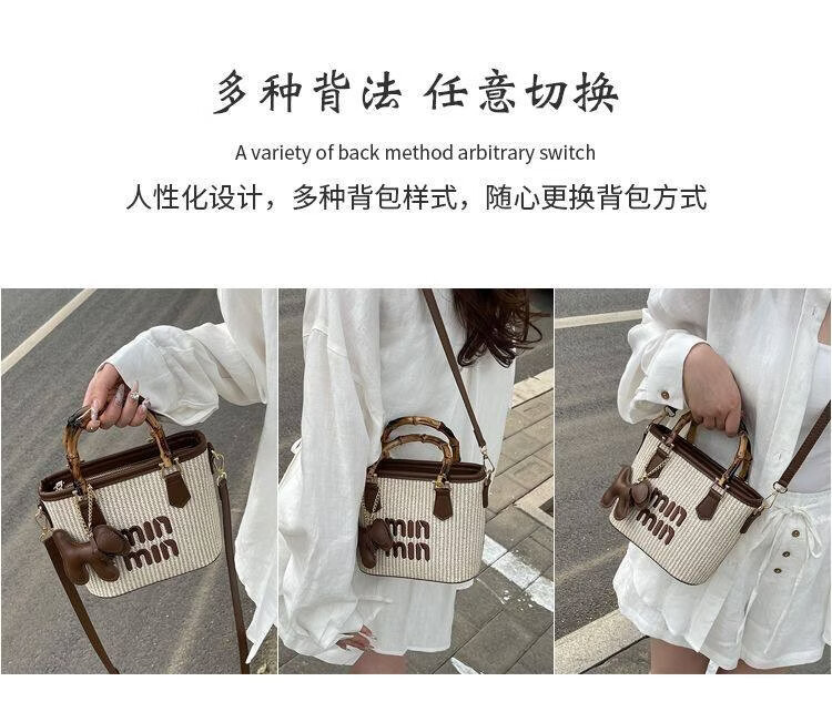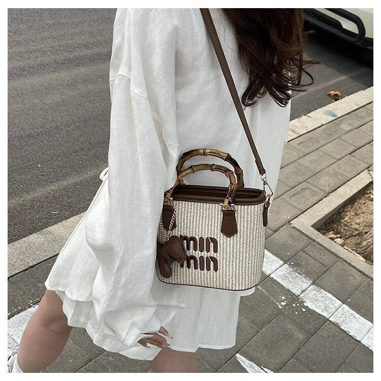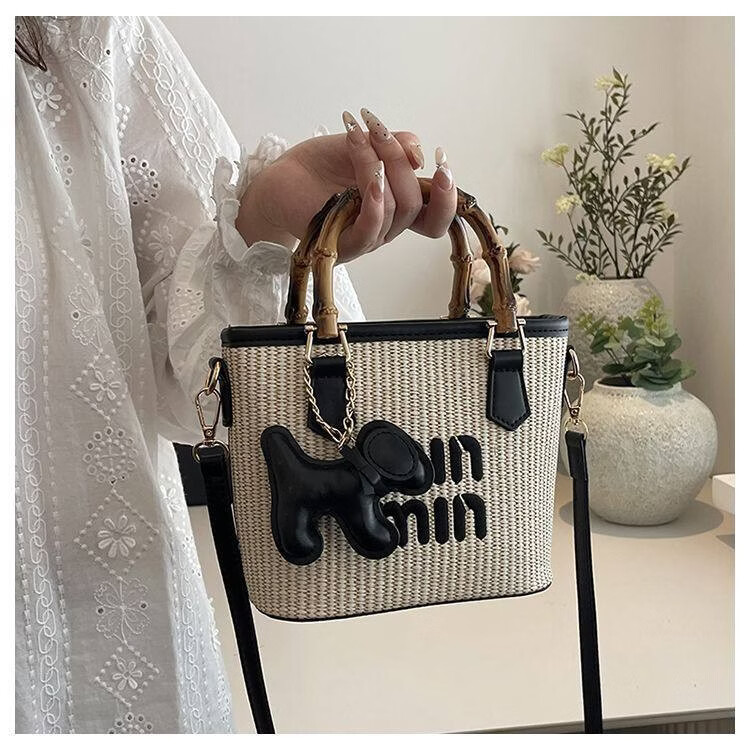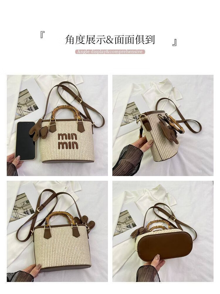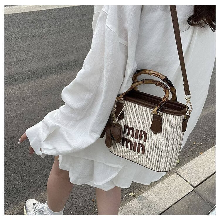 Woodpecker (TUCANO) niche versatile crossbody bag new fashion woven high-value shoulder bag commuting out portable bucket bag white with brown belt leather puppy pendant