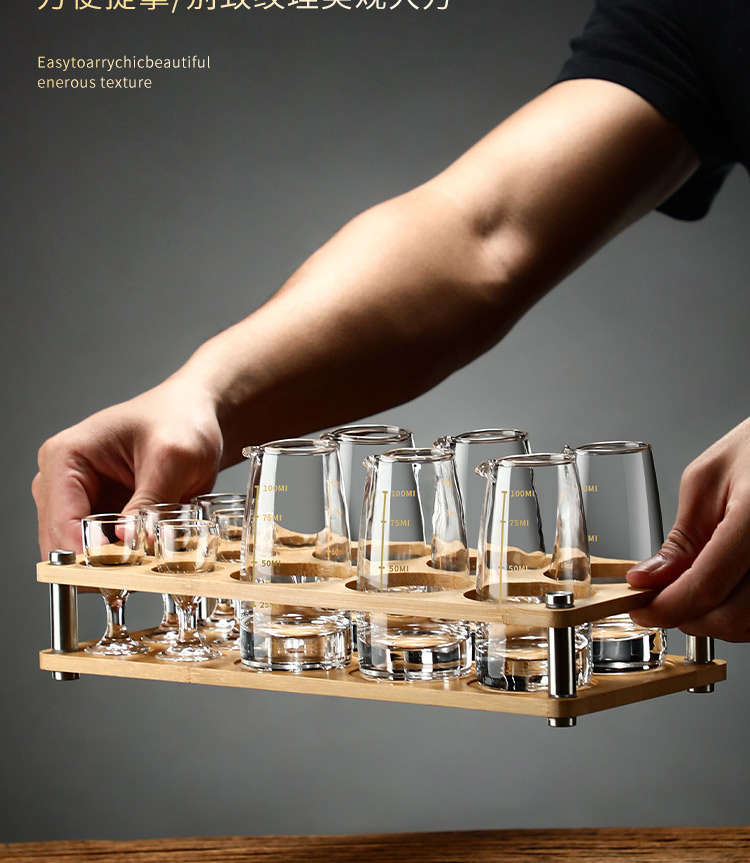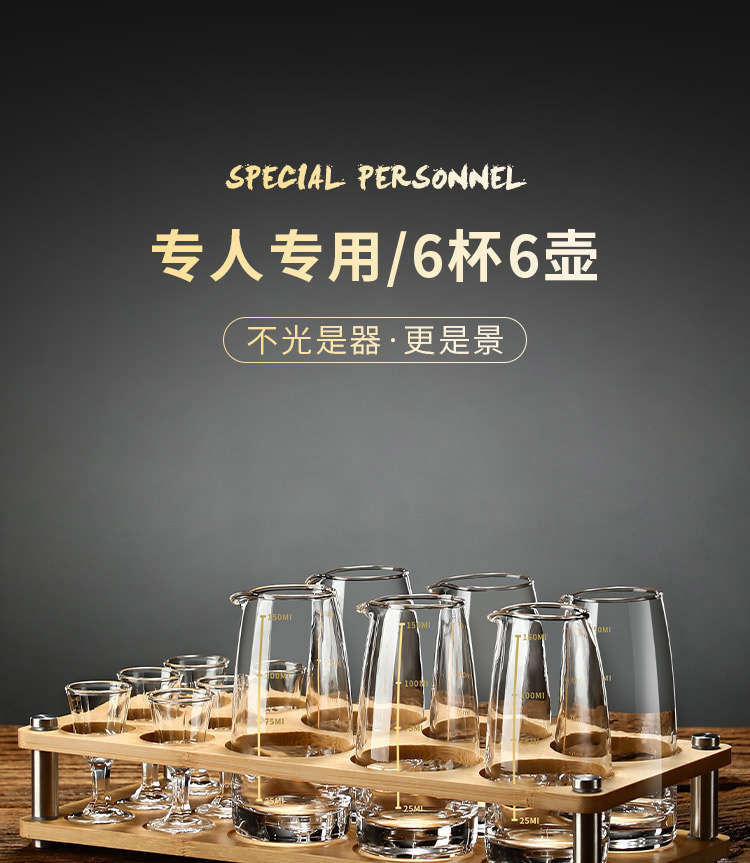 Fantasy white wine glass set, six-piece wineware set with gold scale, gold scale 100-point wine vessel, Qinglian cup x 6 cup holders