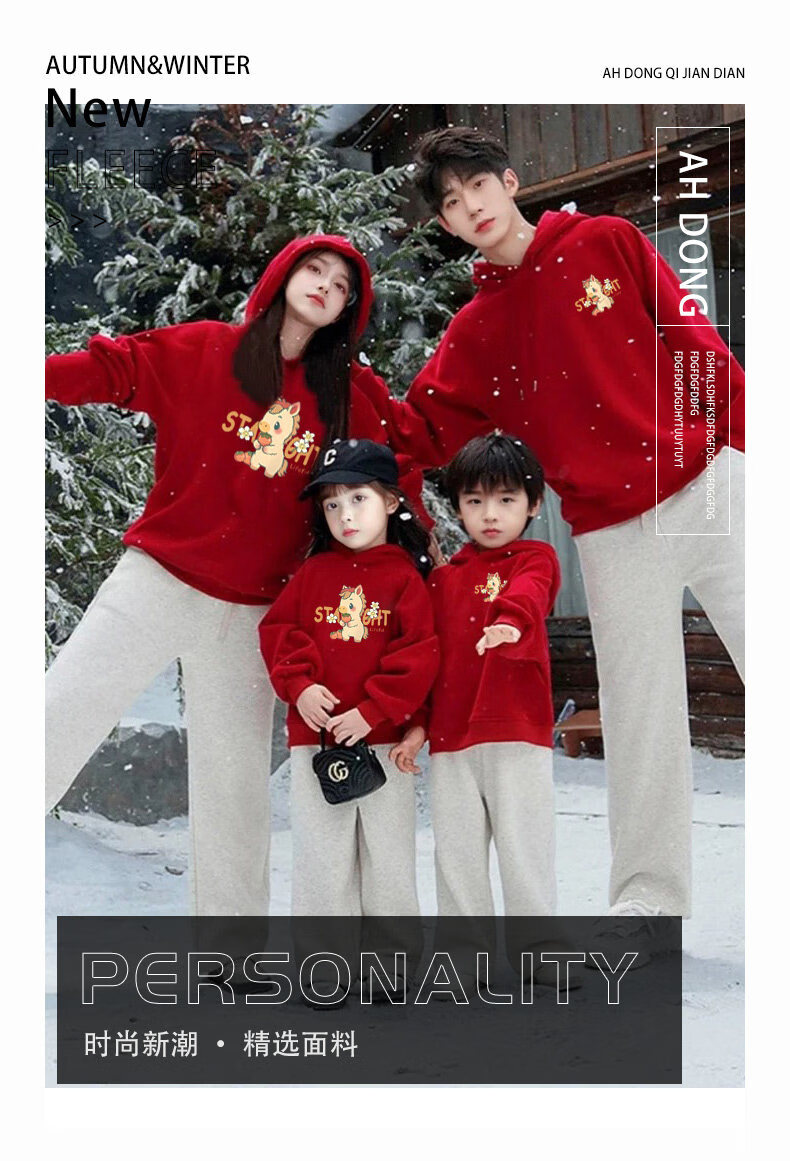 Year of the Horse parent-child wear 2025 new sweatshirt mother and daughter winter wear for the new year, red regular style 90 baby boy cm_18-25Jin Jin is equal to 0.5 kg
