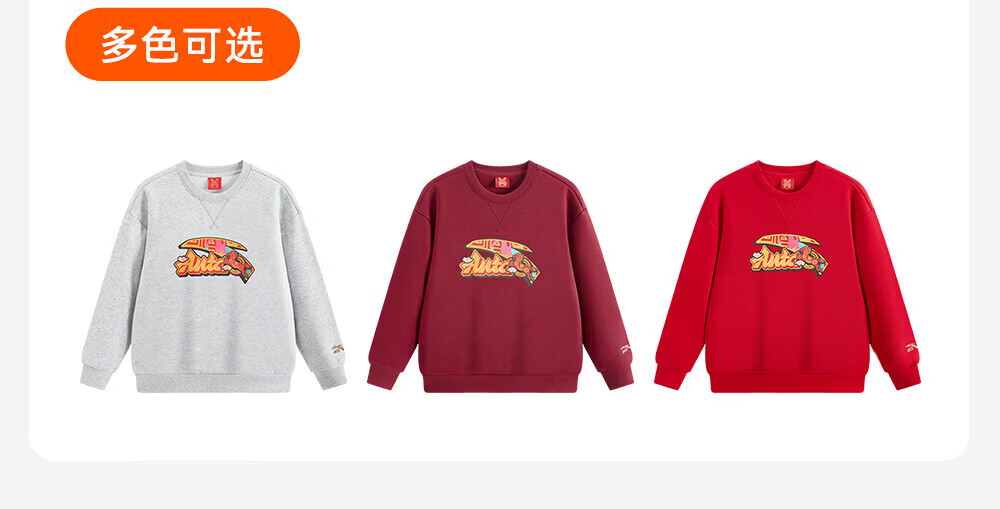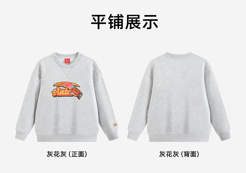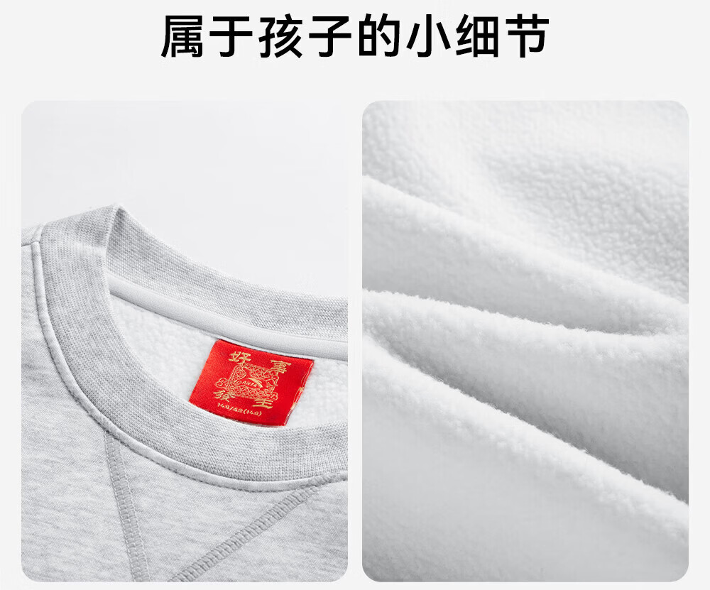 ANTA children's fleece sweatshirt 2026 Spring New Year's model for the Year of the Horse, middle and large children's cotton thickened and warm zodiac year New Year's greeting clothes, gray floral gray, casual and versatile 140 cm
