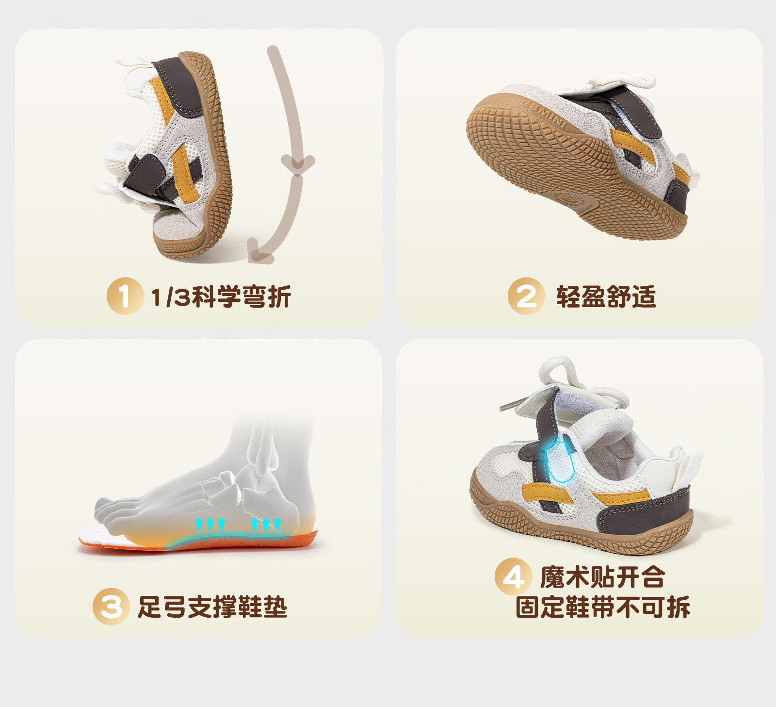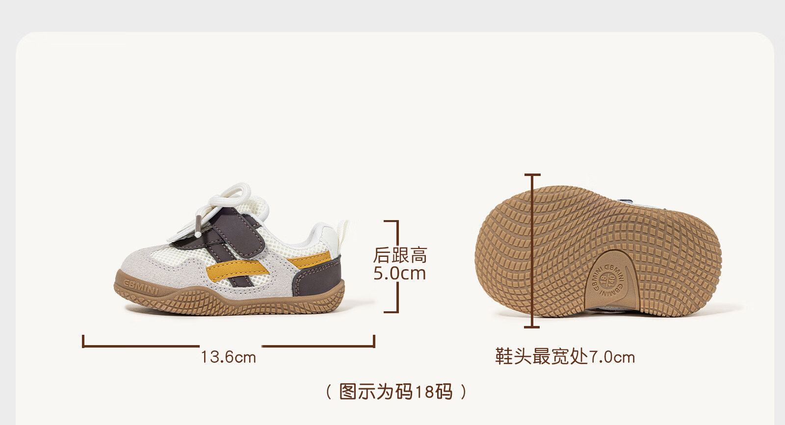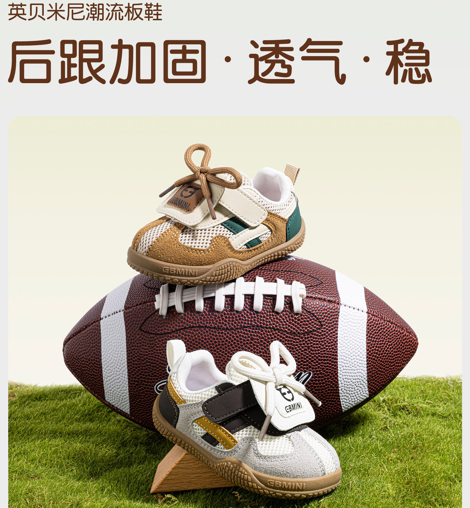 Inbemini boys toddler shoes 2026 spring new versatile children's moral training shoes girls sneakers baby shoes khaki brown 19 inner length 12.9CM suitable for feet around 12.2CM