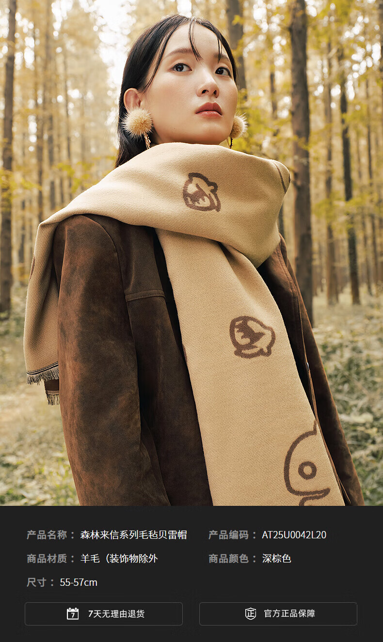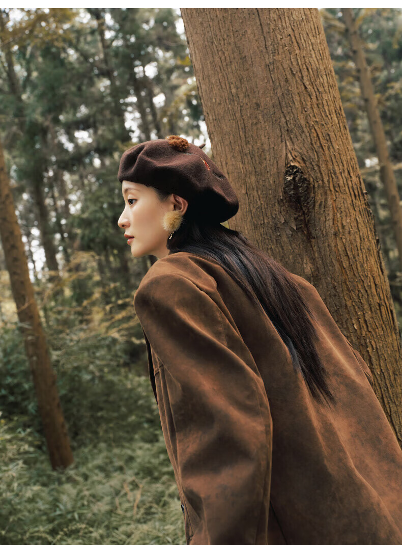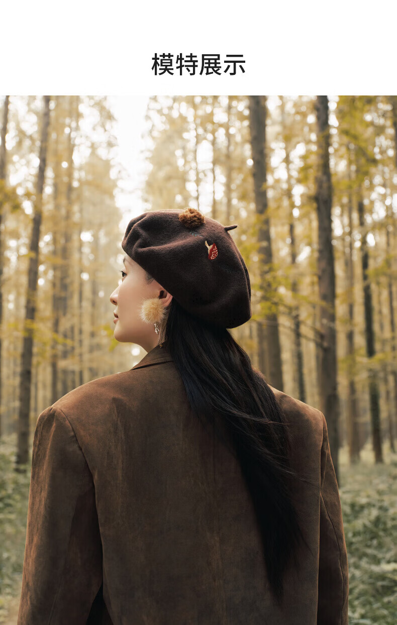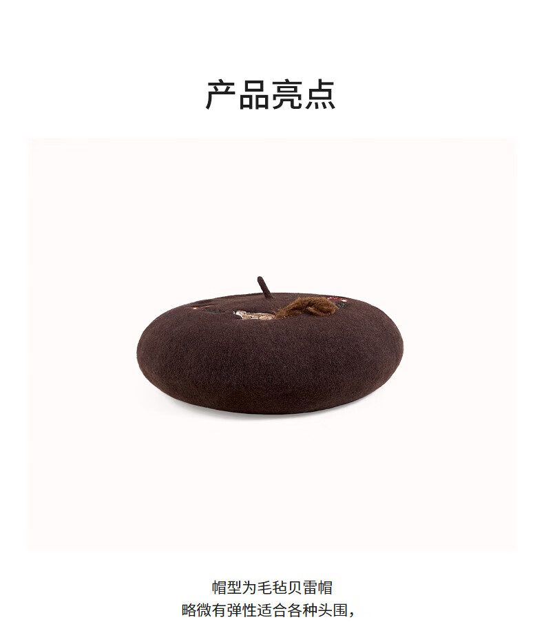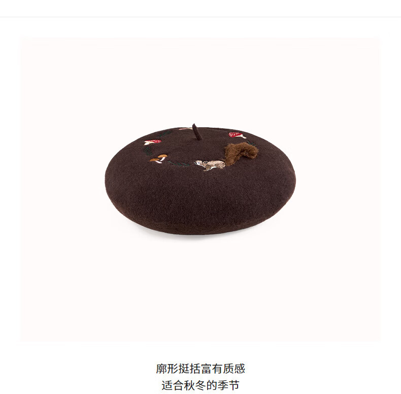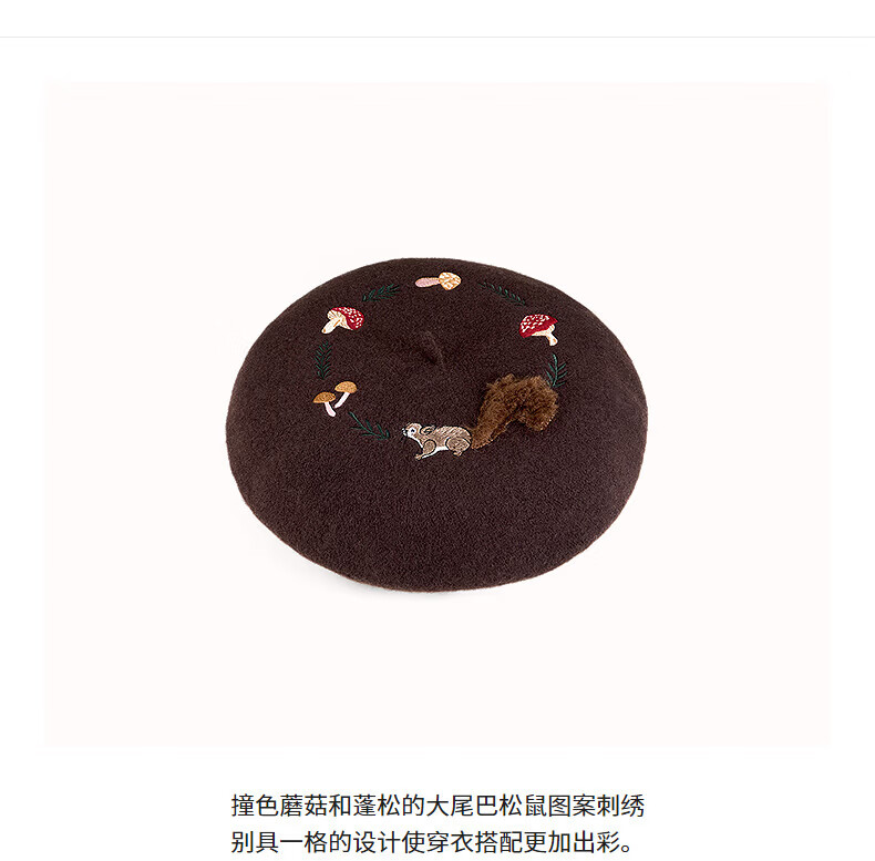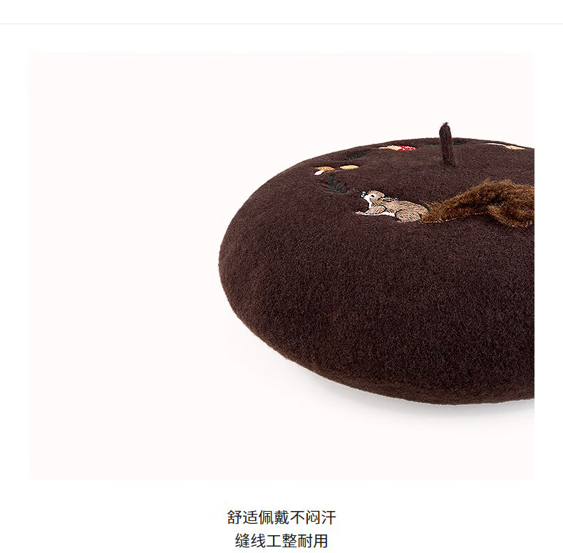 AJIDOU Forest Letter Series Squirrel Felt Beret New Year's Eve Gift Dark Brown One Size