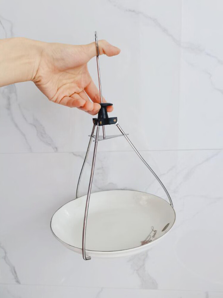 Fantasy stainless steel anti-scalding three-claw chuck. Practical plate-removing clamp for the kitchen. Thick pot and bowl-removing tool (choose this one for clamping the steaming hole). The claw tip points downward.
