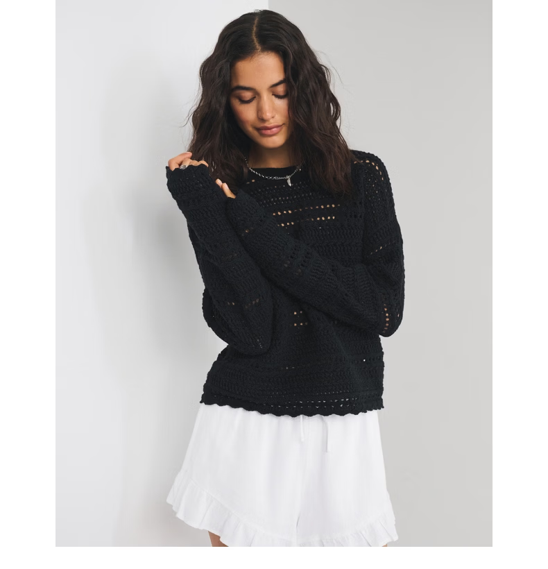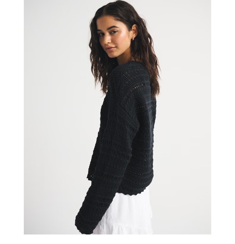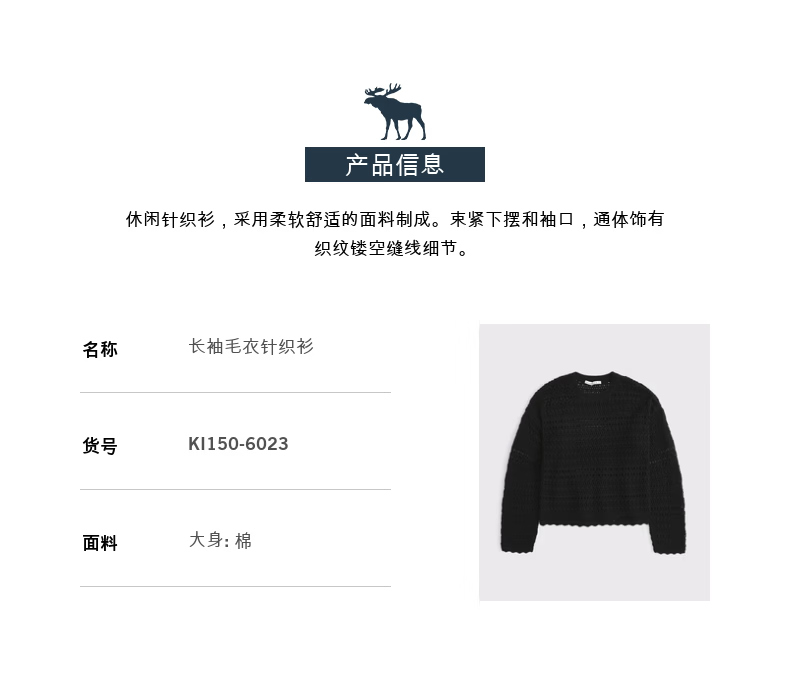 Abercrombie & Fitch American fashion resort style hollow design cotton long-sleeved sweater sweater 26 spring women's 150-6023 black XXS (160/76A)