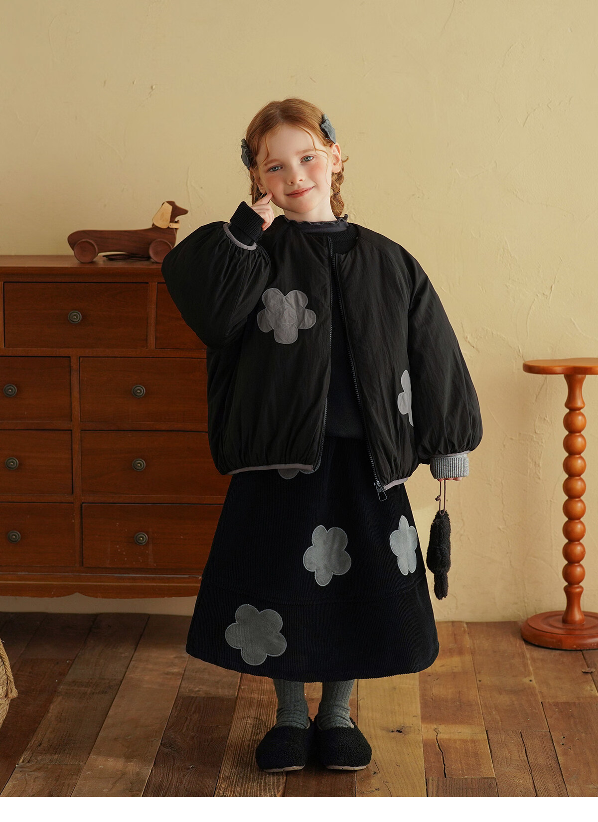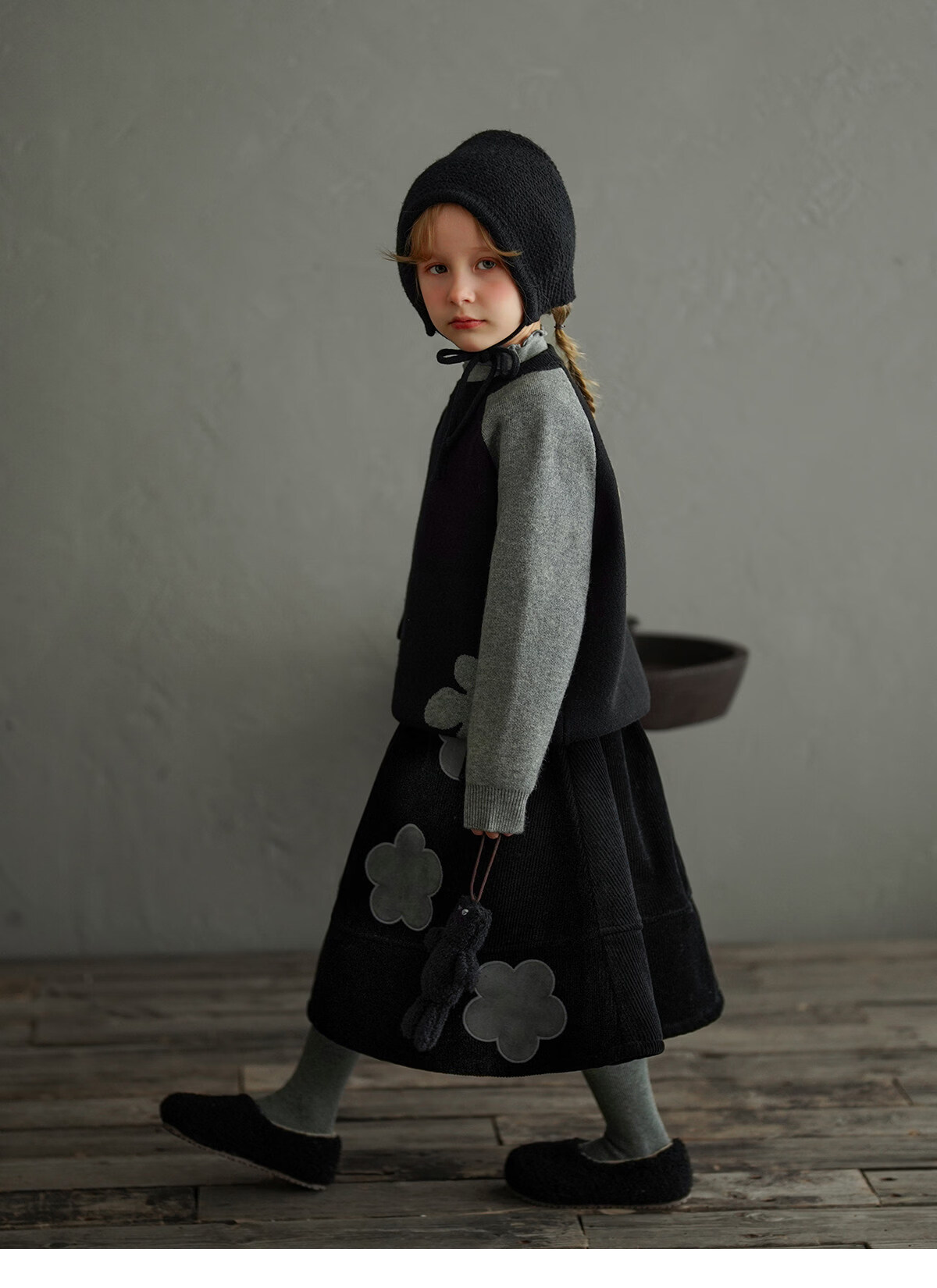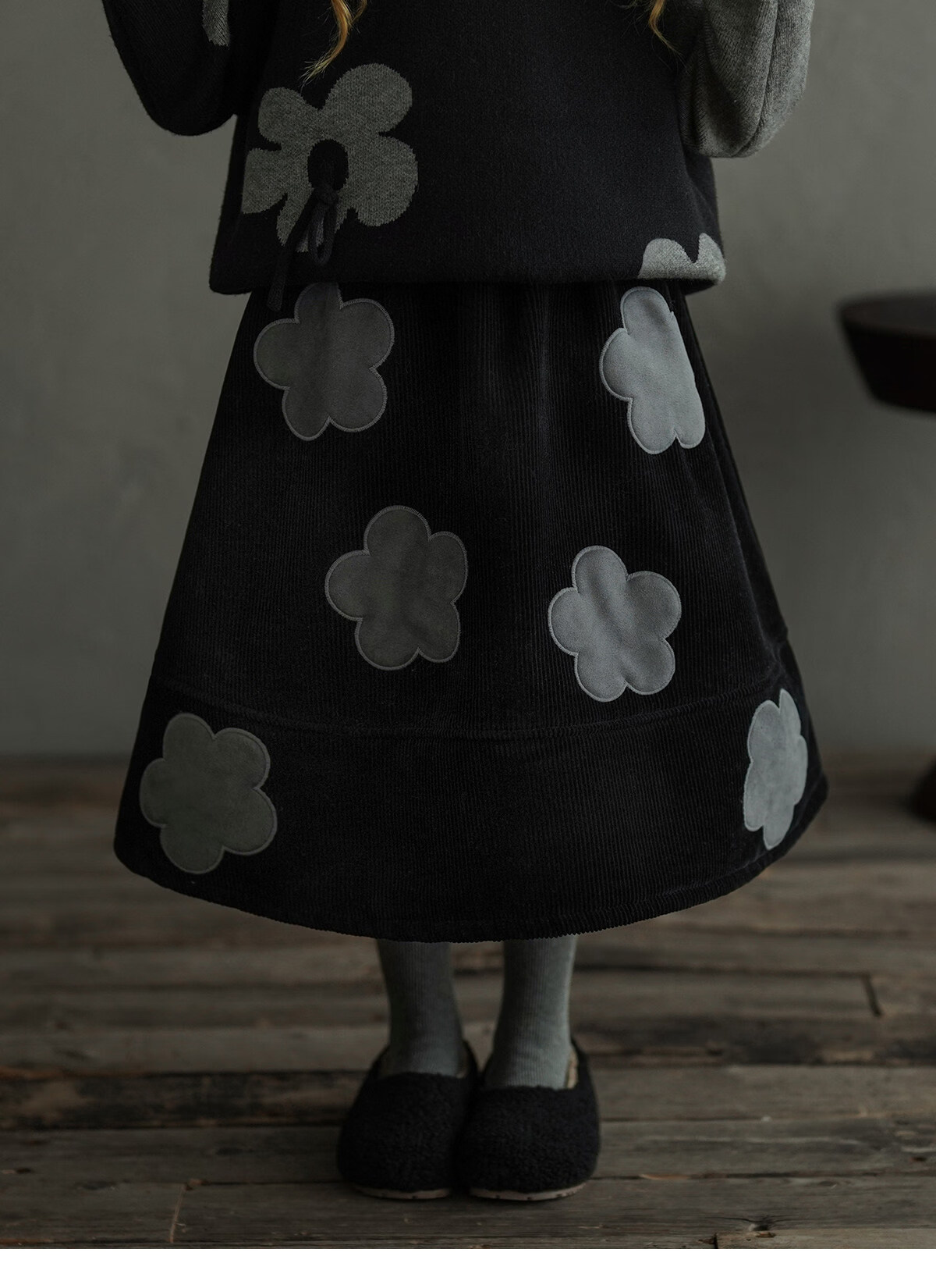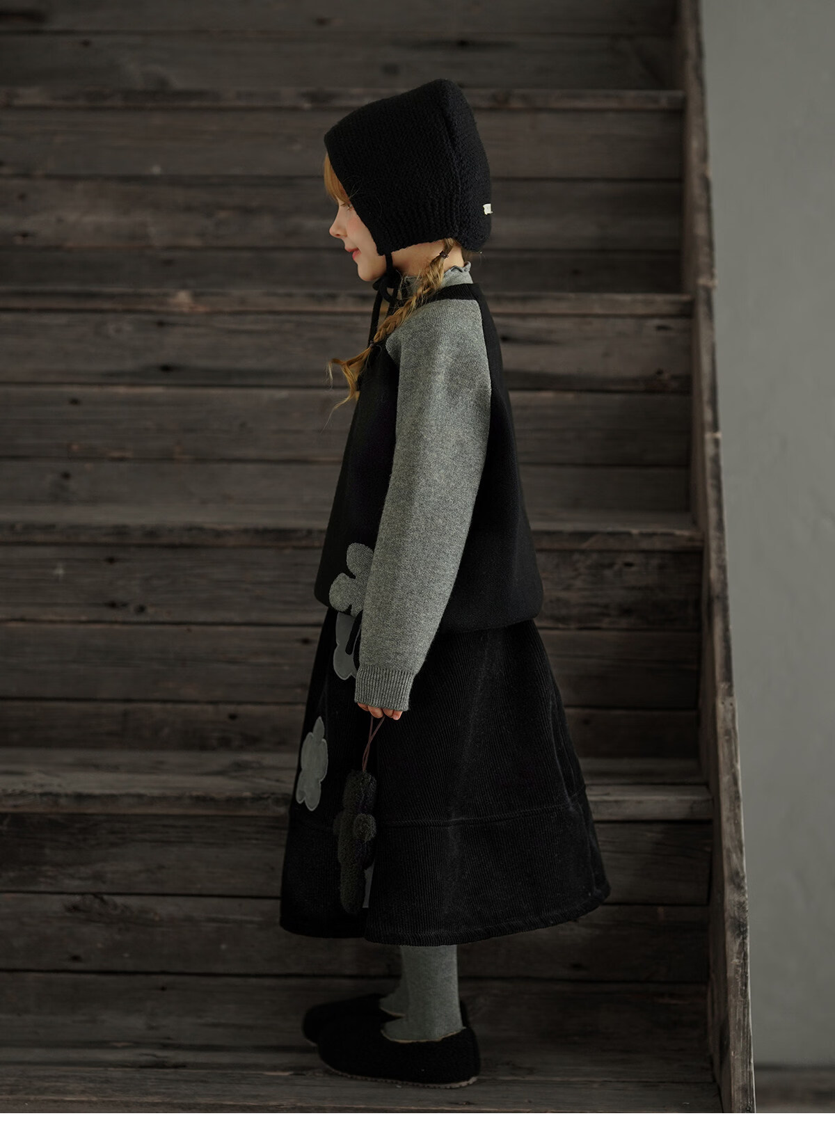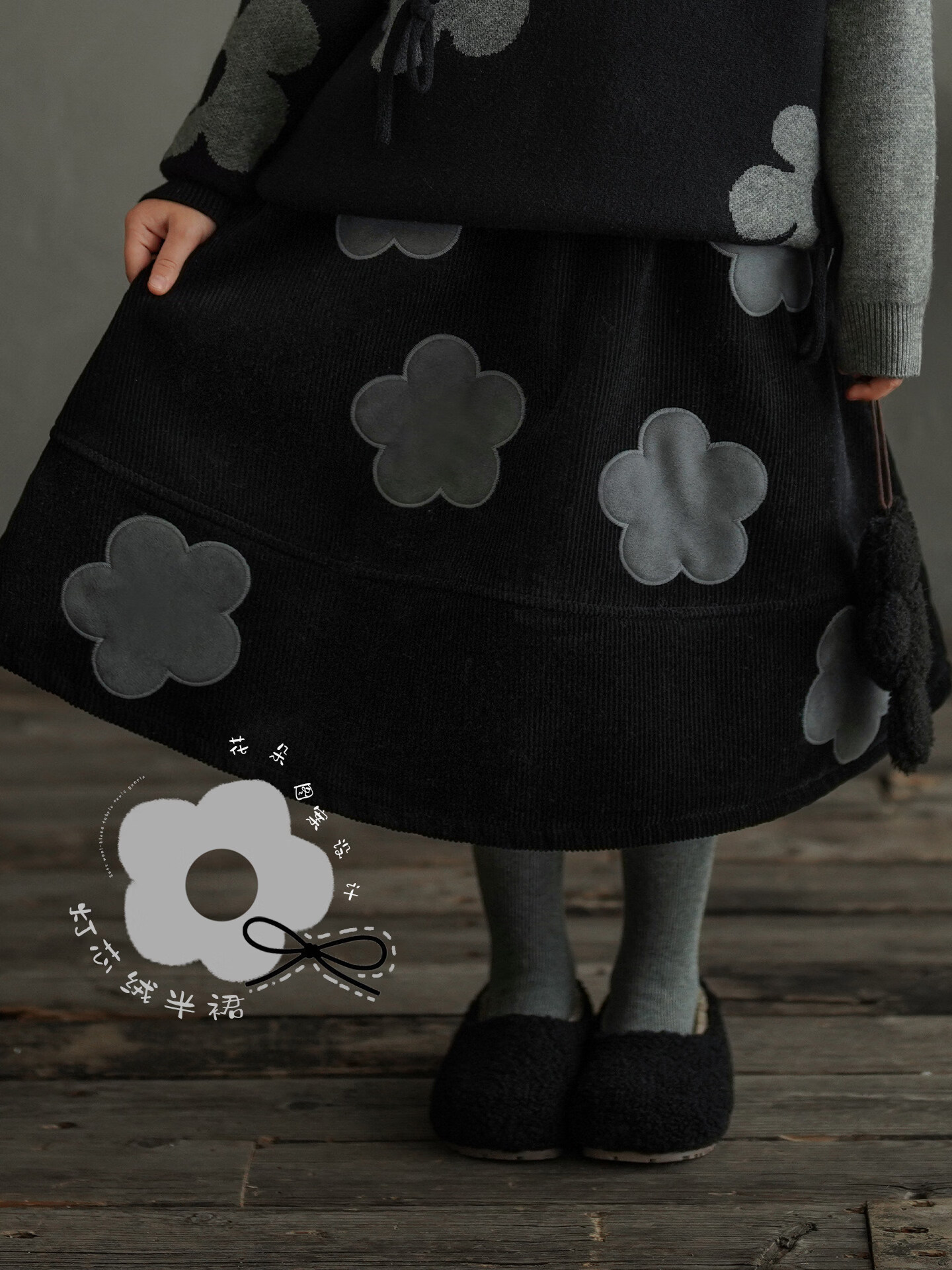 Yantaijia children's clothing girls skirt corduroy cotton skirt winter new children's warm plus velvet mid-length skirt black 80