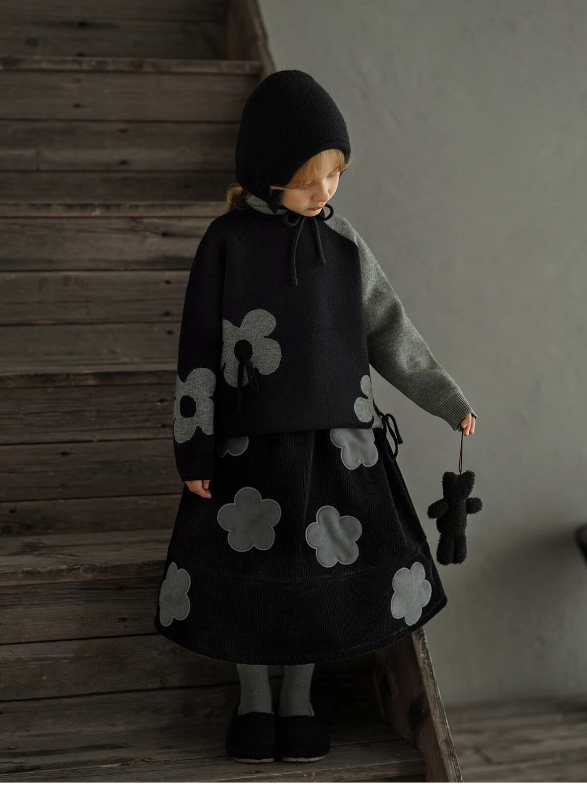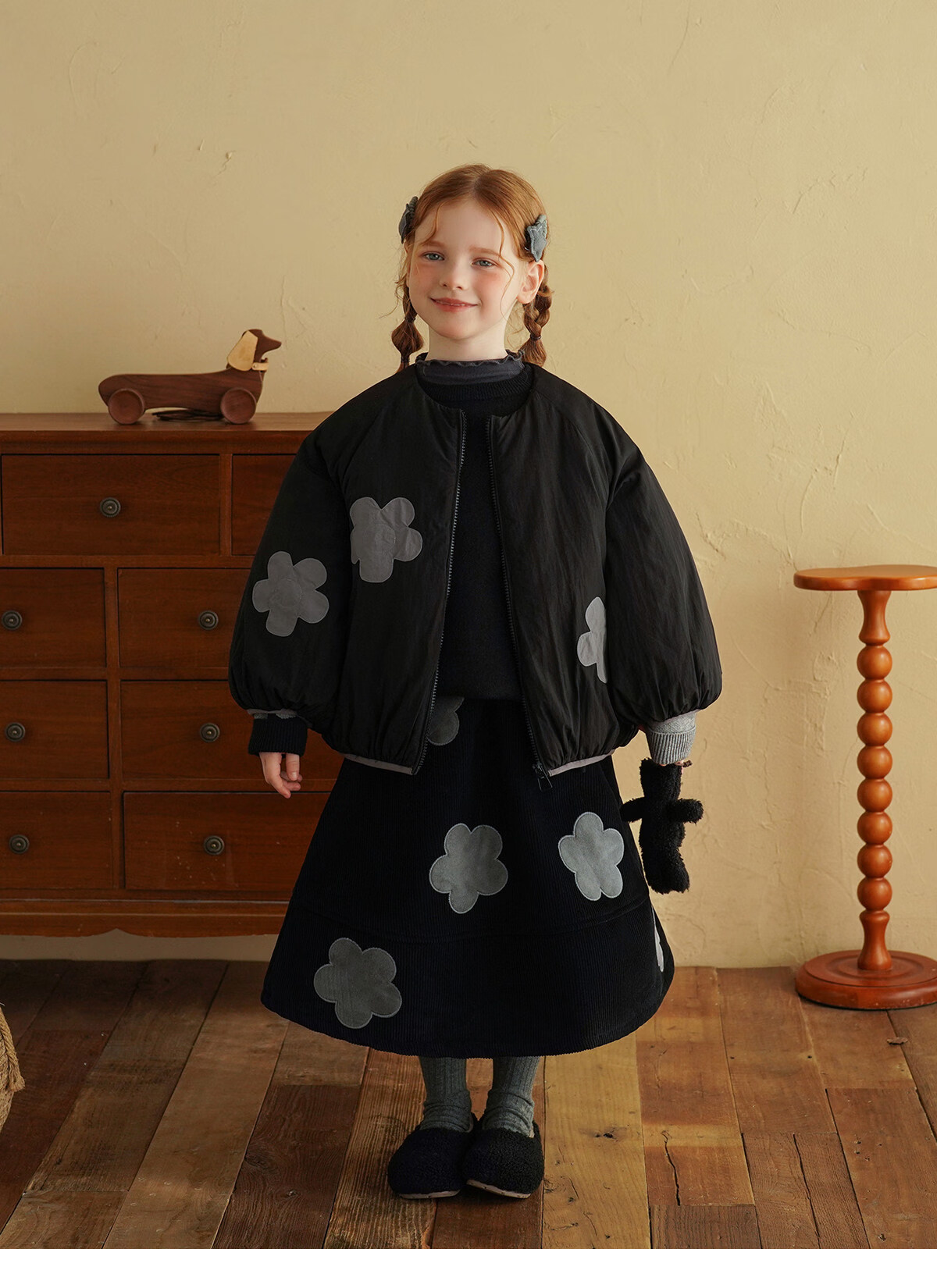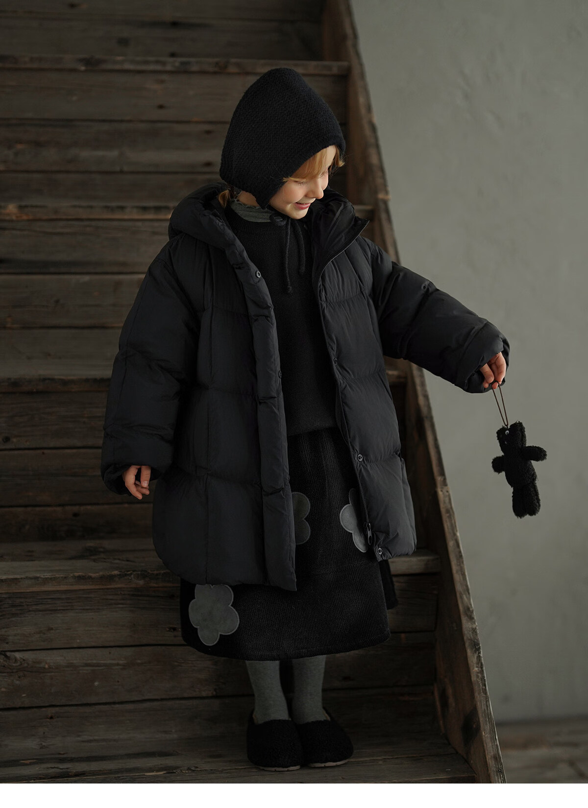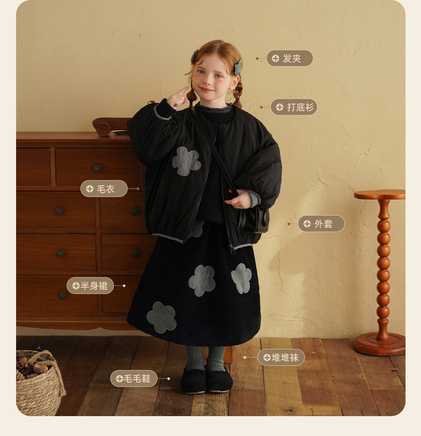 Yantaijia children's clothing girls skirt corduroy cotton skirt winter new children's warm plus velvet mid-length skirt black 80