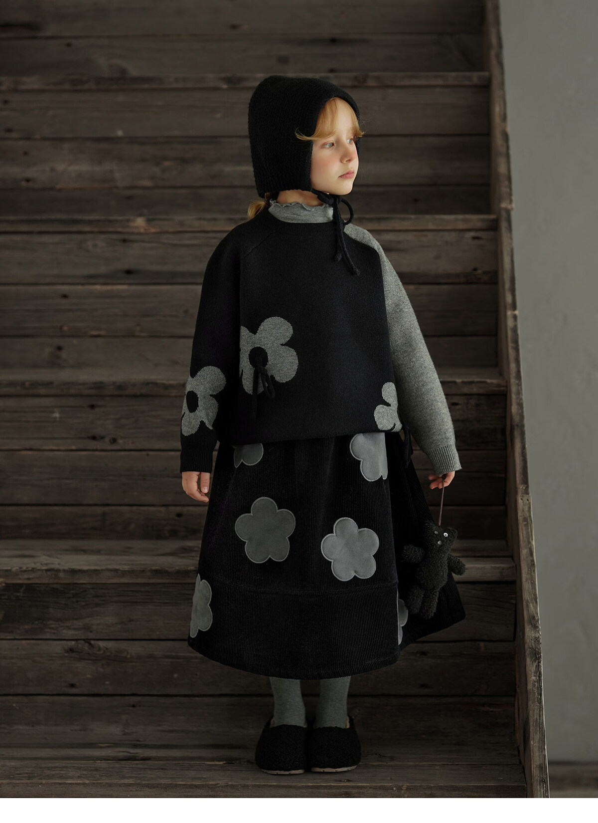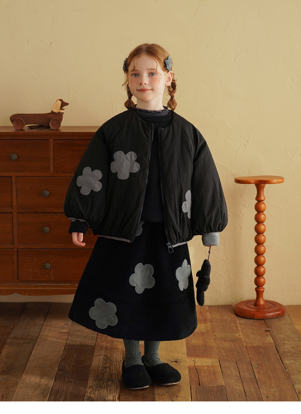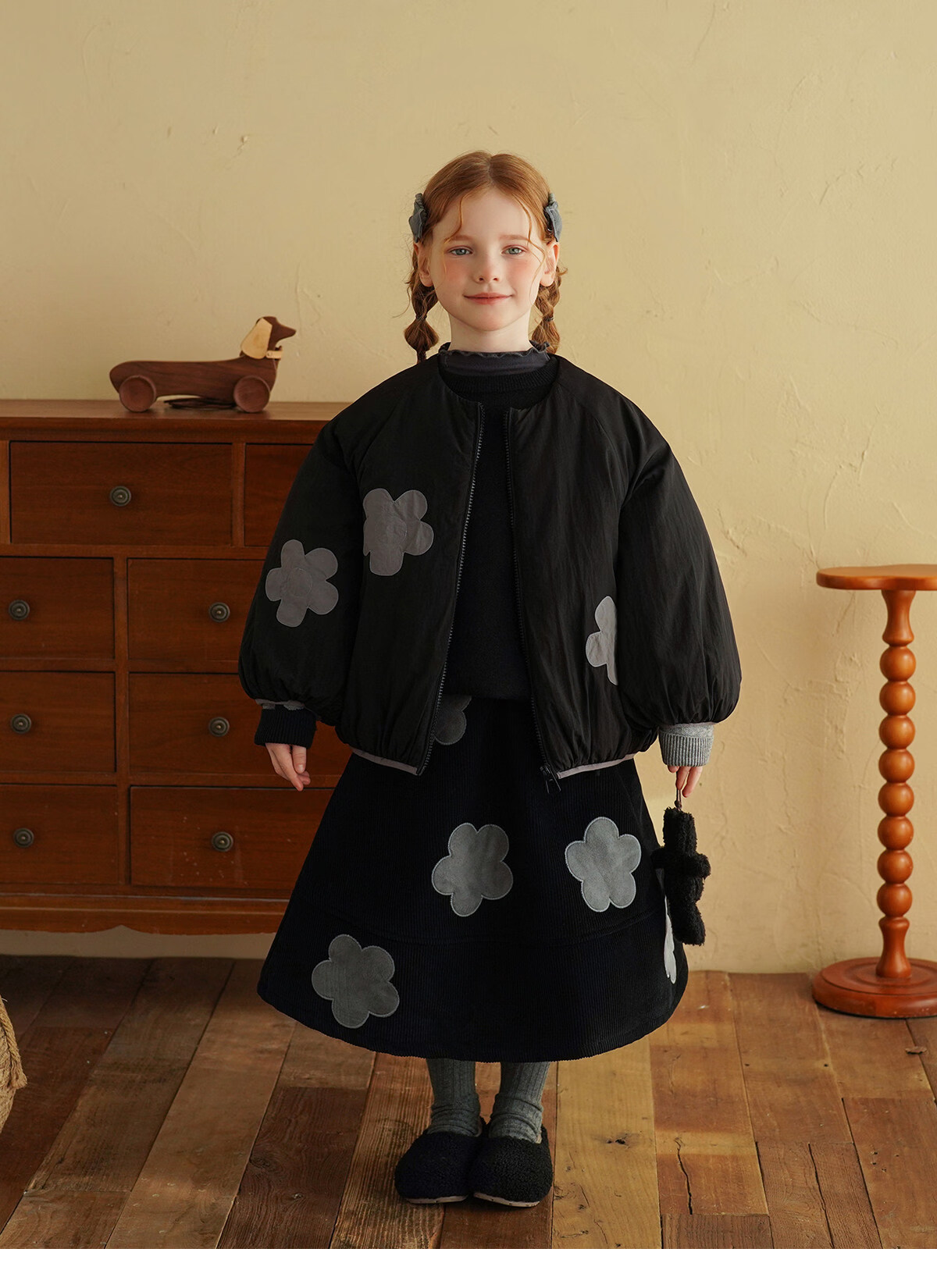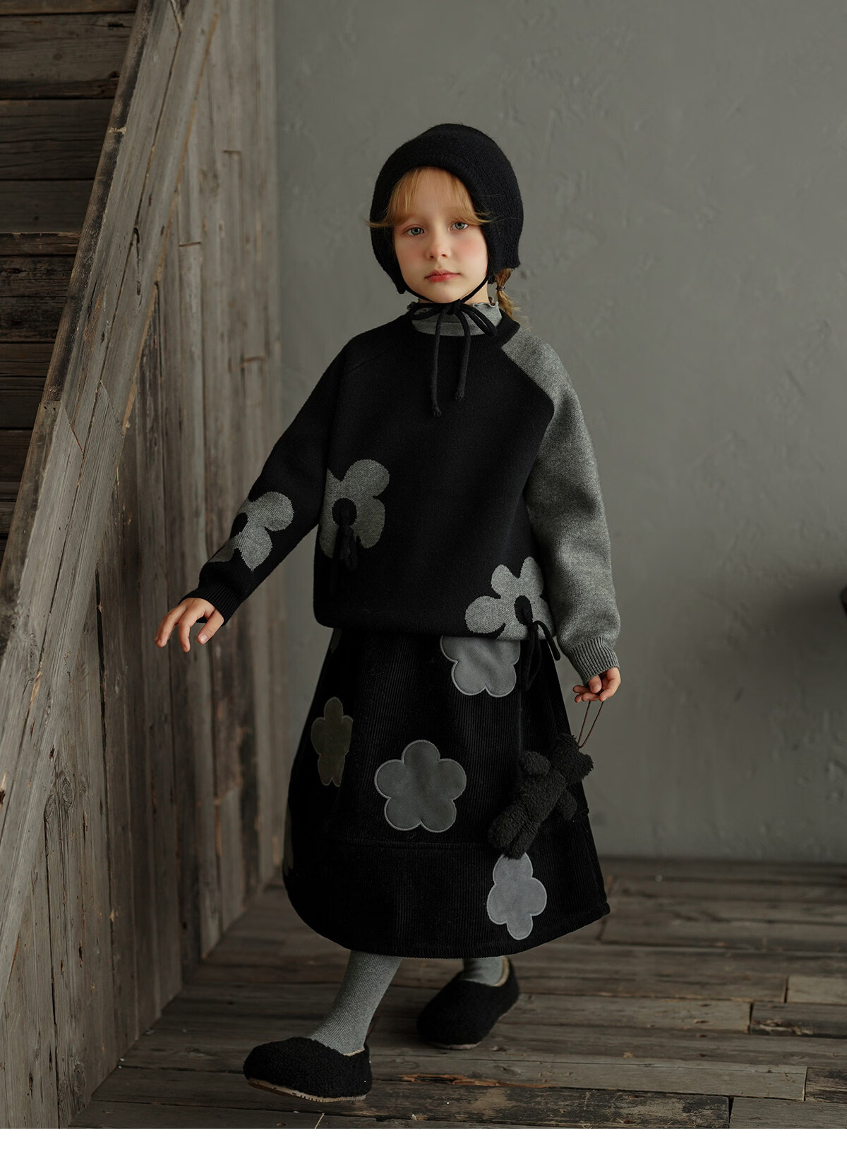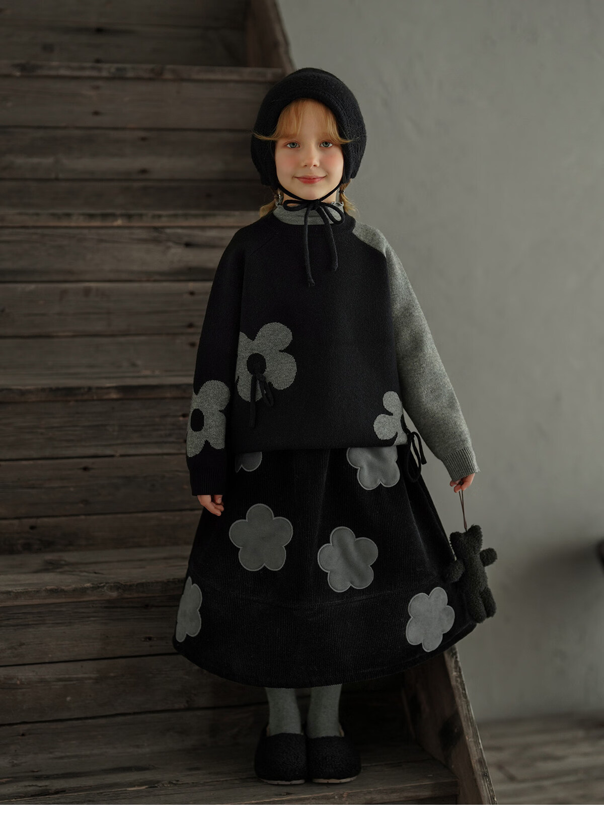 Yantaijia children's clothing girls skirt corduroy cotton skirt winter new children's warm plus velvet mid-length skirt black 80