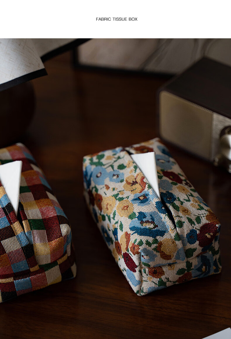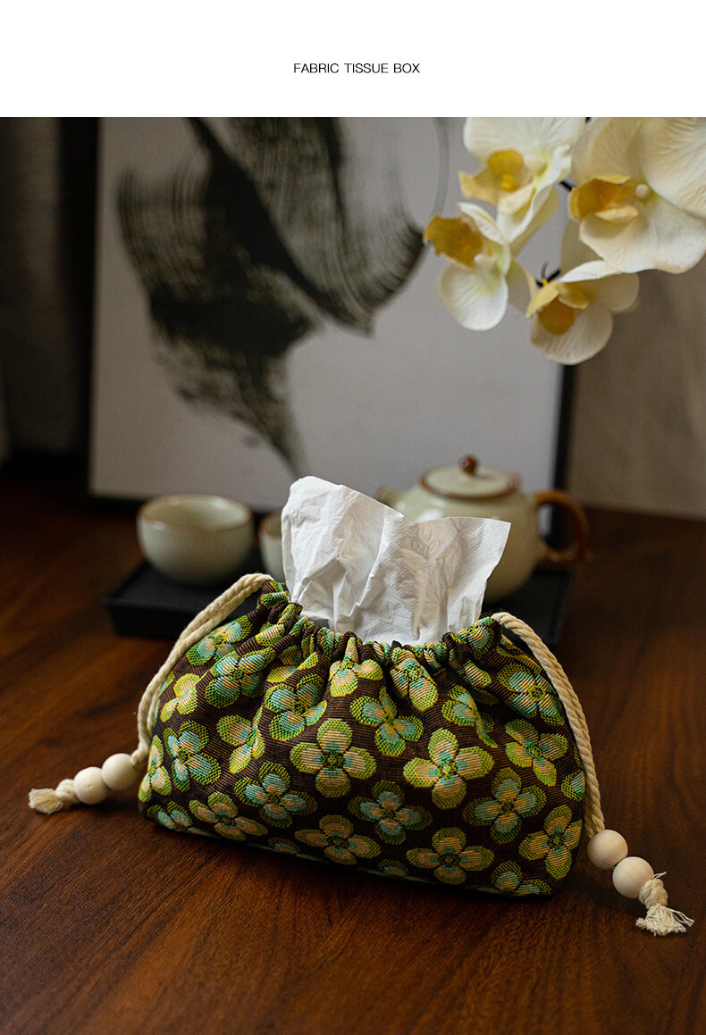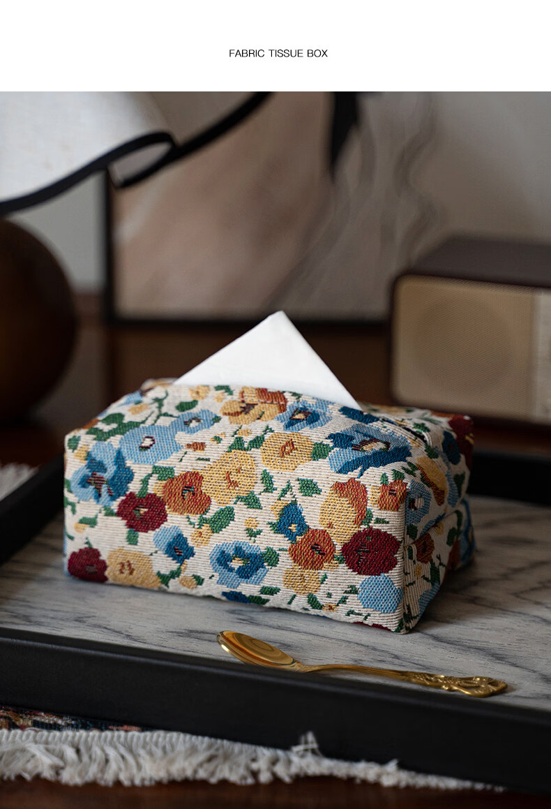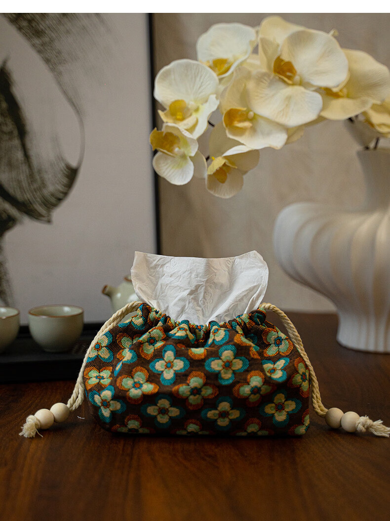 Fantasy contrasting color small flower tissue box high-end desktop tissue box light luxury home living room high-value storage box ins style Shishi Ruyi black light coffee color