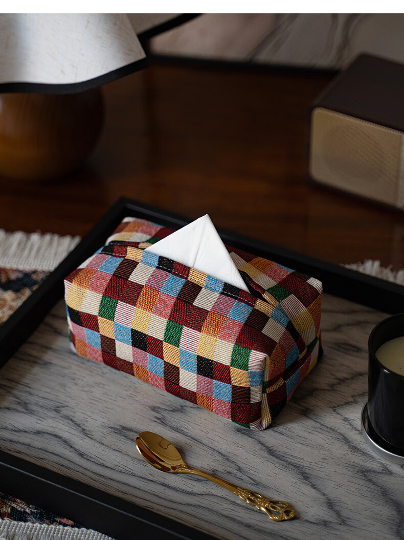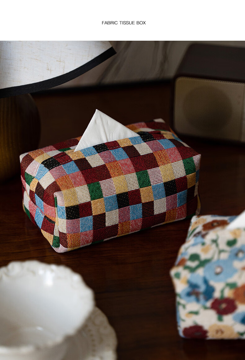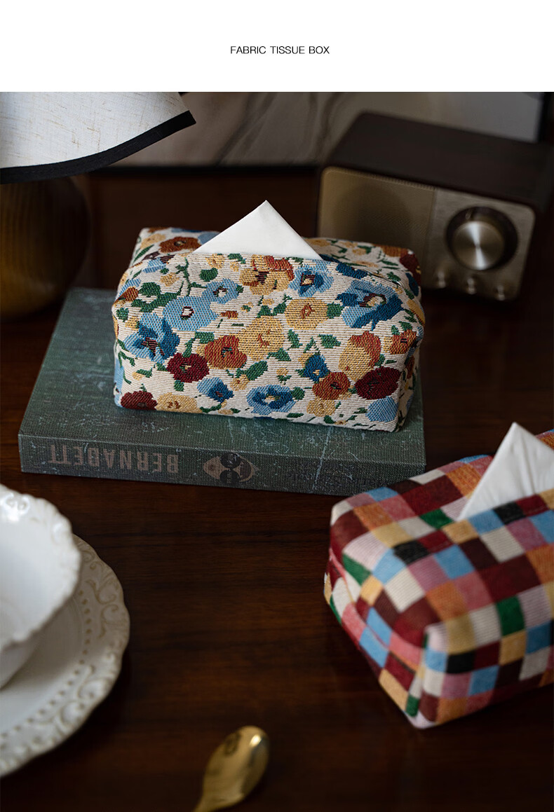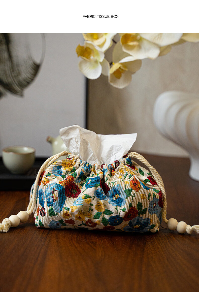 Fantasy contrasting color small flower tissue box high-end desktop tissue box light luxury home living room high-value storage box ins style Shishi Ruyi black light coffee color