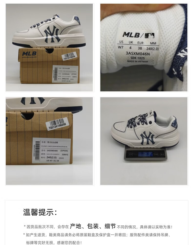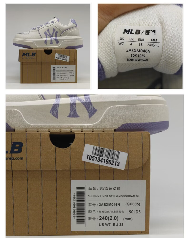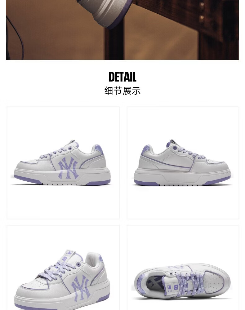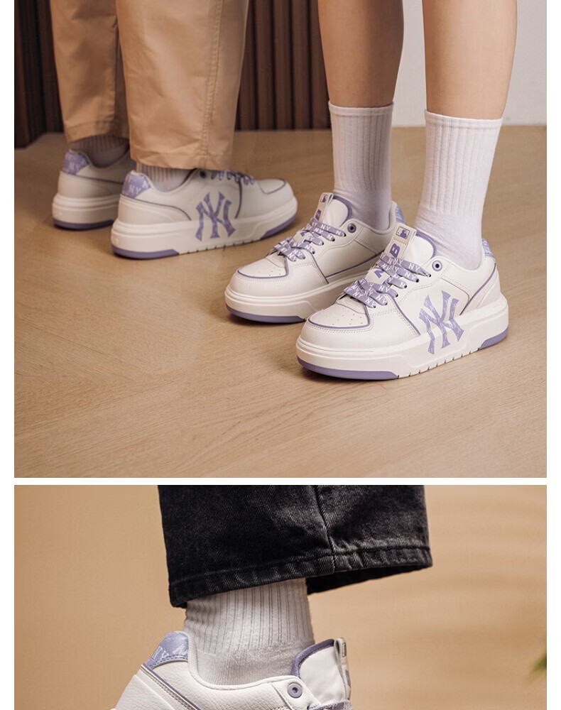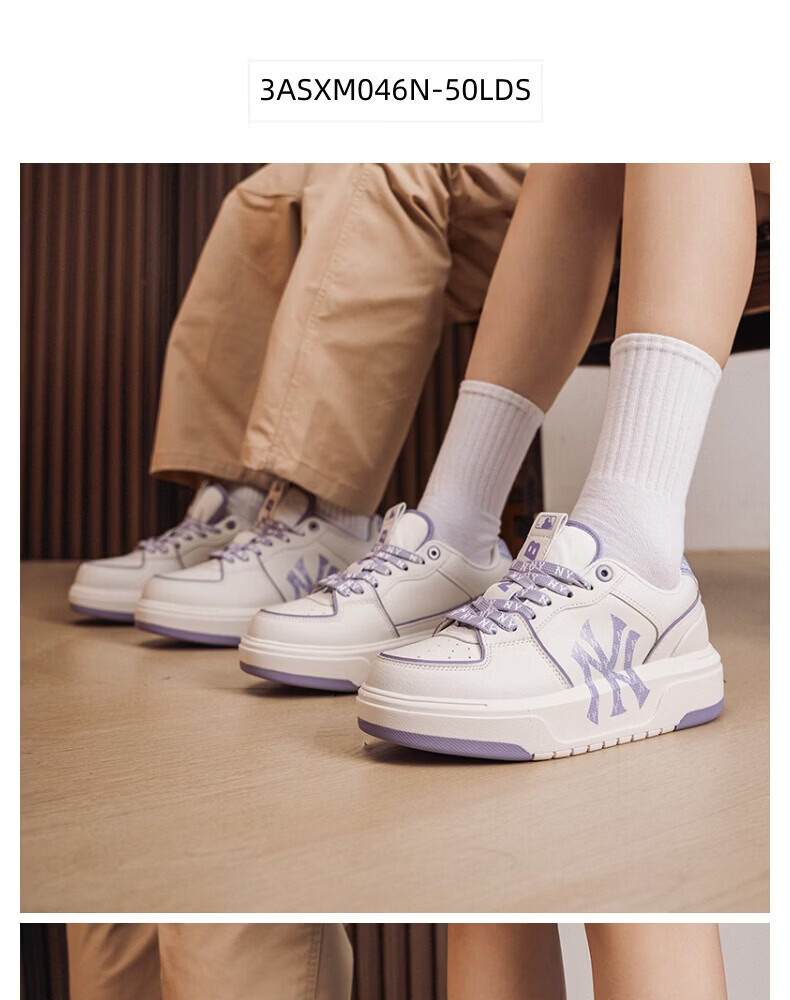 MLB official sneakers for men, couple sneakers, women's shoes, thick-soled casual shoes, heightening senior shoes 3ASXM046N New York Yankees/standard lavender 36.5 (230mm)
