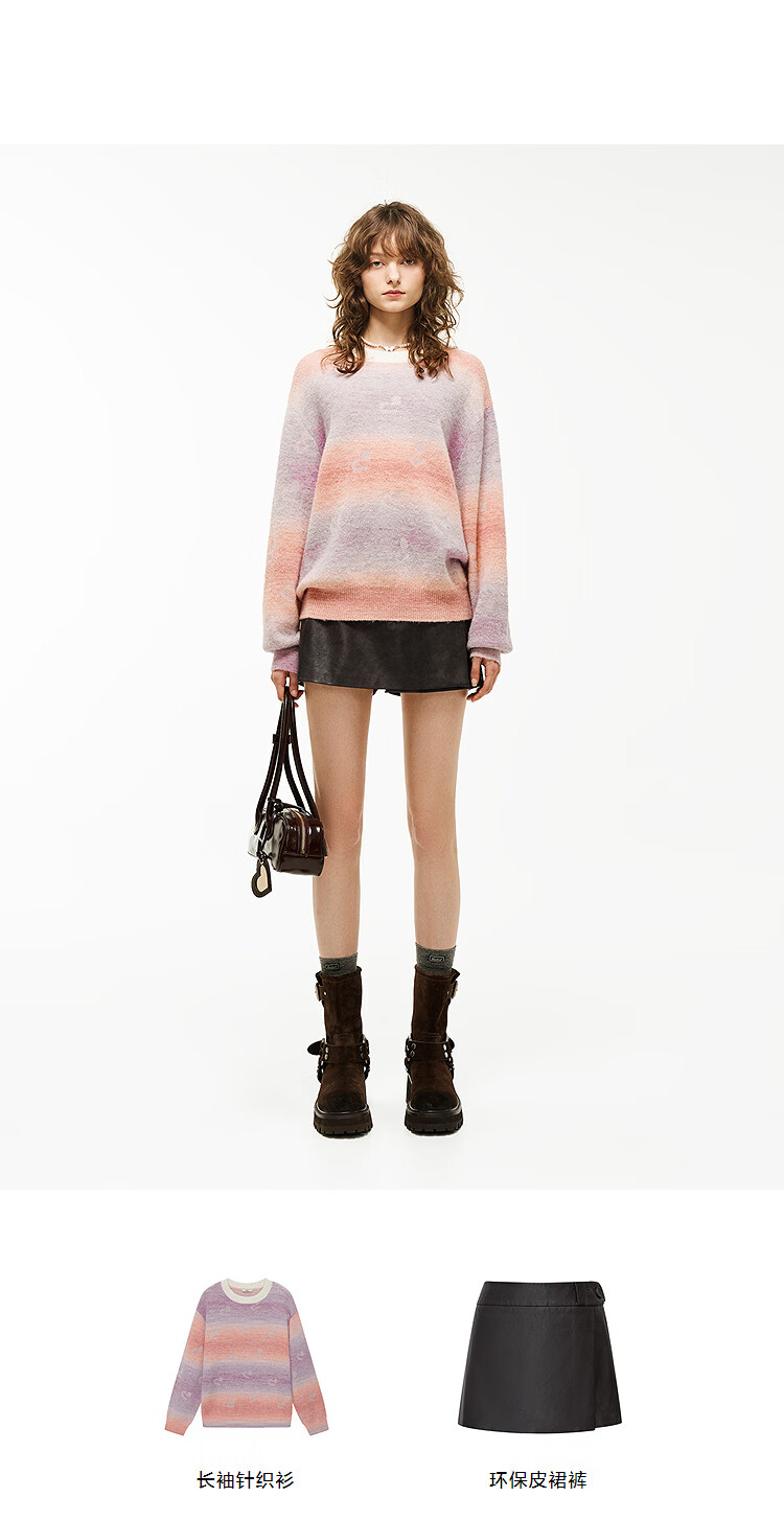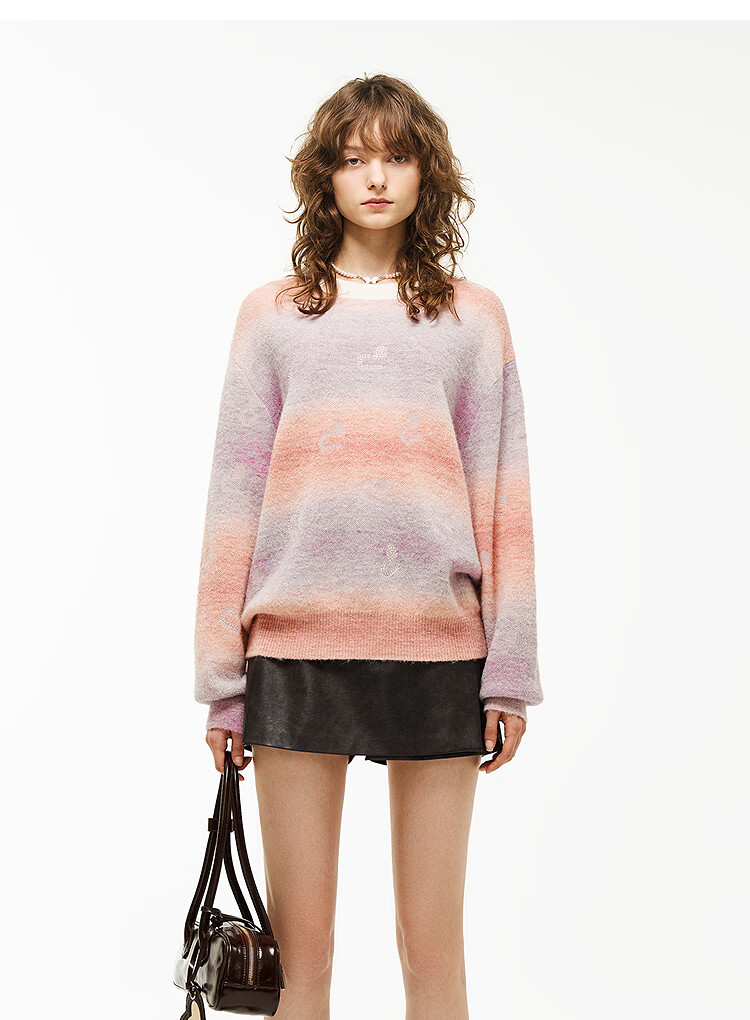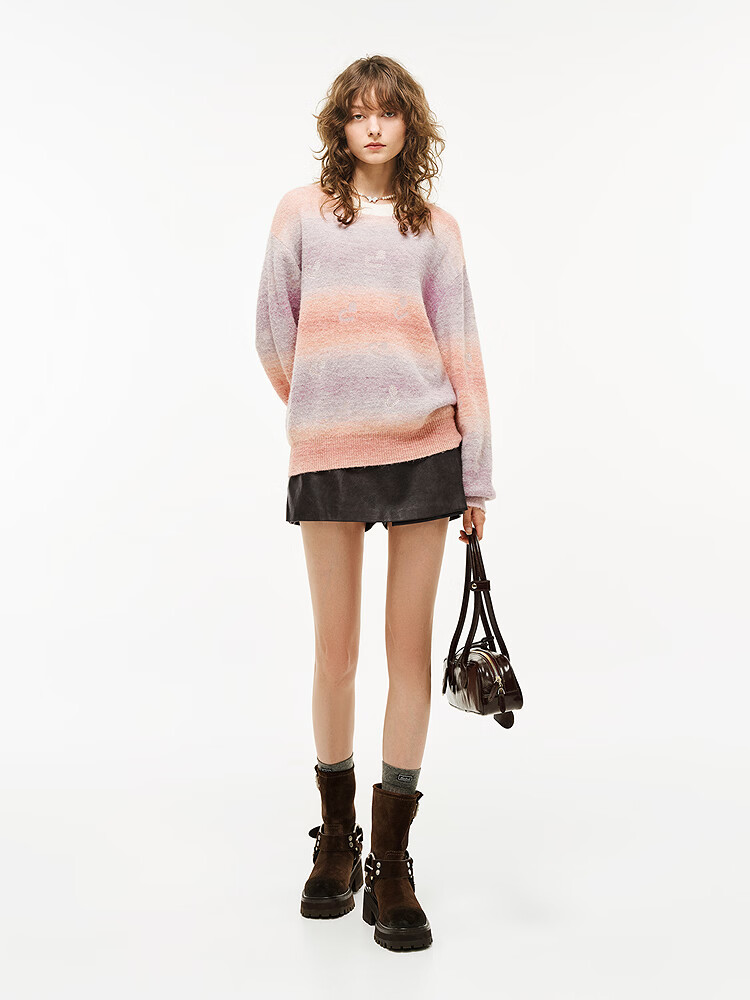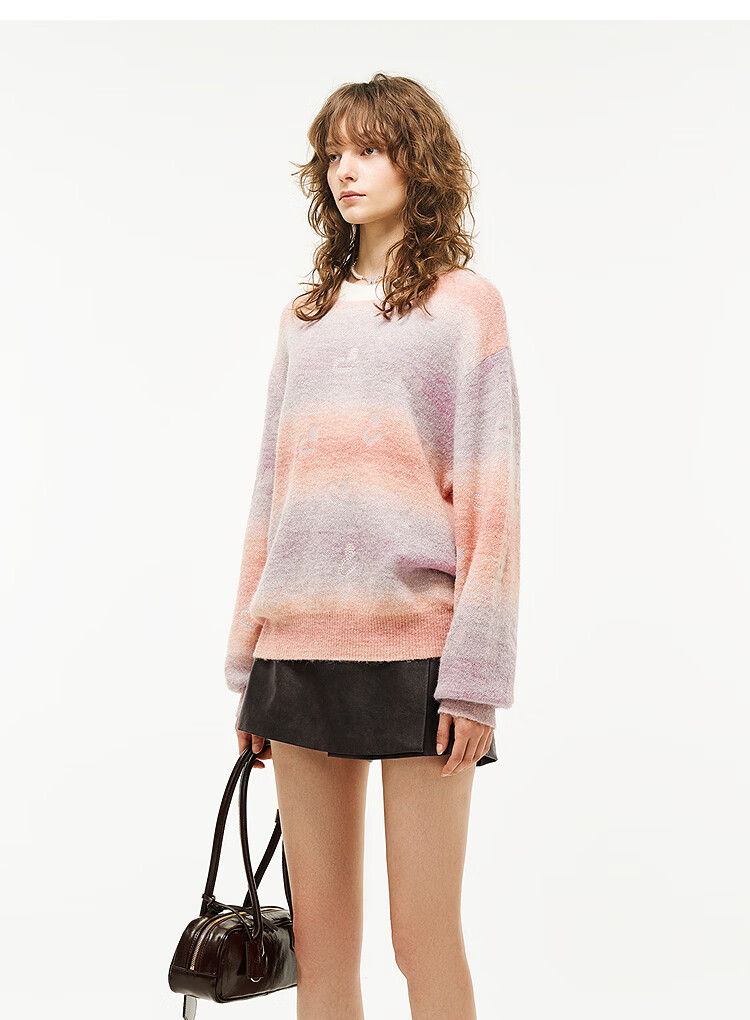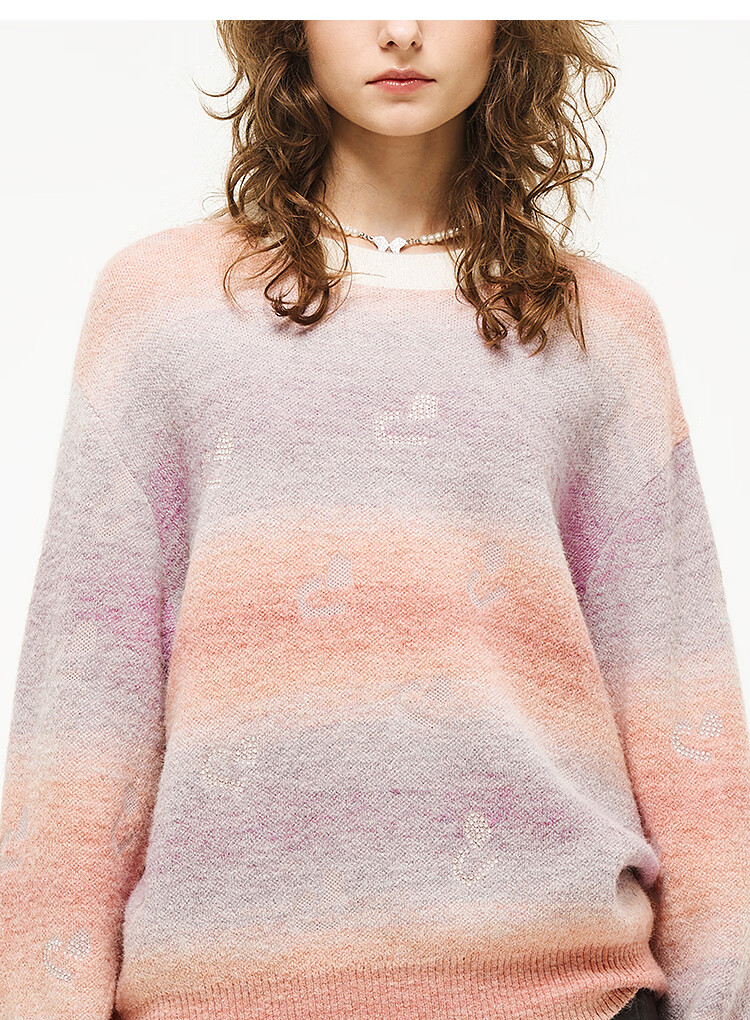 DZZIT long-sleeved sweater 2026 spring new style dopamine girl loose hot rhinestone top women 3K1EE1629 color M