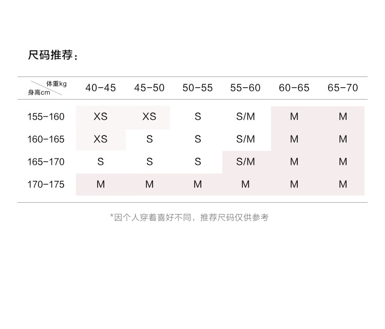 China (cm) 160-165/84-86 165-170 / 88-90 167-172 / 92-96 168-173 / 98-102 170-176 / 106-110