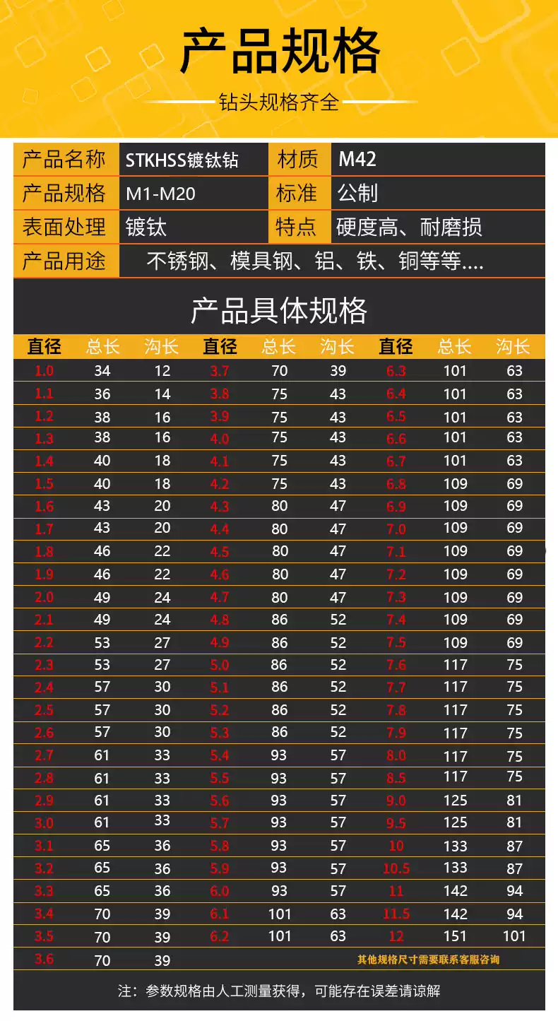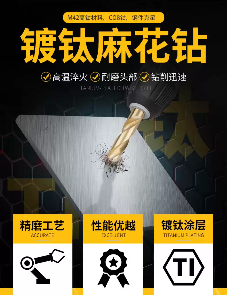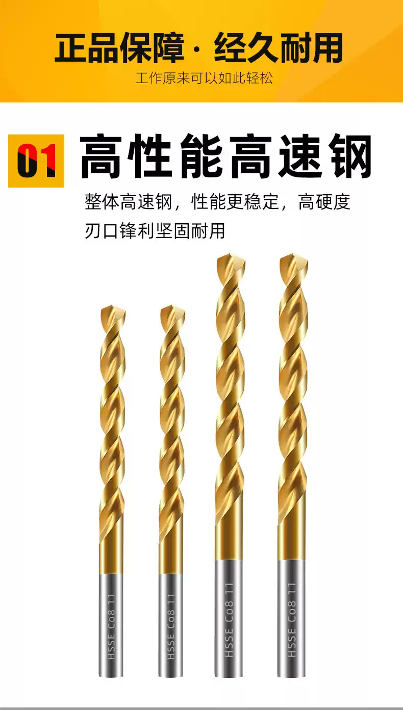 SUSHSSSTKHSS straight shank titanium-plated twist drill bit boxed M42 high cobalt stainless steel special high hardness perforated steel plate straight shank drill bit 6.7mm