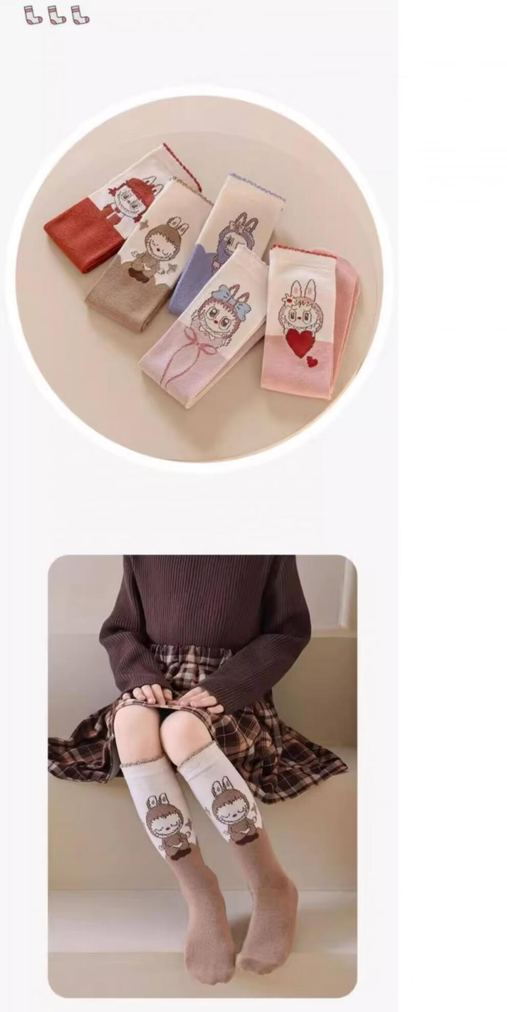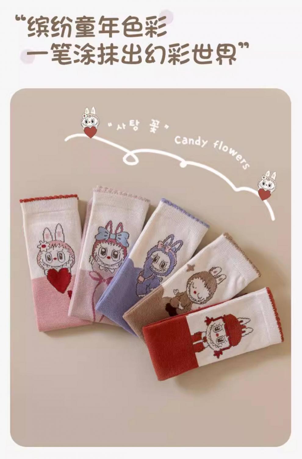 PLANDOO children's cute cartoon lab socks spring and autumn new boys and girls calf socks Korean style autumn boneless pile socks 2 coffee + 2 red + 1 medium pink 5 pairs one size fits all (recommended for 2-15 years old)