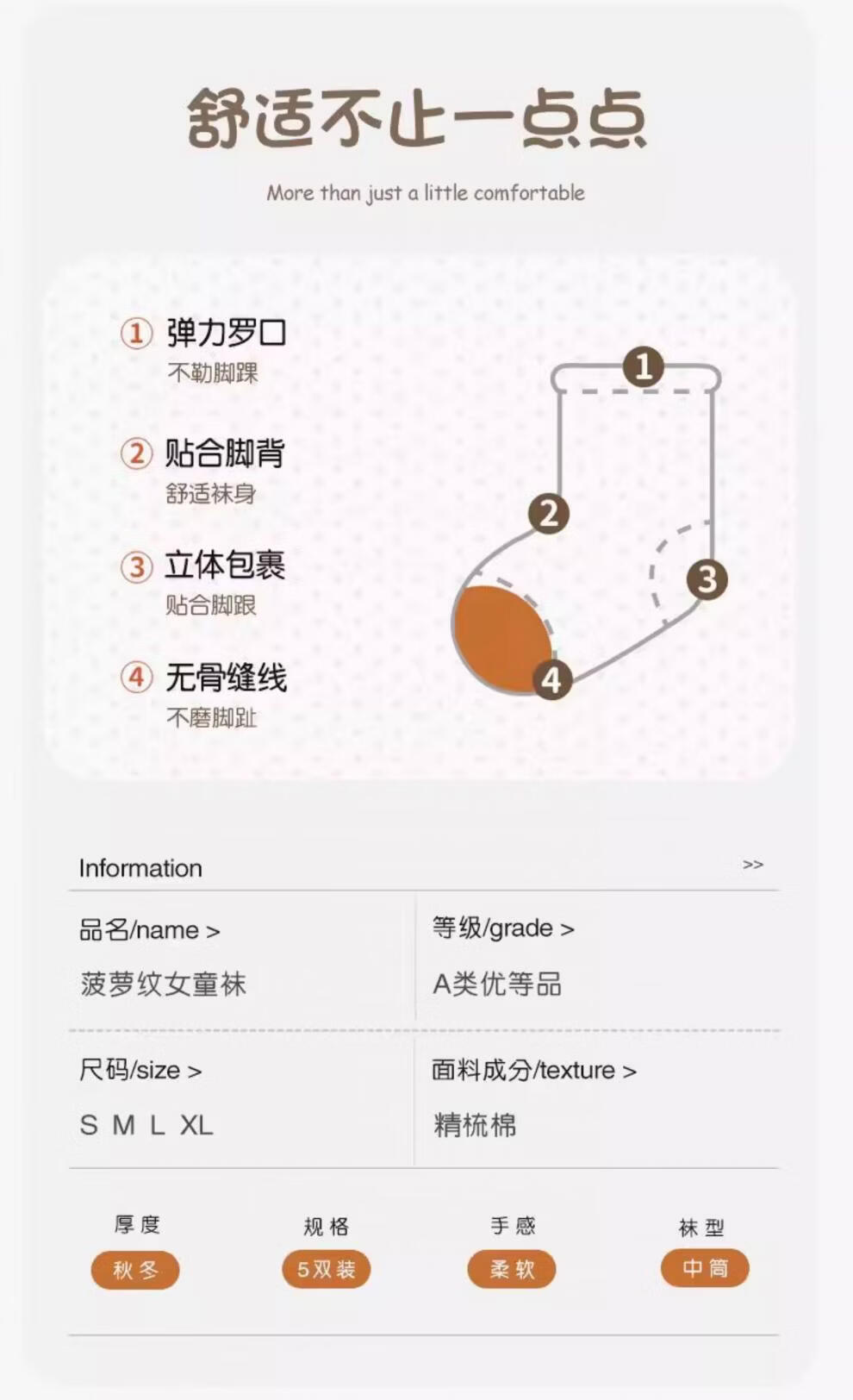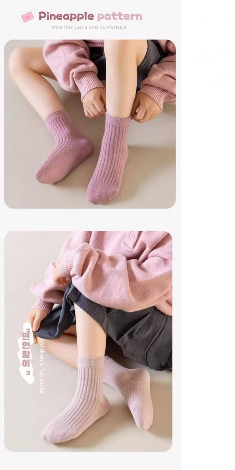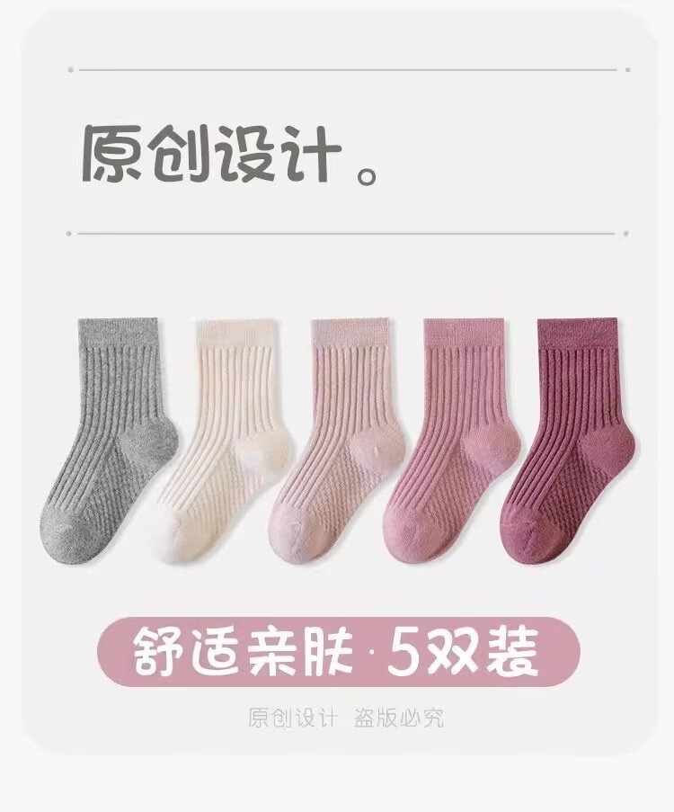 Palanduo children's mid-calf socks, spring and autumn cotton women's ins, Korean style, simple and versatile, comfortable and breathable pineapple pattern, pineapple pattern for girls, 5 styles, 1 pair each, 5 pairs S (1-3 years old) recommended shoe size 18-23