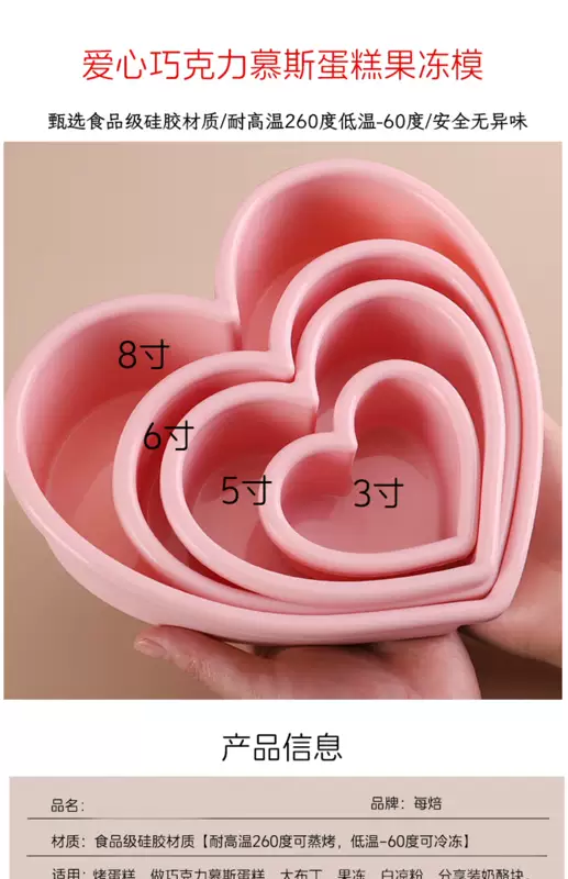 Yusenyi Love Inch 3 Inch 6 Inch Love Mousse Chocolate Fruit Cake Jelly Food Grade Mold Large Size 8 Silicone Mold 8 Inch Love (High Temperature Resistance 260 Degrees Can Be Steamed and Baked)