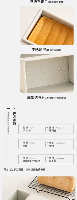 Yusenyi British Toast Grinding Tools for Household Baking Bread Mold Baking Cake 450g Box Oven Box Baking Tools (450g) White Toast Box with Cover-10 Inch Serrated Knife
