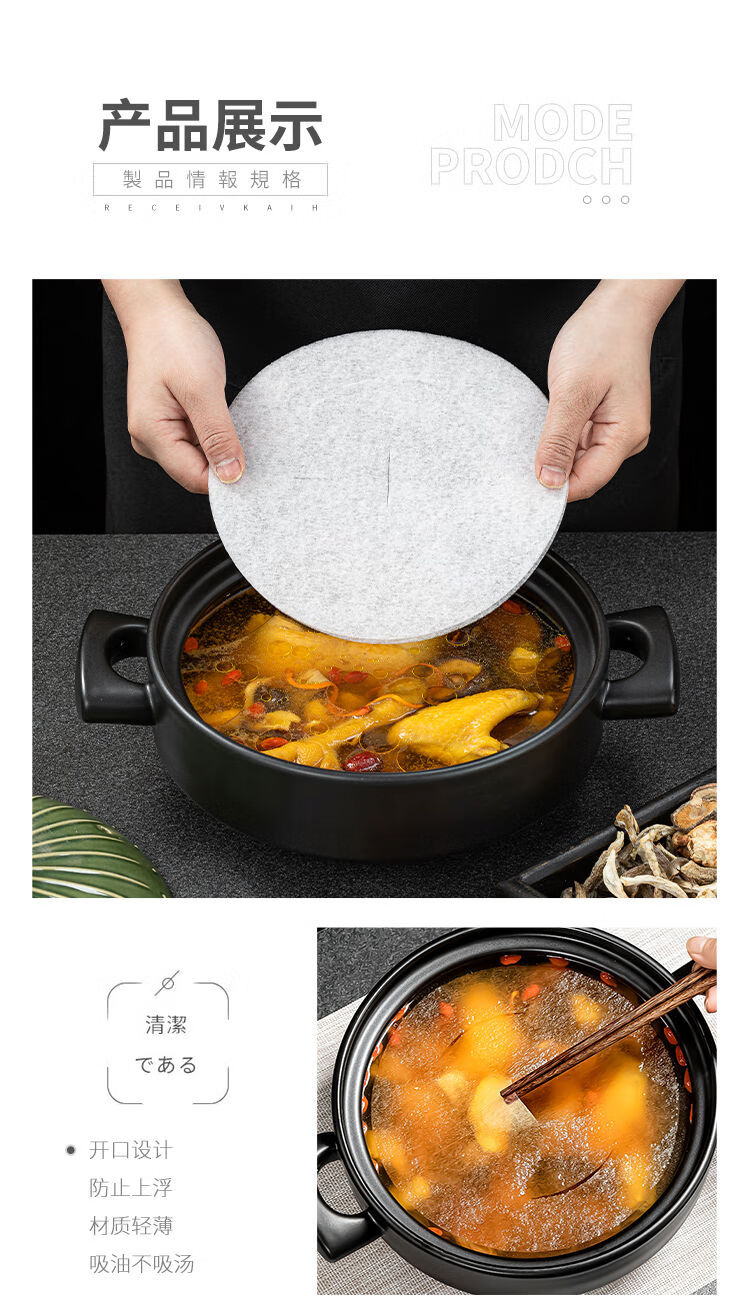 Yong Huan Oil-Absorbing Paper Food Special Kitchen Cooking, Stewing and Drinking Soup Used to De-Fry and Edible Oil-Filtering Paper Film. Total of 240 pieces of soup-making oil-absorbing paper save 32 yuan