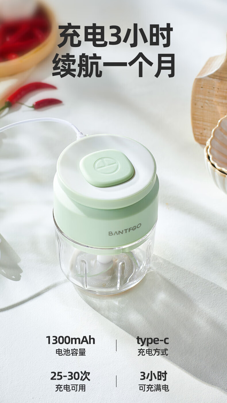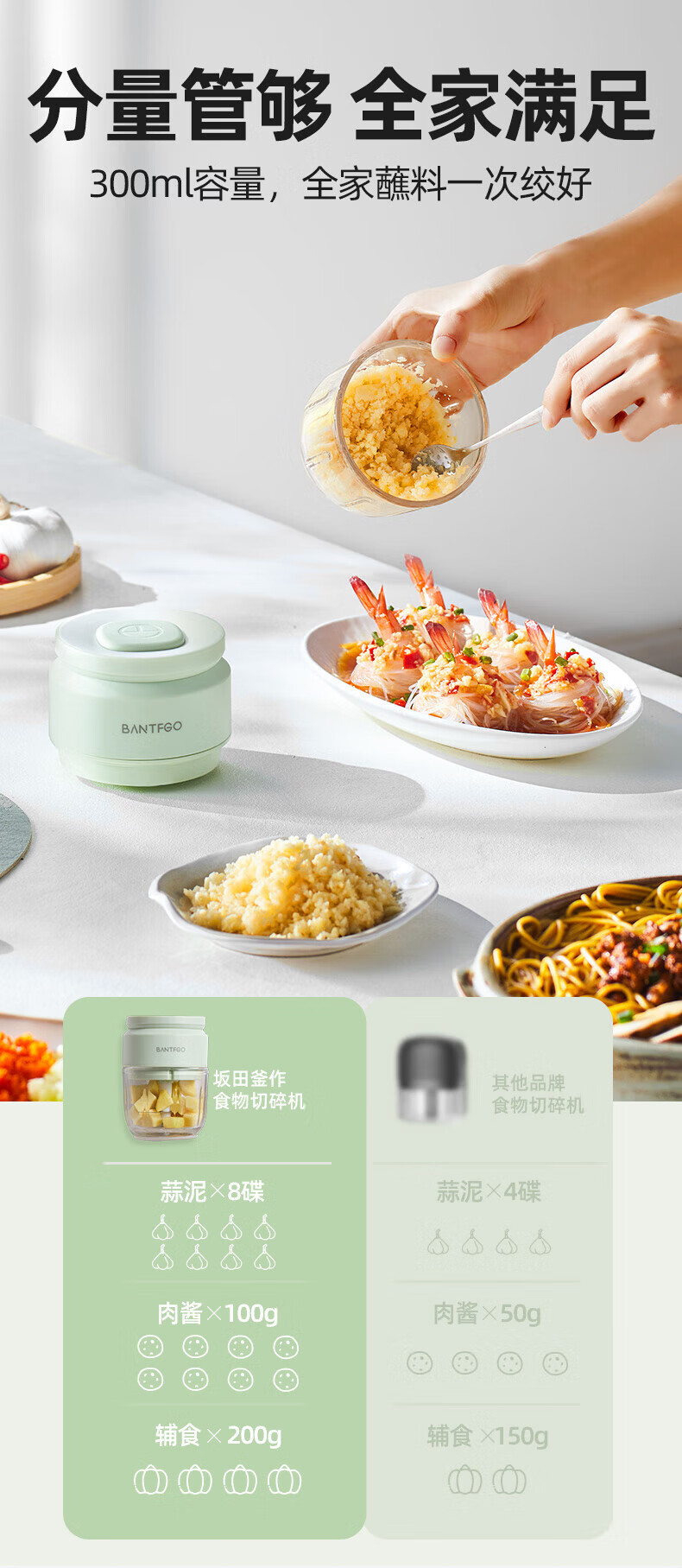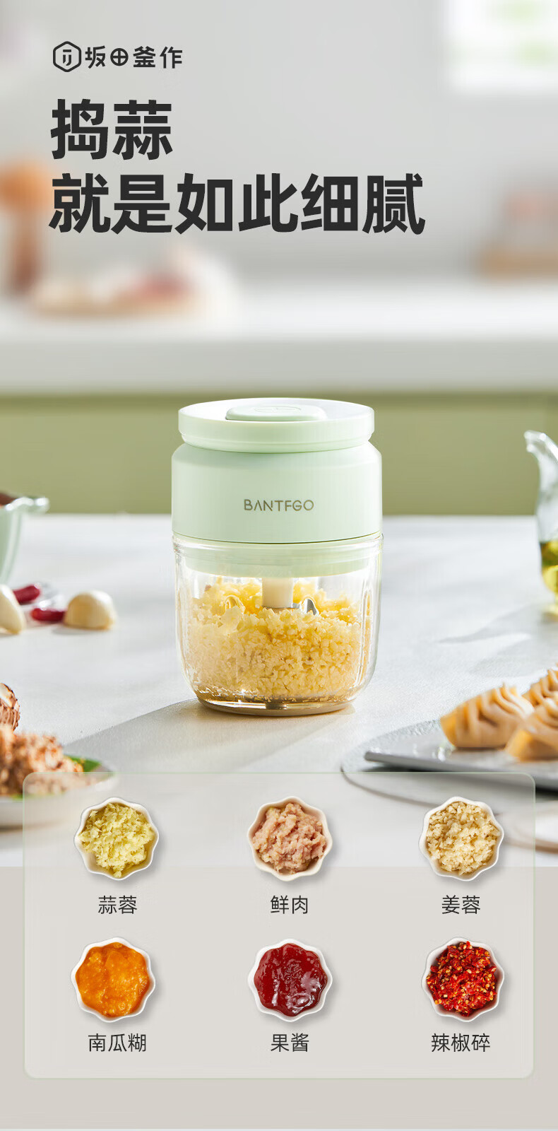 Sakata Kamasaku wireless electric garlic pounder household small garlic mince meat chopper cooking machine Lake Water Green