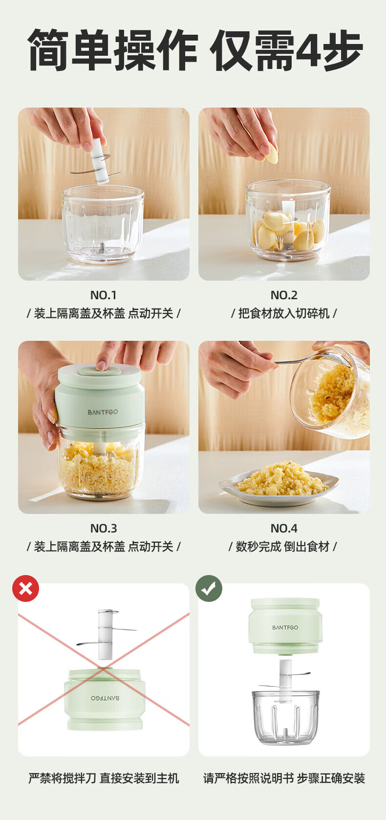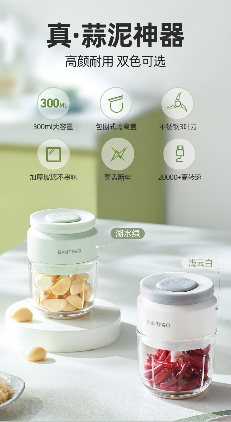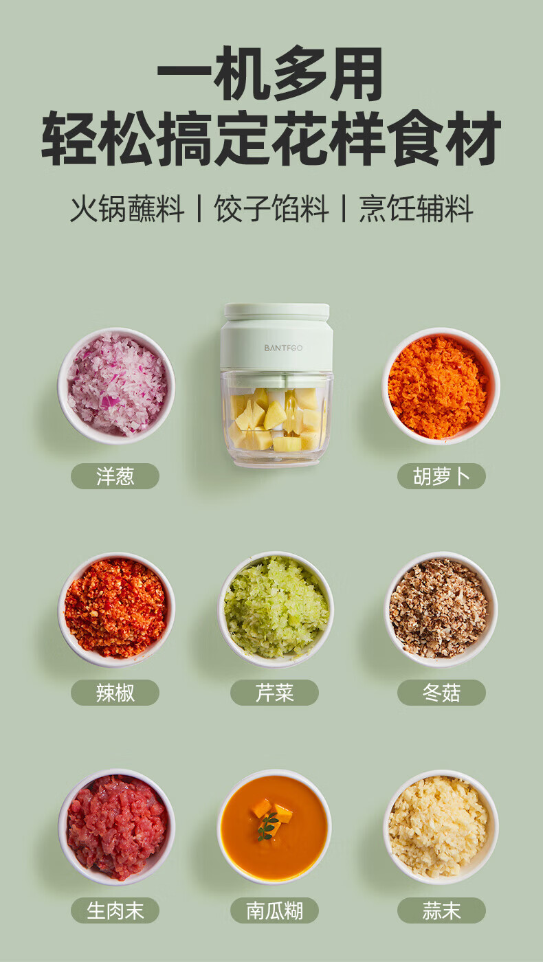 Sakata Kamasaku wireless electric garlic pounder household small garlic mince meat chopper cooking machine Lake Water Green