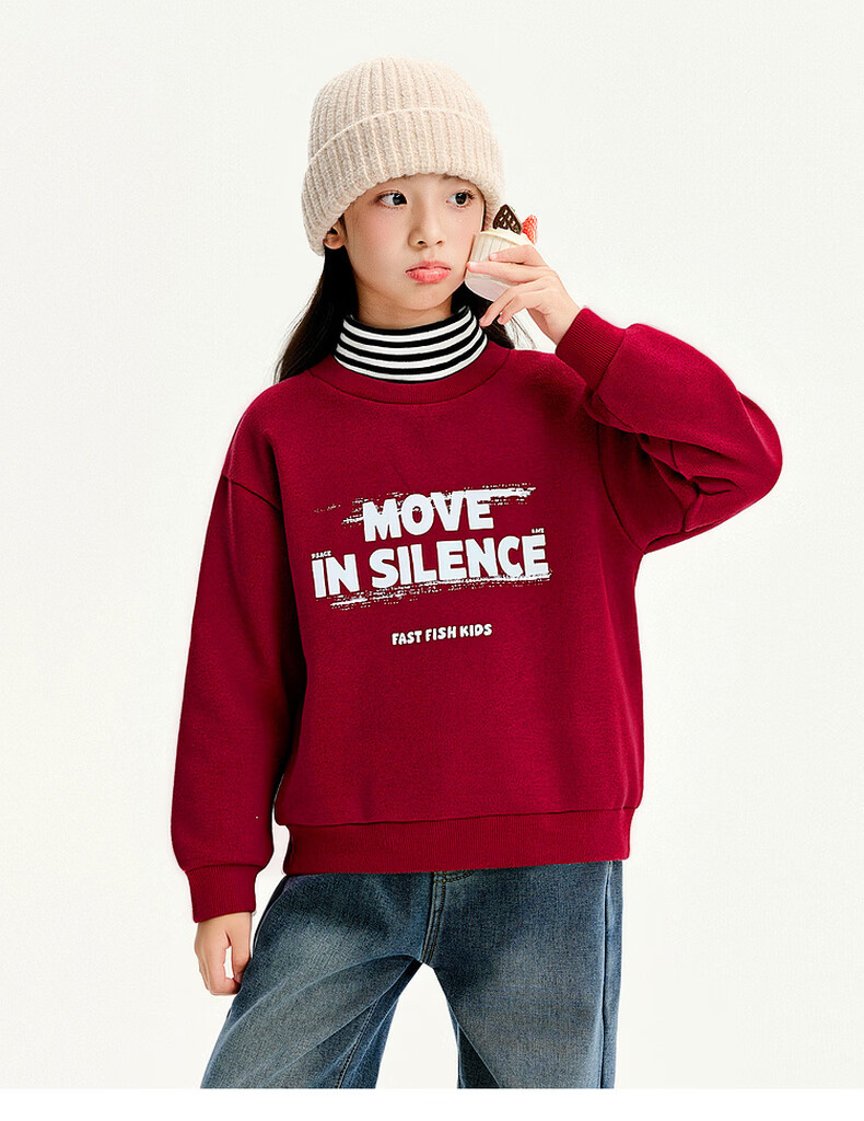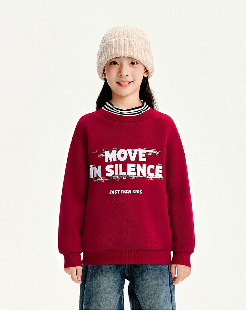 Kuaiyu children's sweatshirt 2026 new winter wear plaid plus velvet warm medium and large children half turtleneck thickened children's top burgundy 150