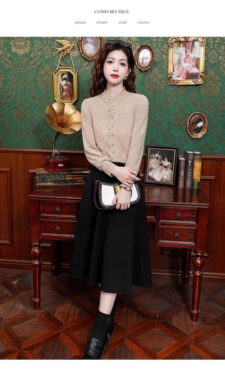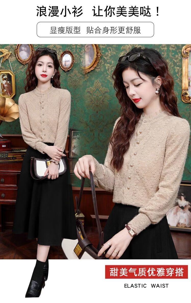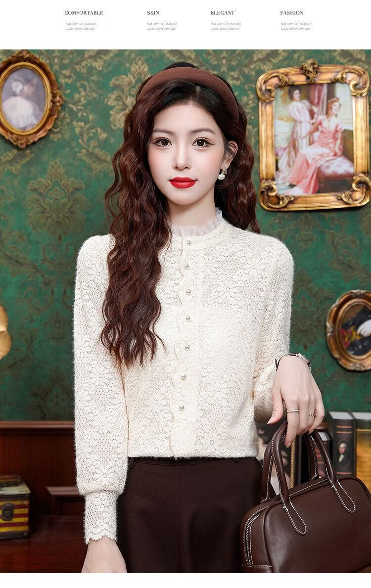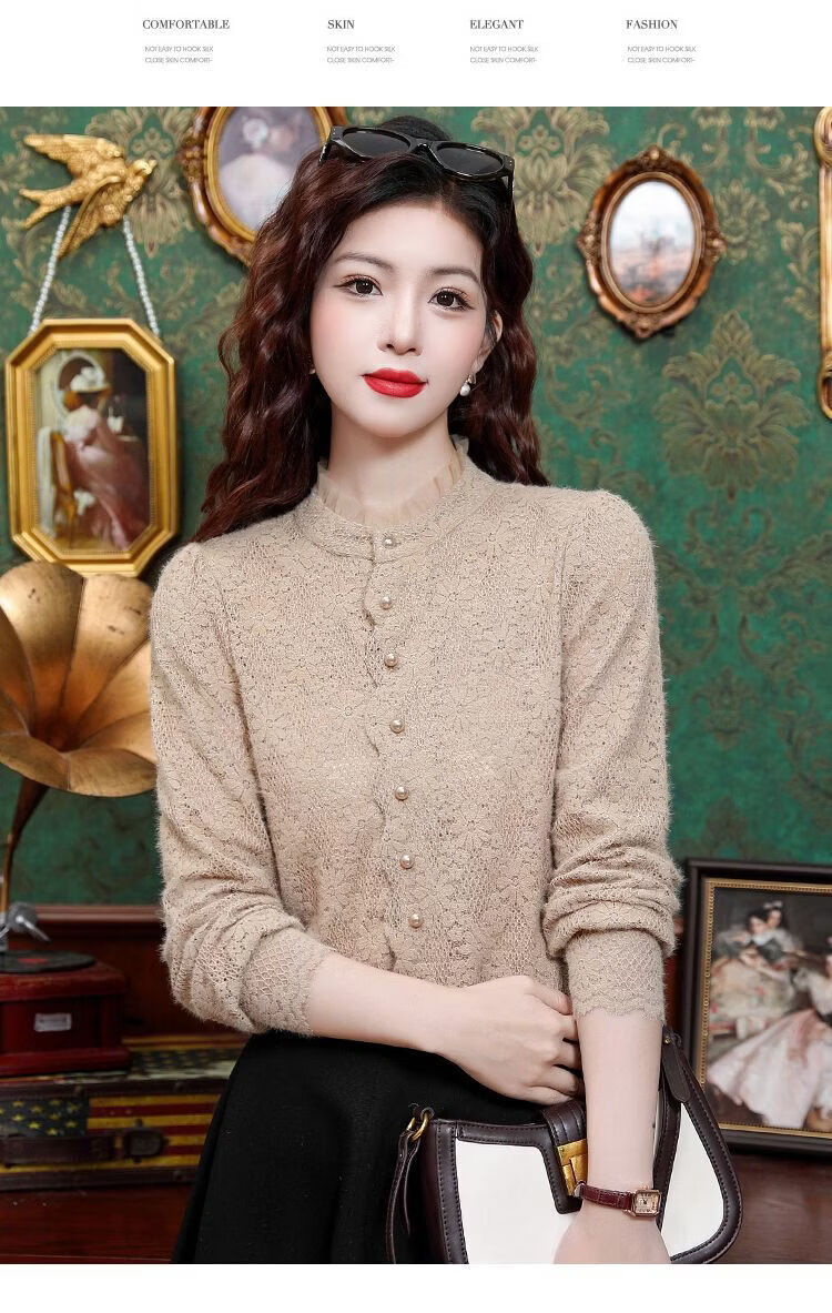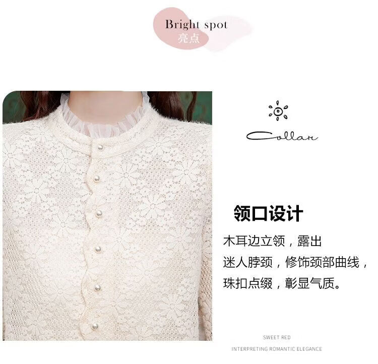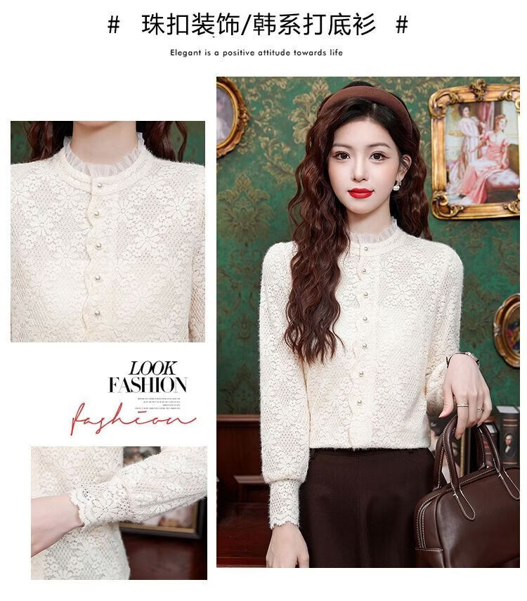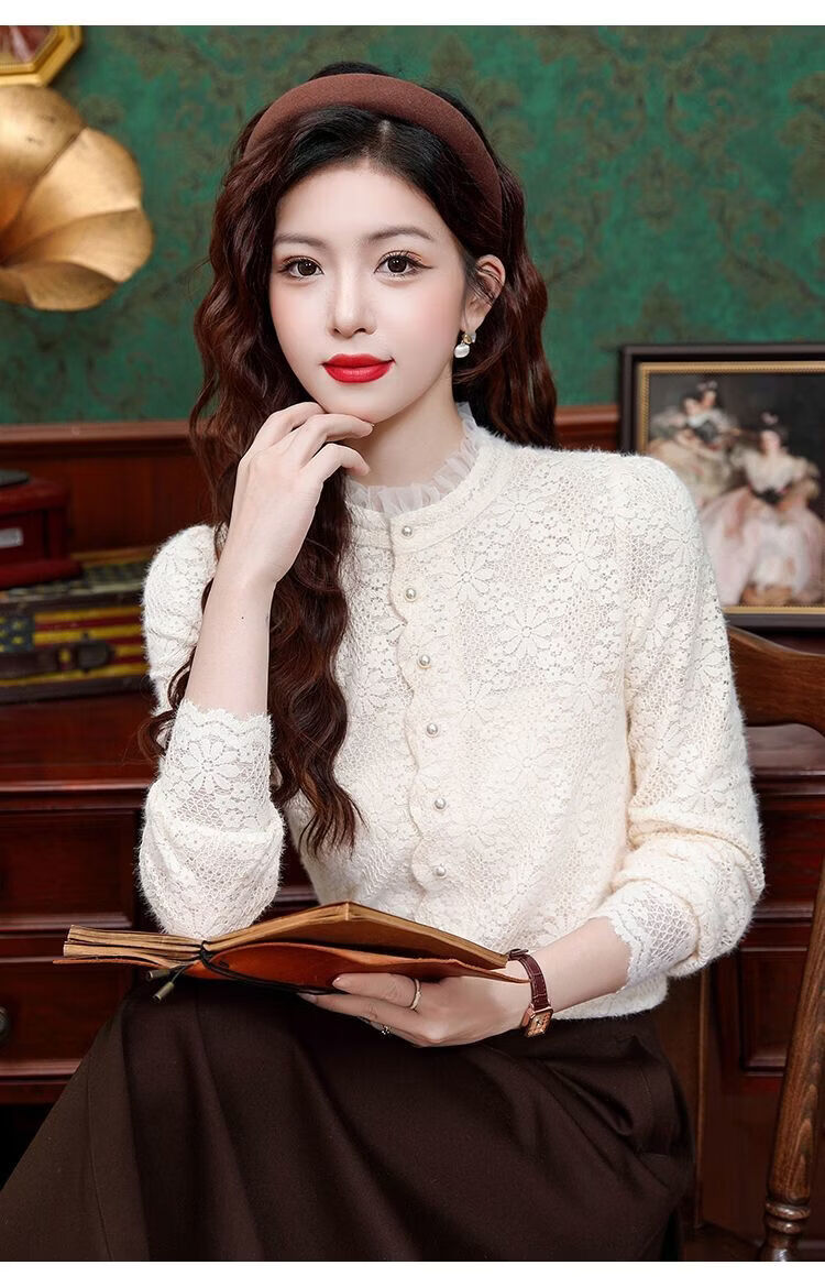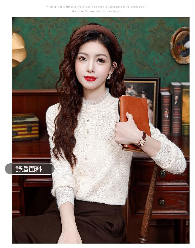 ROMON velvet thickened French lace shirt for women 2026 autumn and winter new style long-sleeved shirt bottoming shirt for women apricot regular style 2XL recommended 128-138Jin Jin equals 0.5 kg