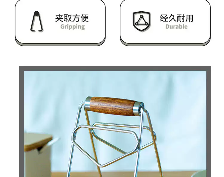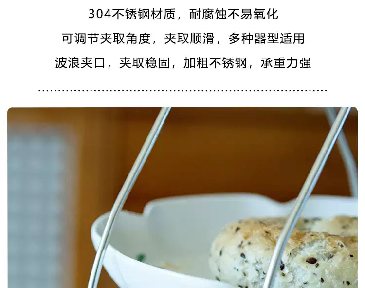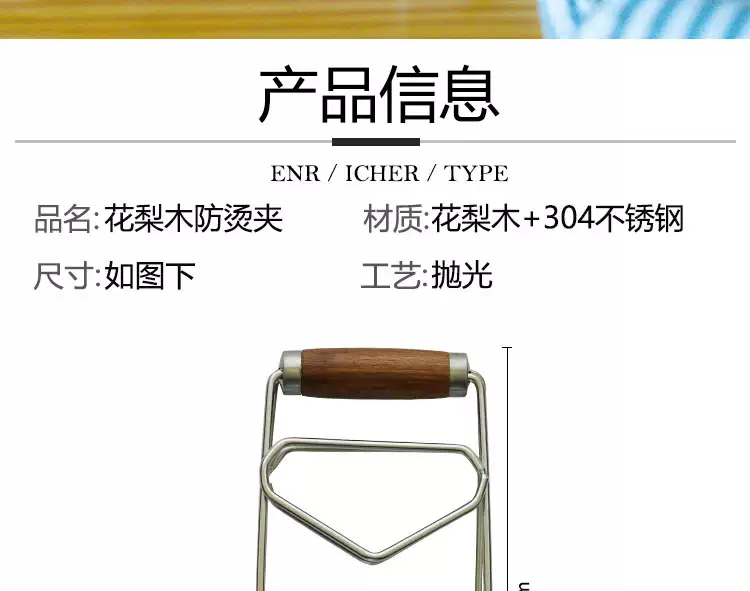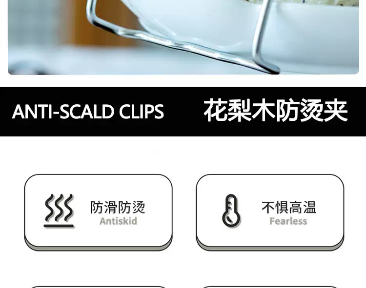 Yusenyi plate household bowl clamp kitchen jacquard pear wood stainless steel clamp 304 steaming vegetable steamer artifact anti-scalding hand clamp rosewood anti-scalding clamp 1