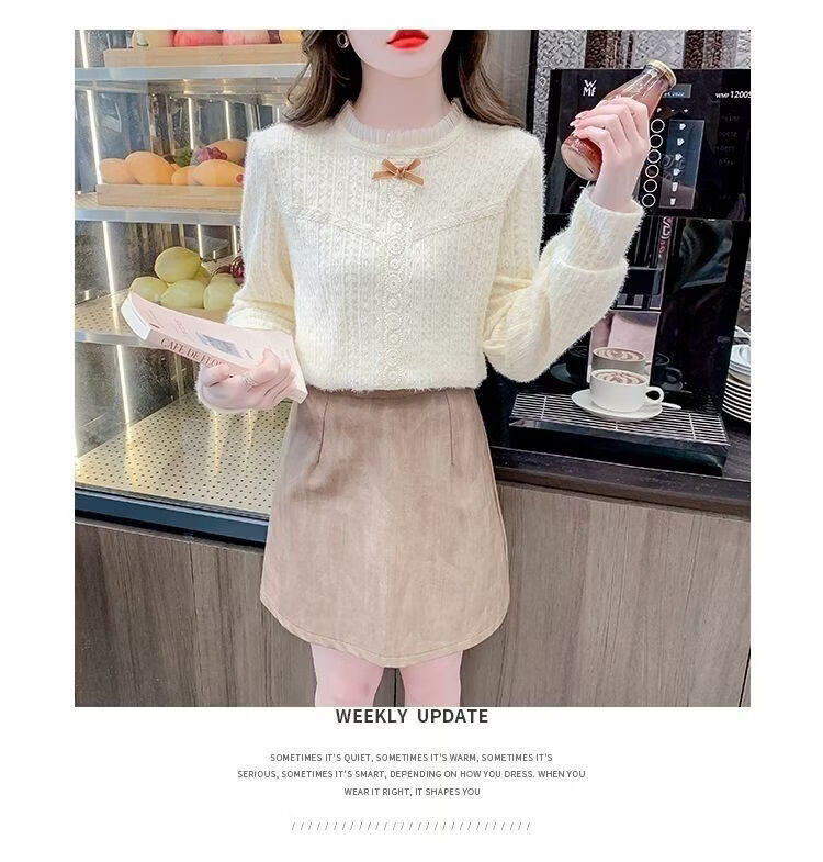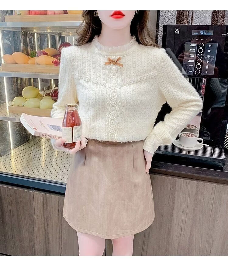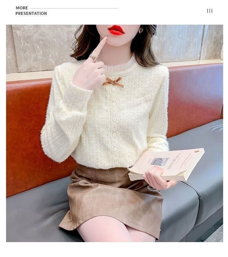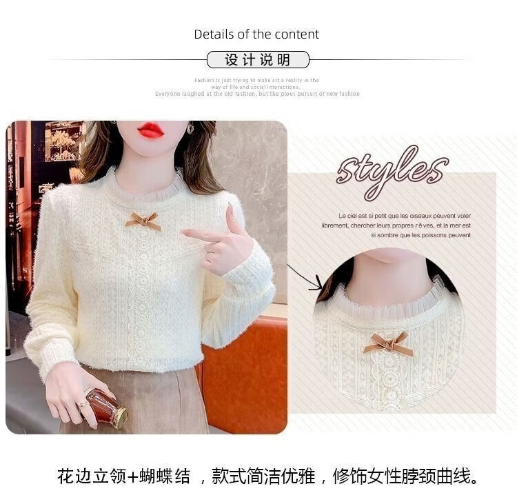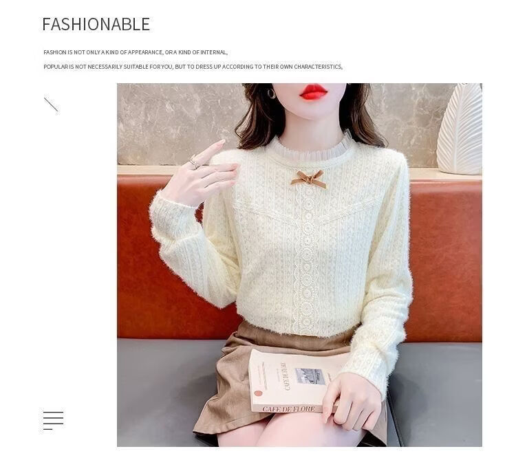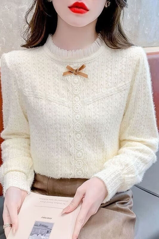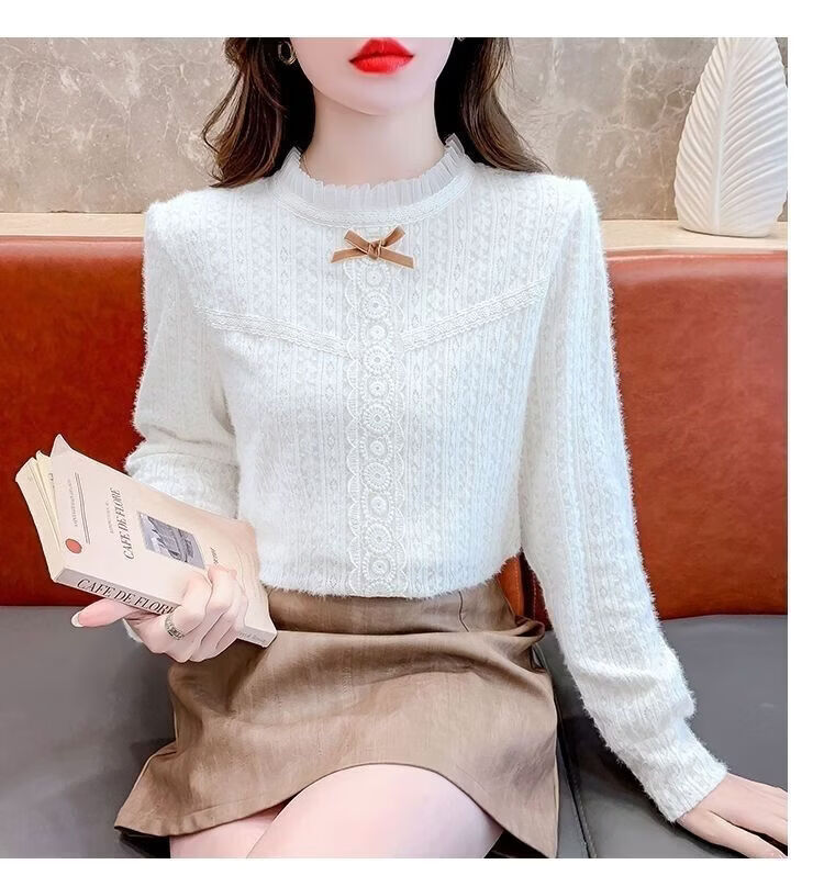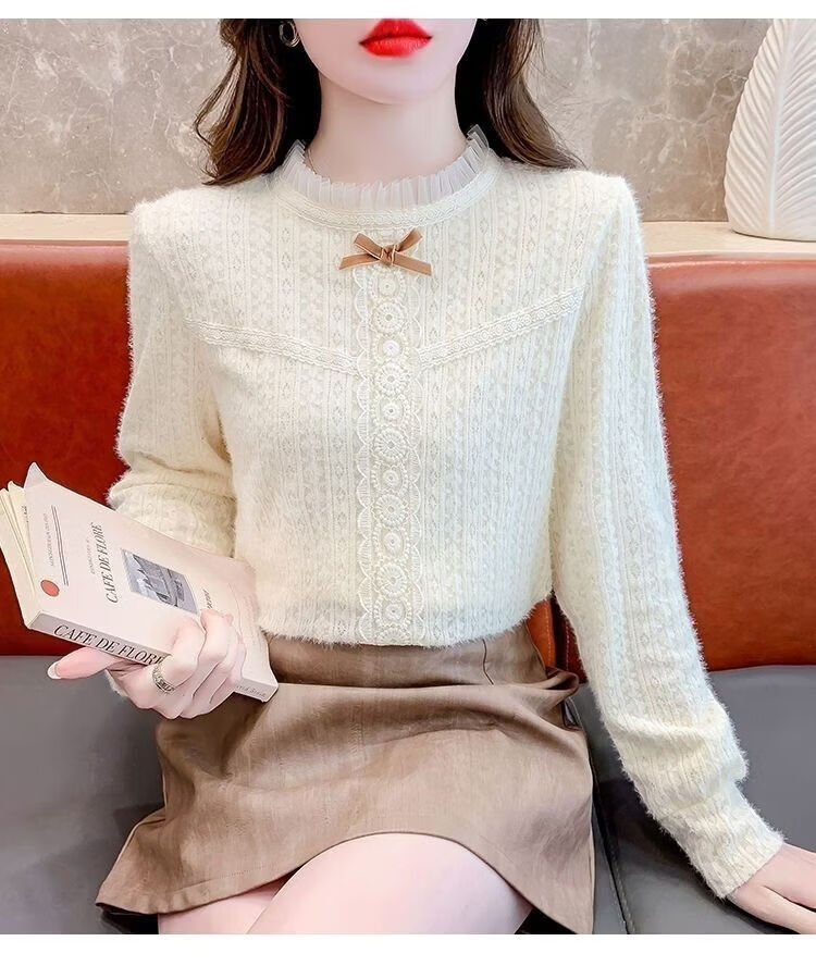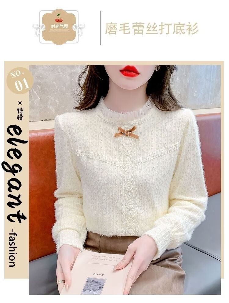 ROMON French velvet thickened lace inner bottoming shirt for women autumn and winter 2026 new style foreign style age-reducing top with high-end feel apricot plus velvet S 75-90 Jin Jin is equal to 0.5 kg