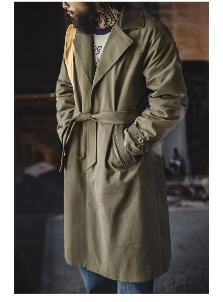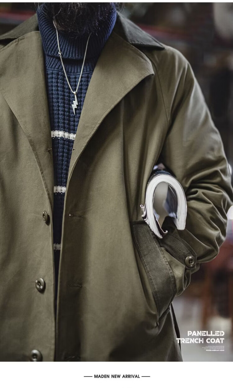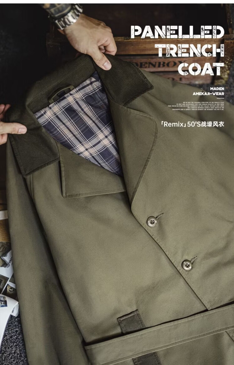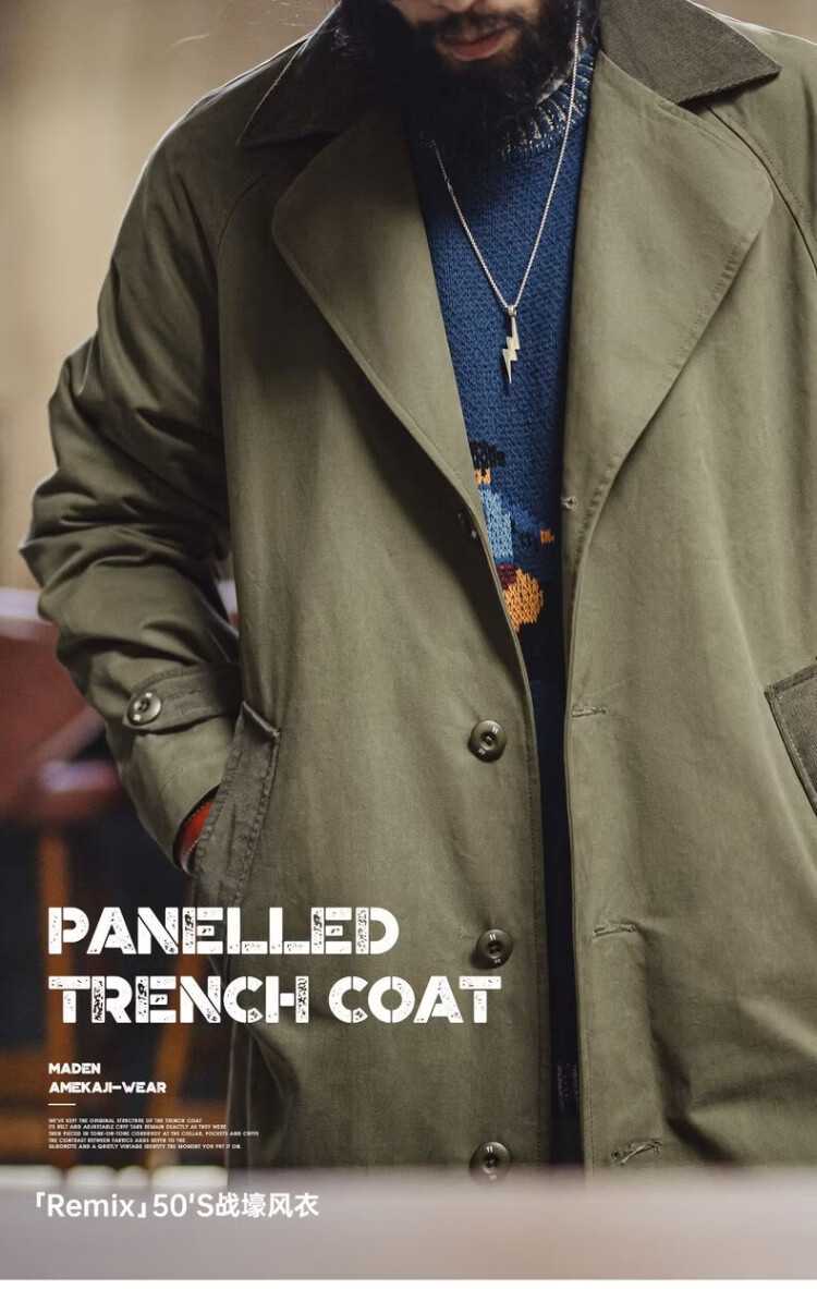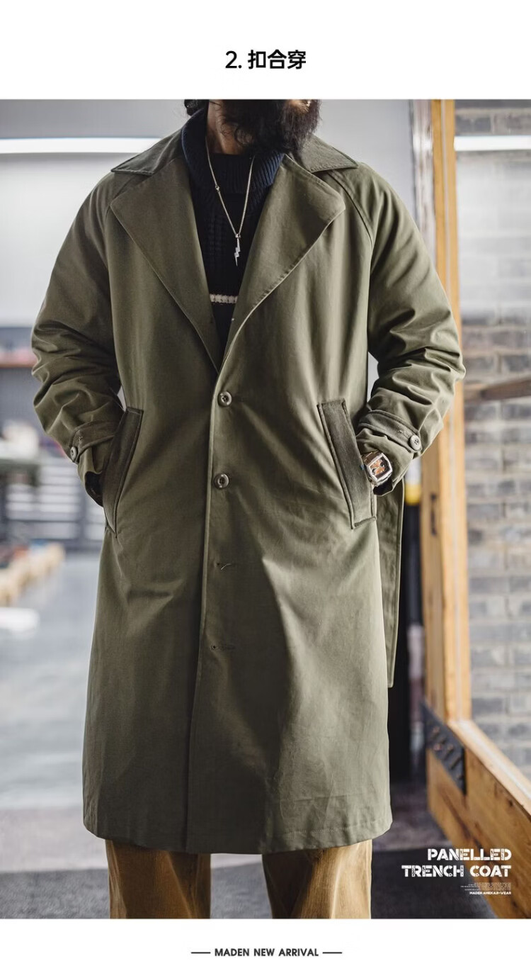 Madden workwear American retro 50s trench coat men's British style mid-length military coat lapel cotton jacket men's military green oversize/men's windbreaker 2026 new style/boys handsome style top M