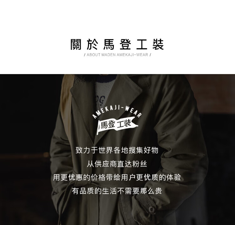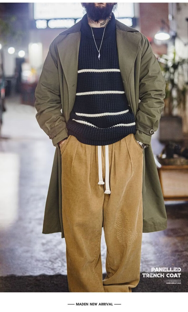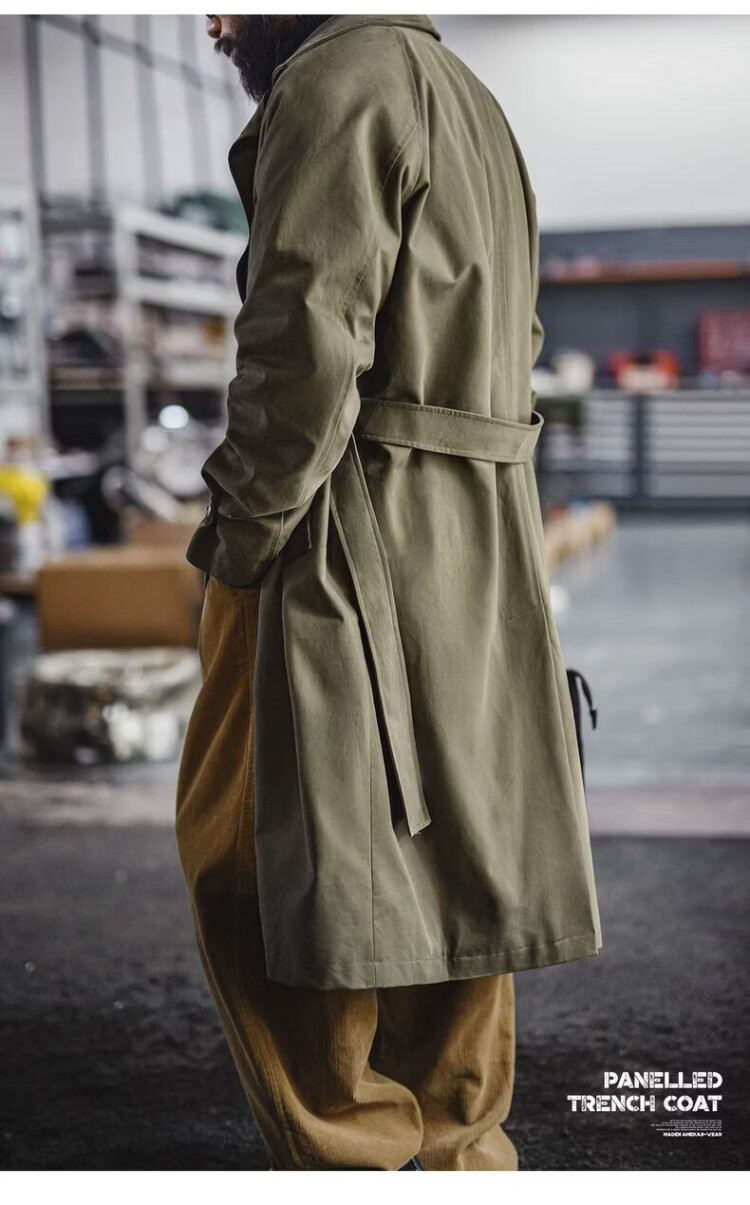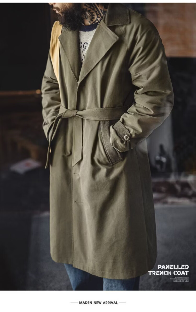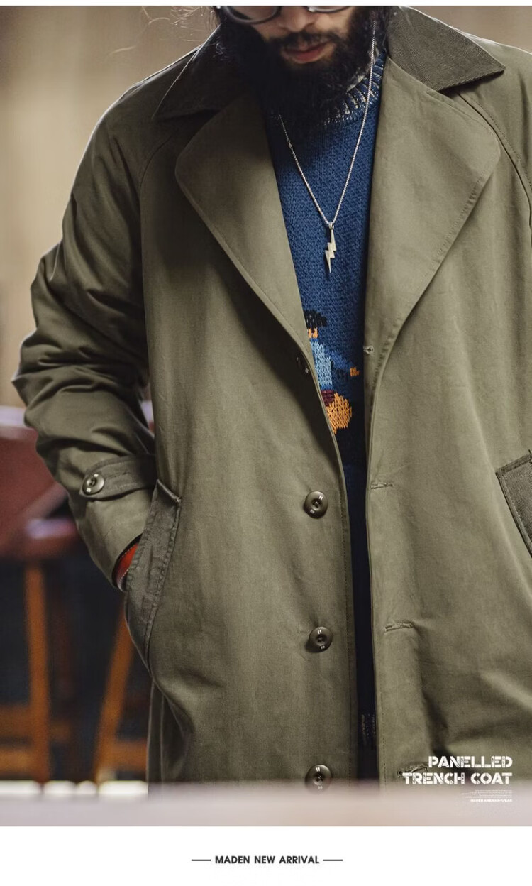 Madden workwear American retro 50s trench coat men's British style mid-length military coat lapel cotton jacket men's military green oversize/men's windbreaker 2026 new style/boys handsome style top M