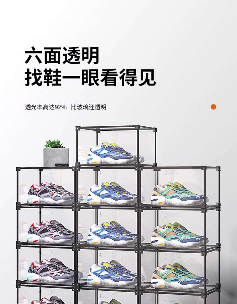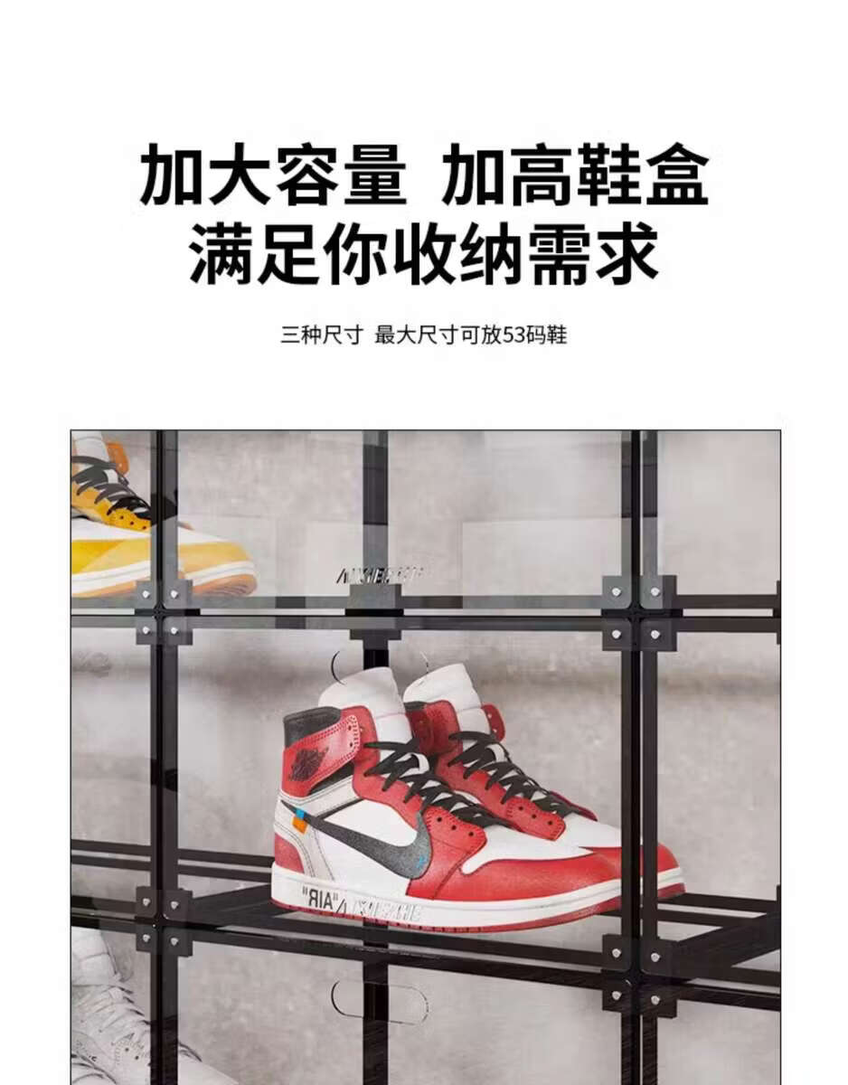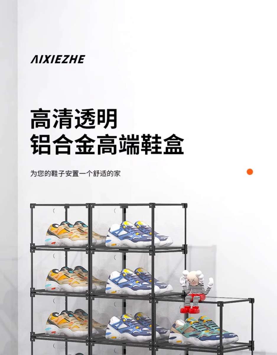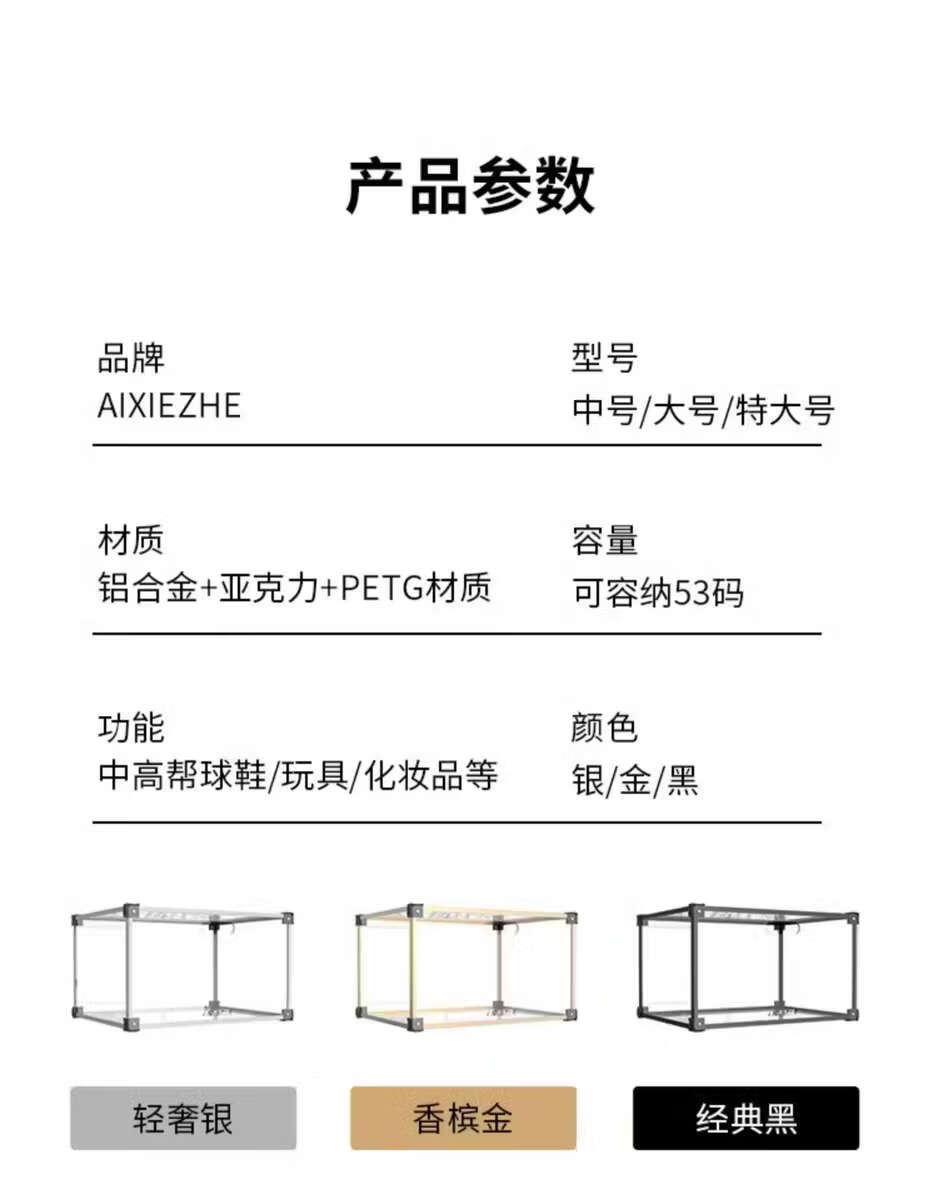 He Jiagong AIXIEZHE Chinese style large capacity transparent acrylic shoe cabinet magnetic side kick-off sneaker display box champagne gold 40 pieces 325x270x190mm