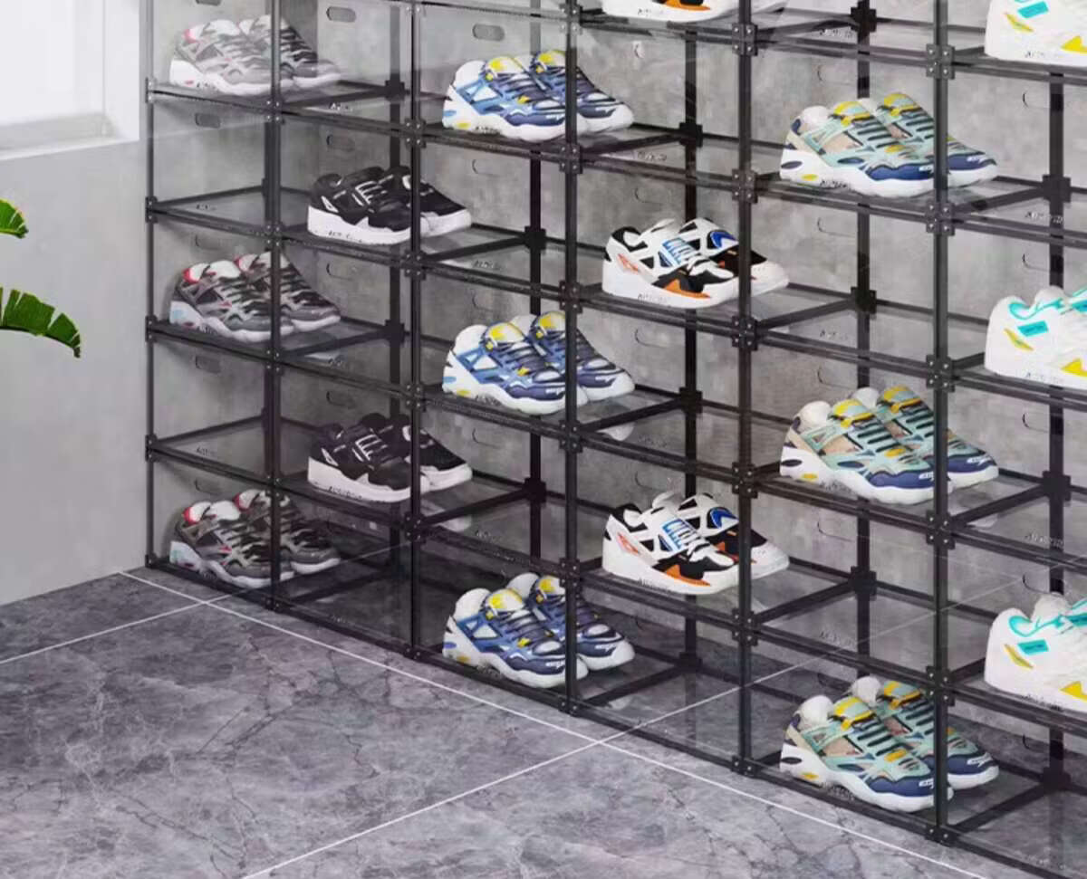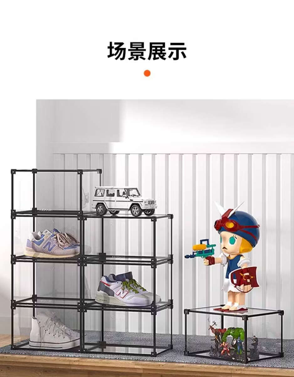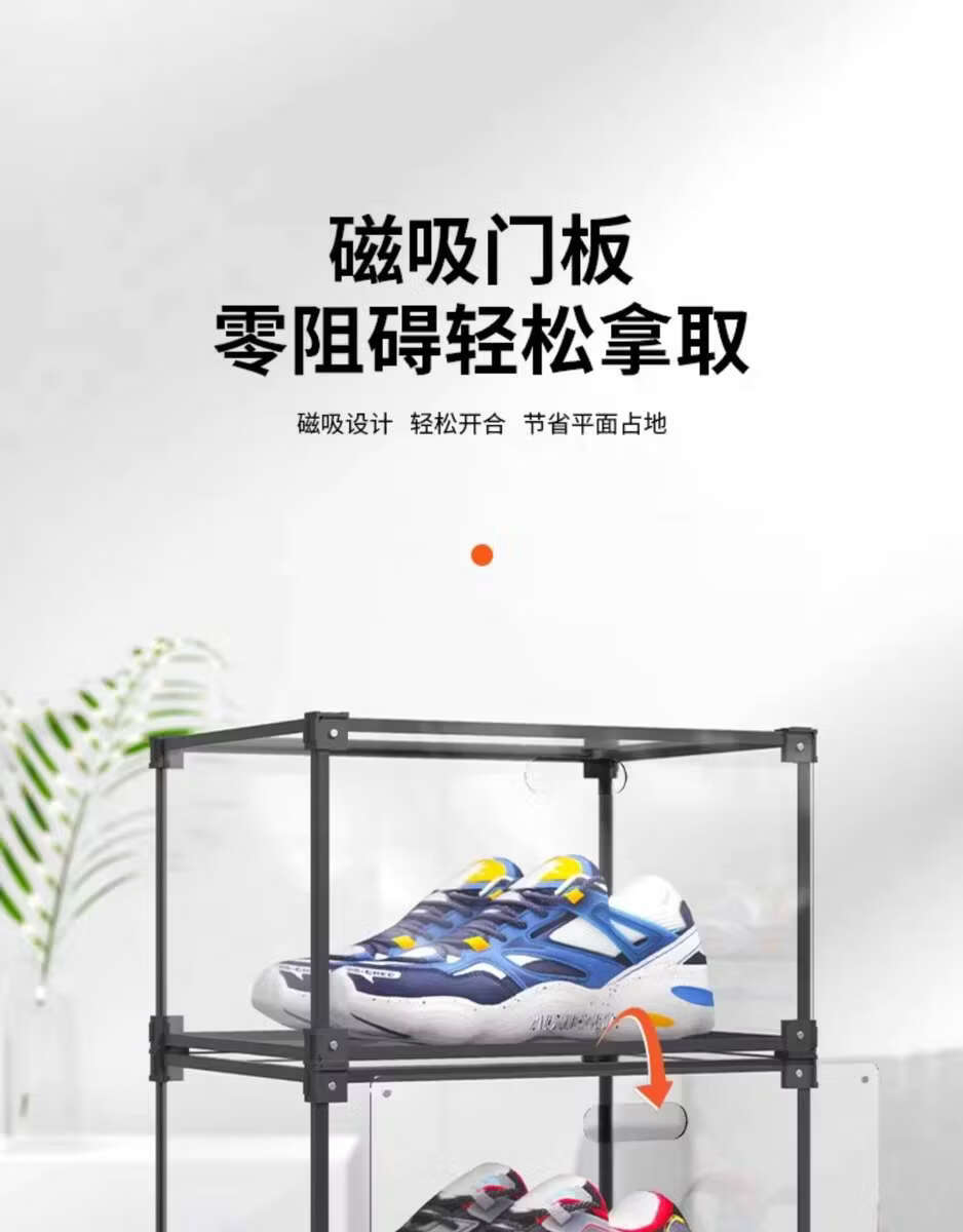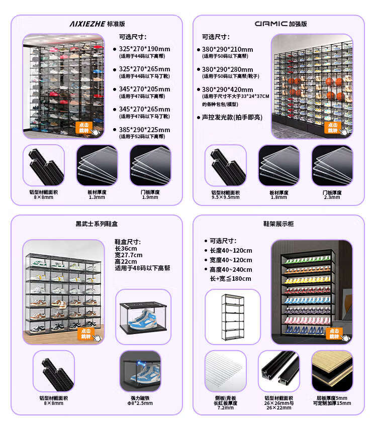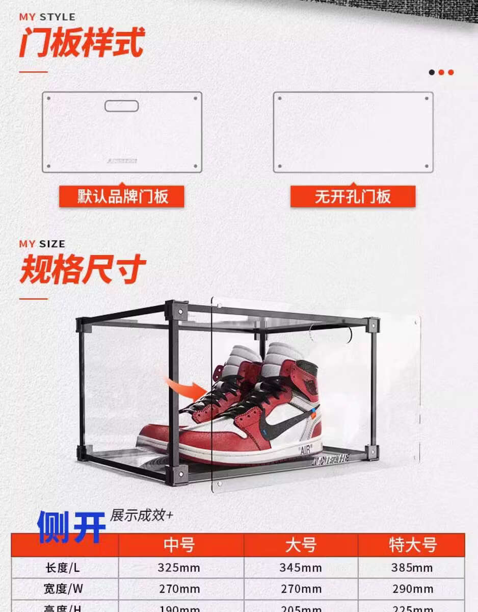 He Jiagong AIXIEZHE Chinese style large capacity transparent acrylic shoe cabinet magnetic side kick-off sneaker display box champagne gold 40 pieces 325x270x190mm