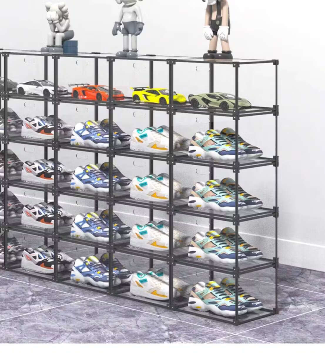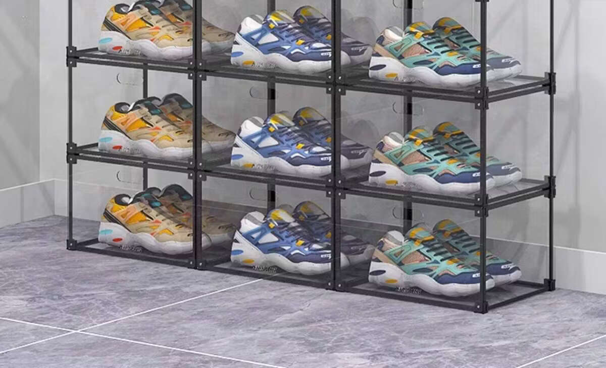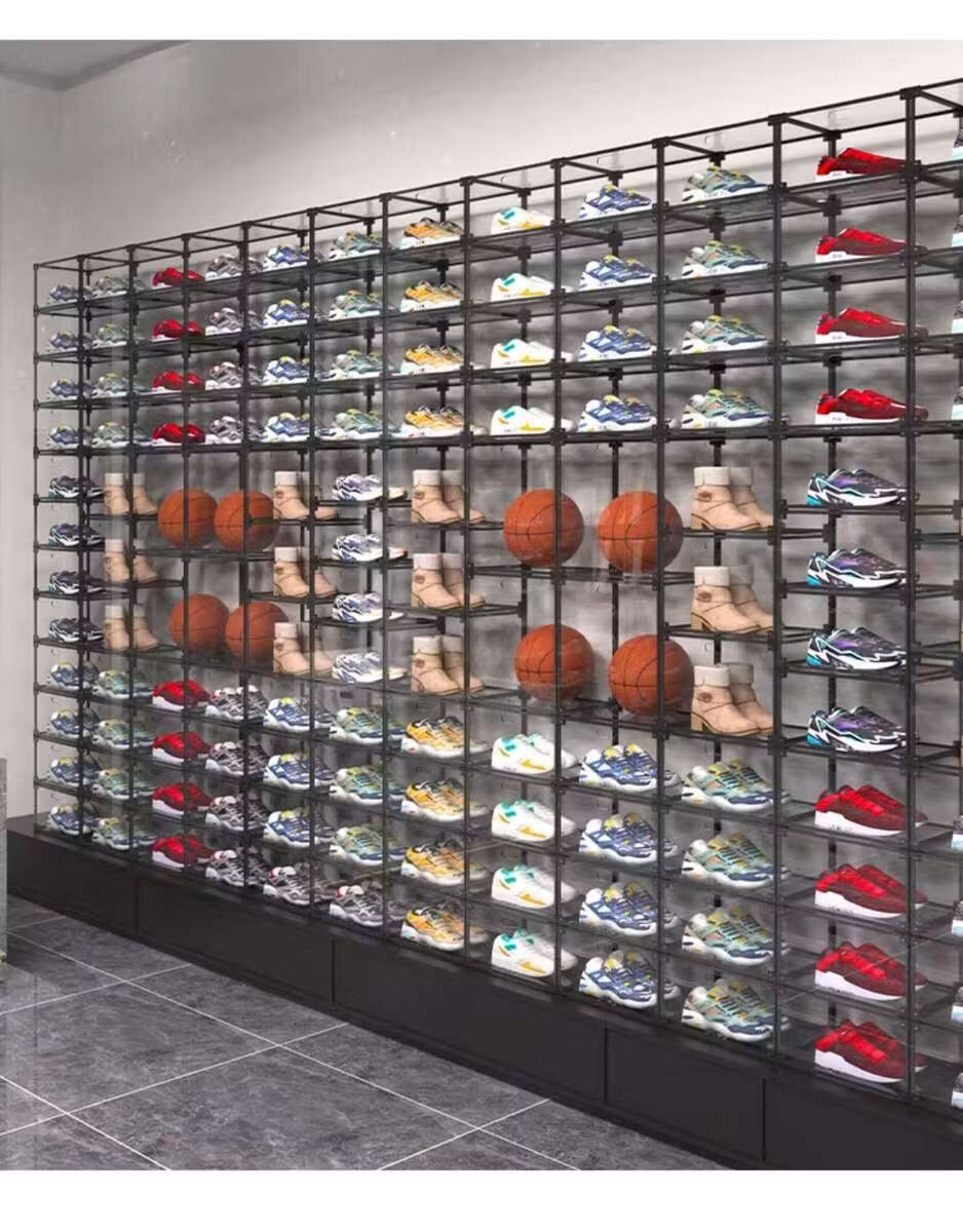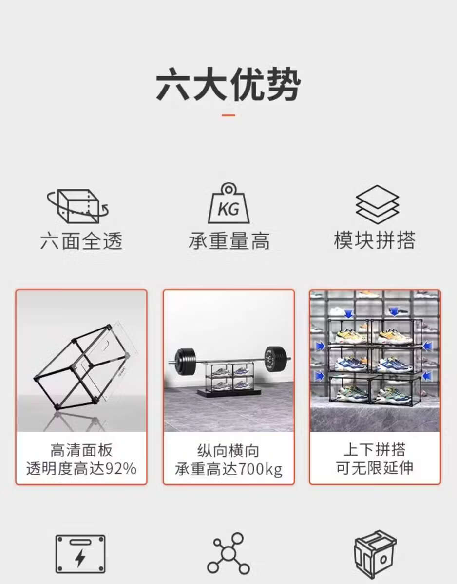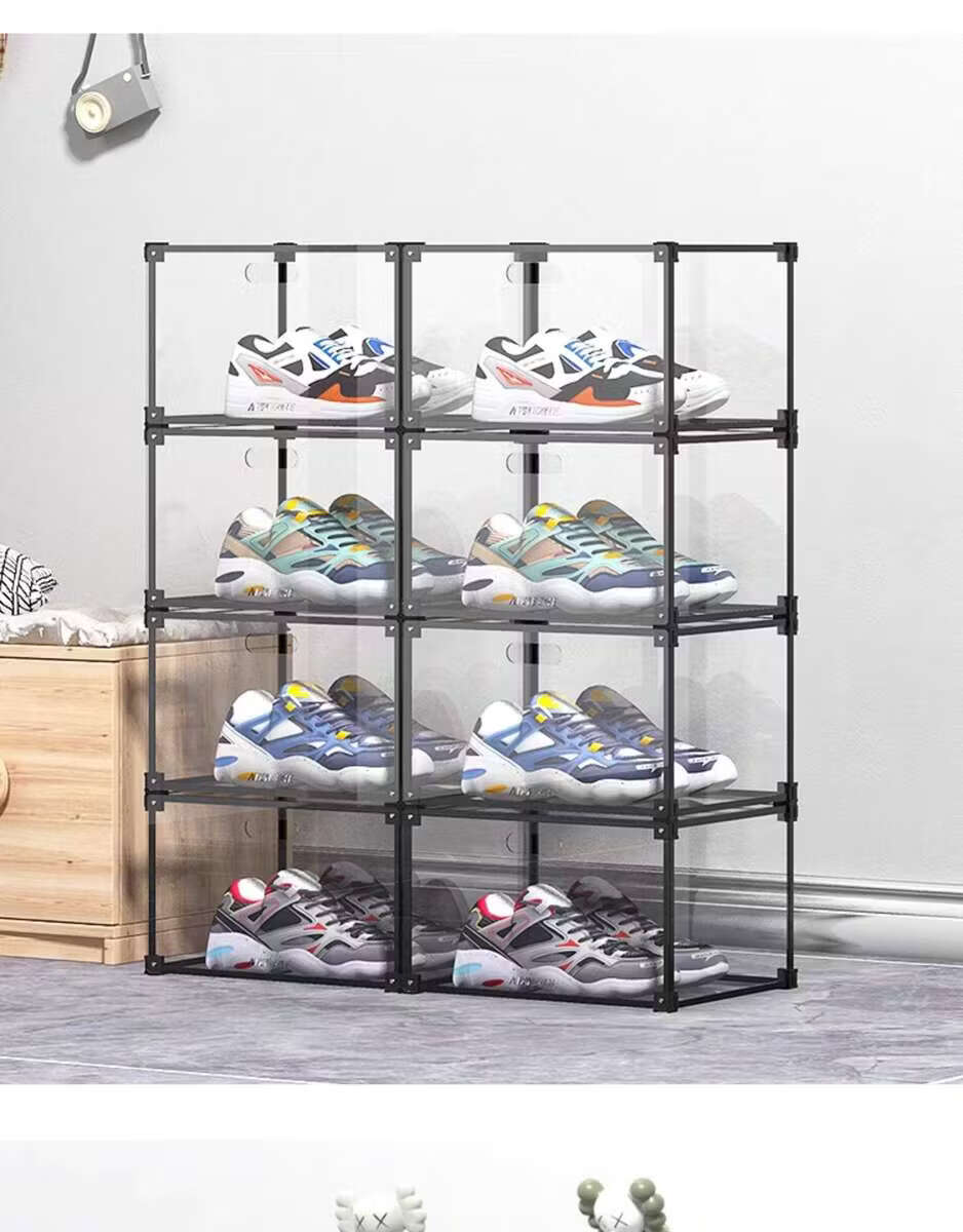 He Jiagong AIXIEZHE Chinese style large capacity transparent acrylic shoe cabinet magnetic side kick-off sneaker display box champagne gold 40 pieces 325x270x190mm