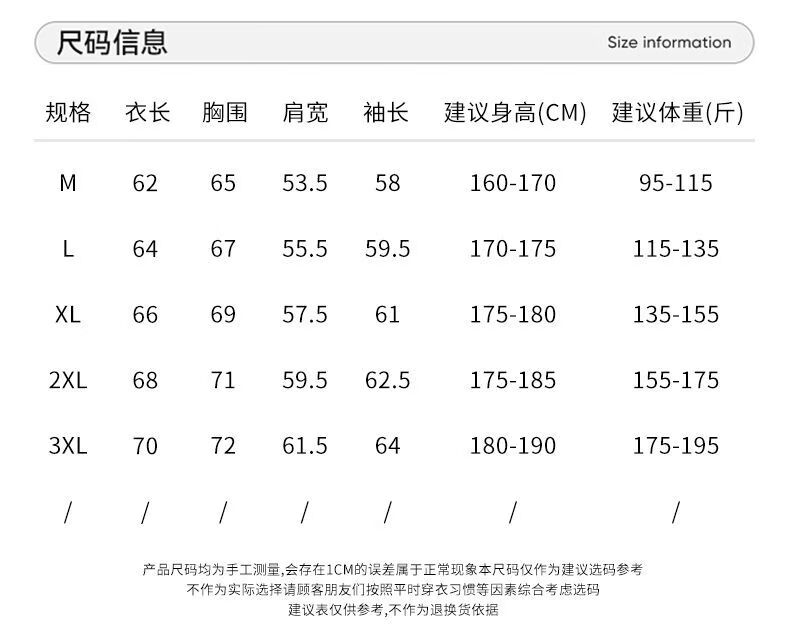 China (cm) 165 / 88-90 170 / 96-98 175 / 108-110 180 / 118-122 185 / 126-130