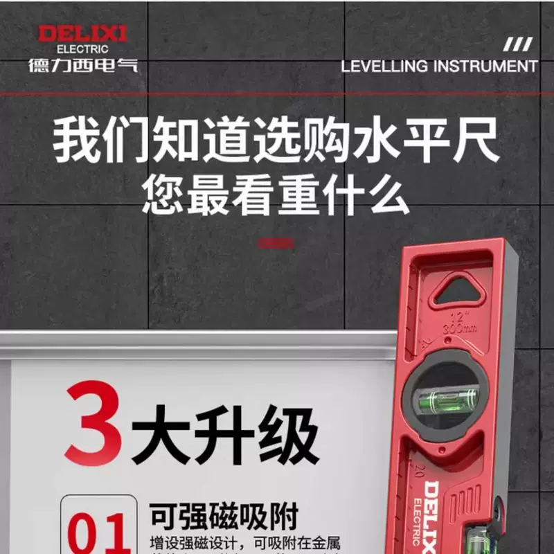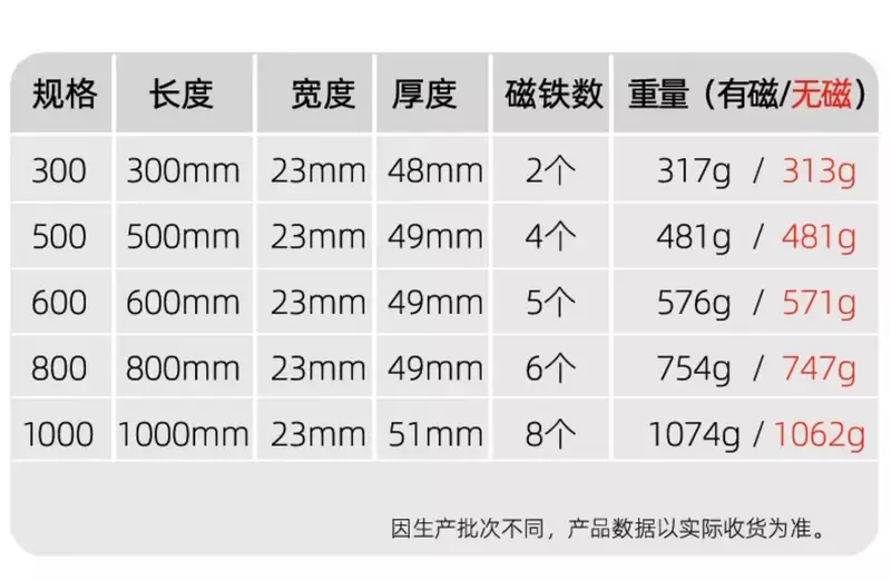 Yusenyi Kanglixi Electric Strong Magnetic Water Leveling Ruler Small Multifunctional Aluminum Alloy High Precision Solid Level (Level x2) 1000mm Solid Cast Aluminum (Strong Magnetic) Industrial Grade High Precision