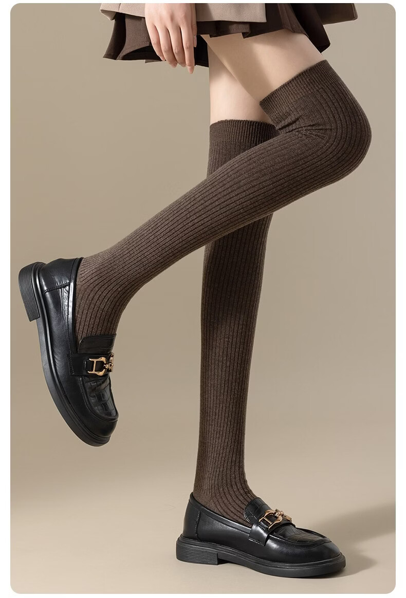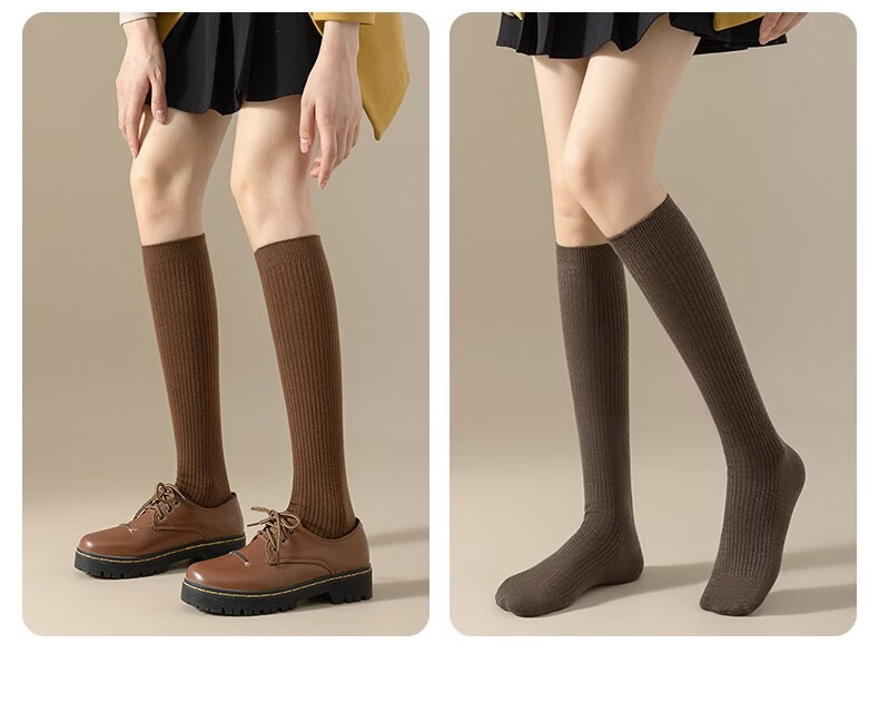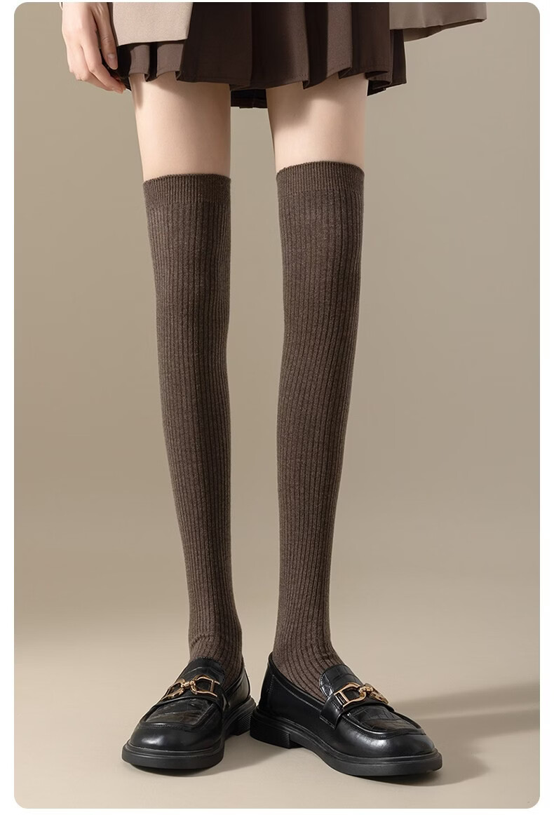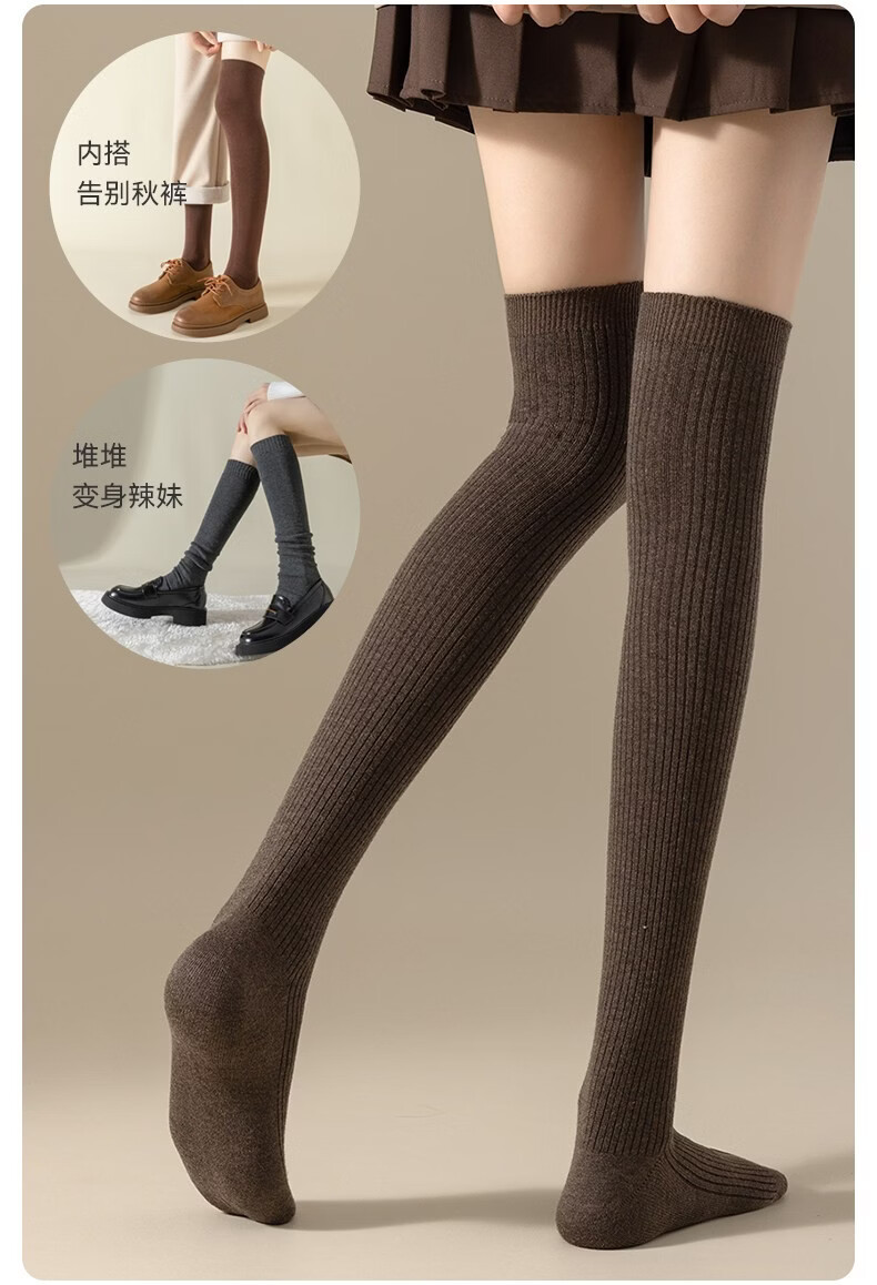 Modal Wool Socks Women's Autumn and Winter Warm Pressure Slimming Calf Socks Warm Knee Protectors Anti-Slip Long Over-the-Knee Socks Stockings - Khaki + Brown 2 pairs in total One size fits all Pressure Slimming/Warm Knee Protectors
