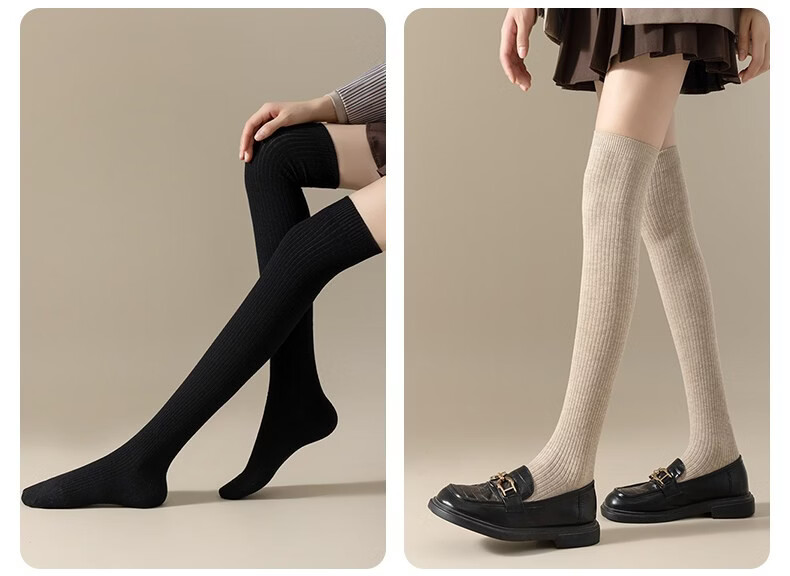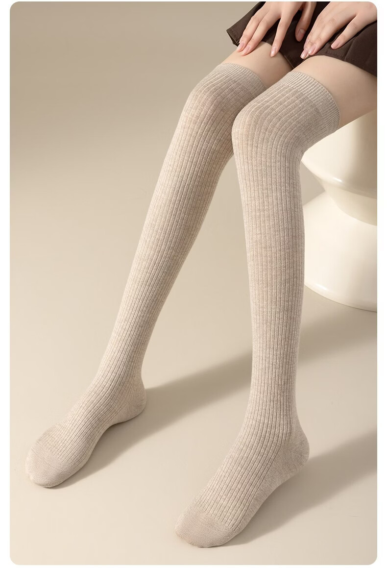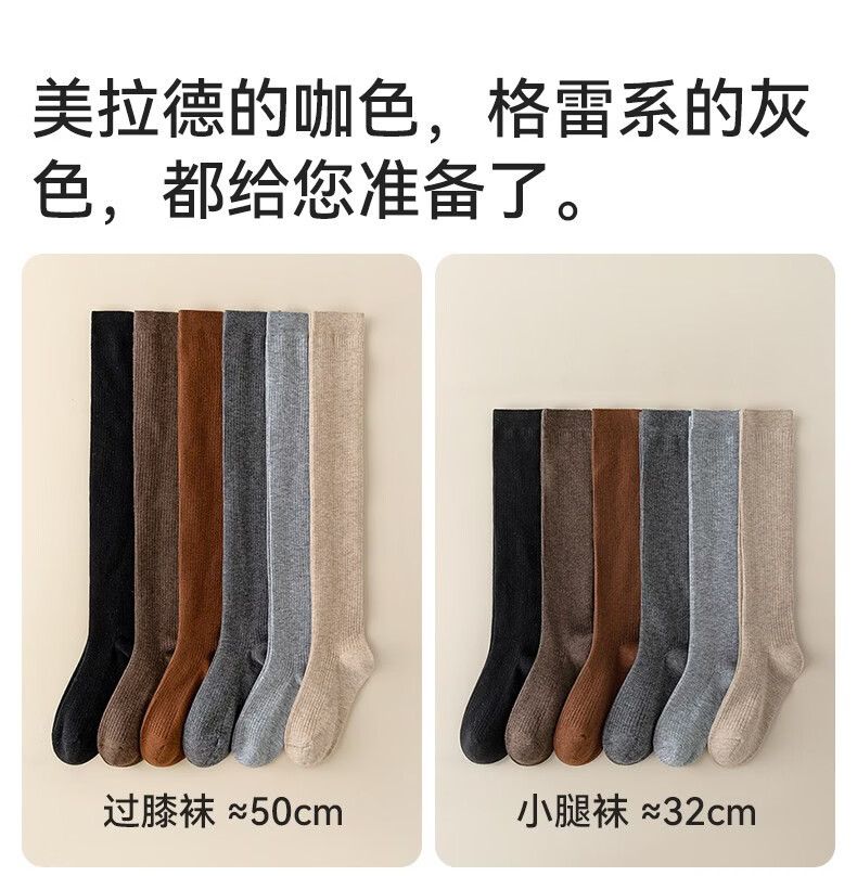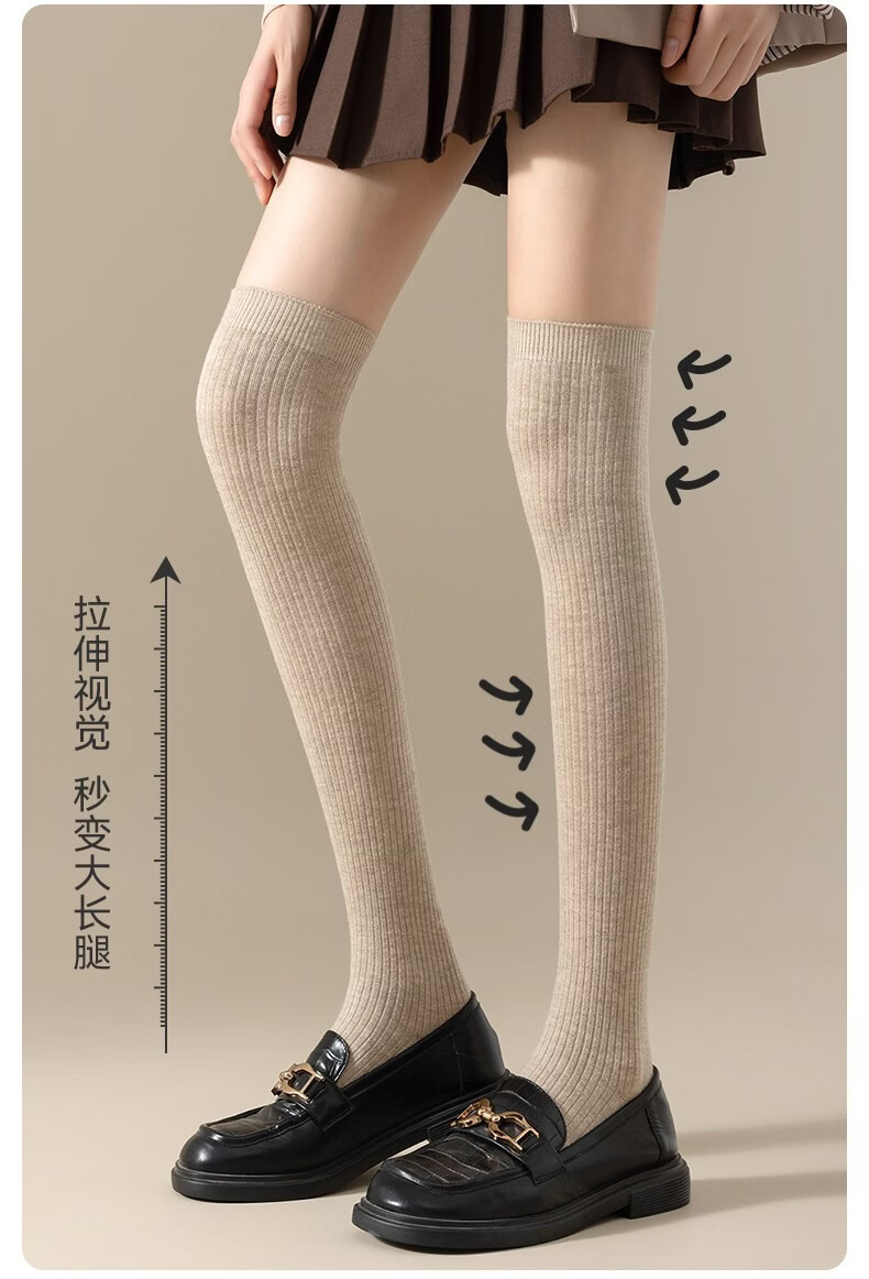 Modal Wool Socks Women's Autumn and Winter Warm Pressure Slimming Calf Socks Warm Knee Protectors Anti-Slip Long Over-the-Knee Socks Stockings - Khaki + Brown 2 pairs in total One size fits all Pressure Slimming/Warm Knee Protectors