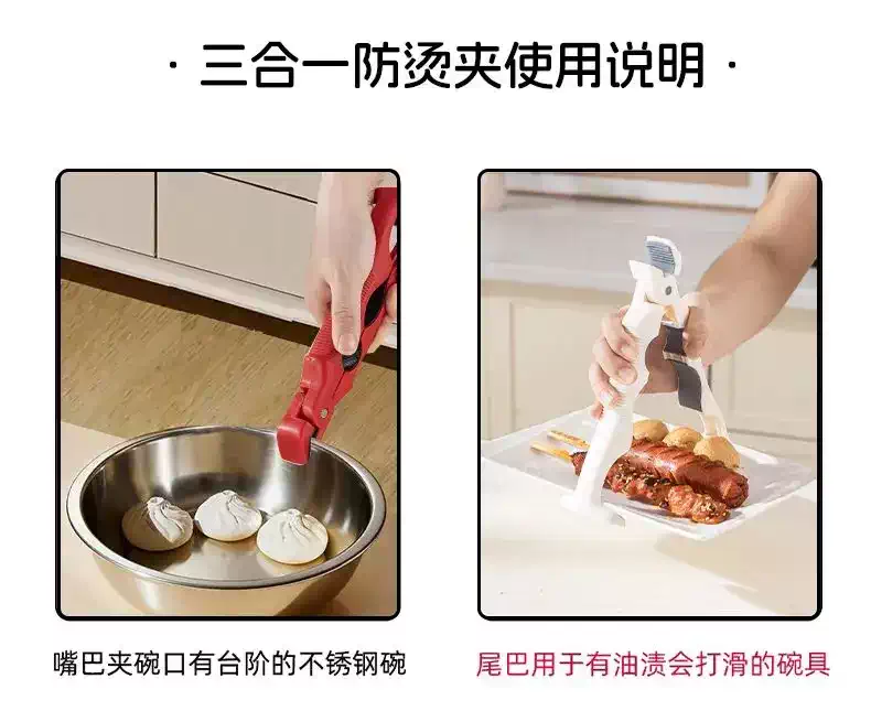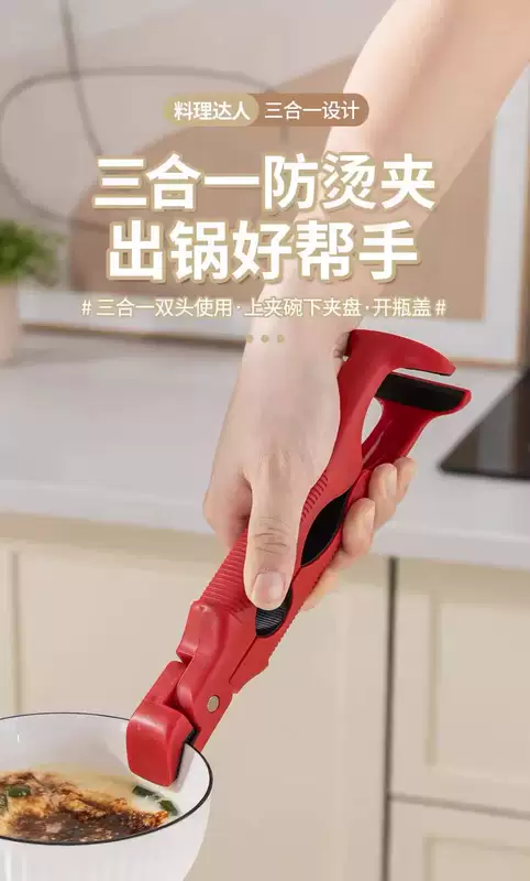 Yusenyi's new three-in-one anti-scalding silicone kitchen multi-functional bowl clamp artifact kitchen plate and bowl clamp white (three-in-one) double head uses two calibers to open bottle caps