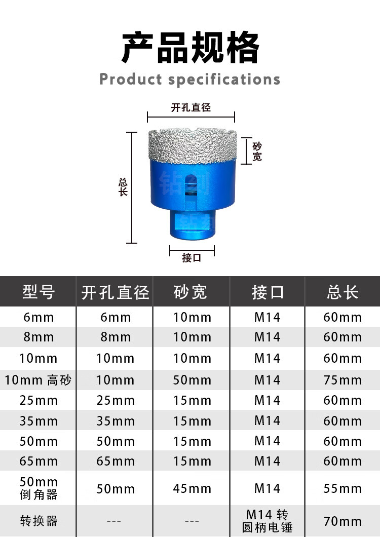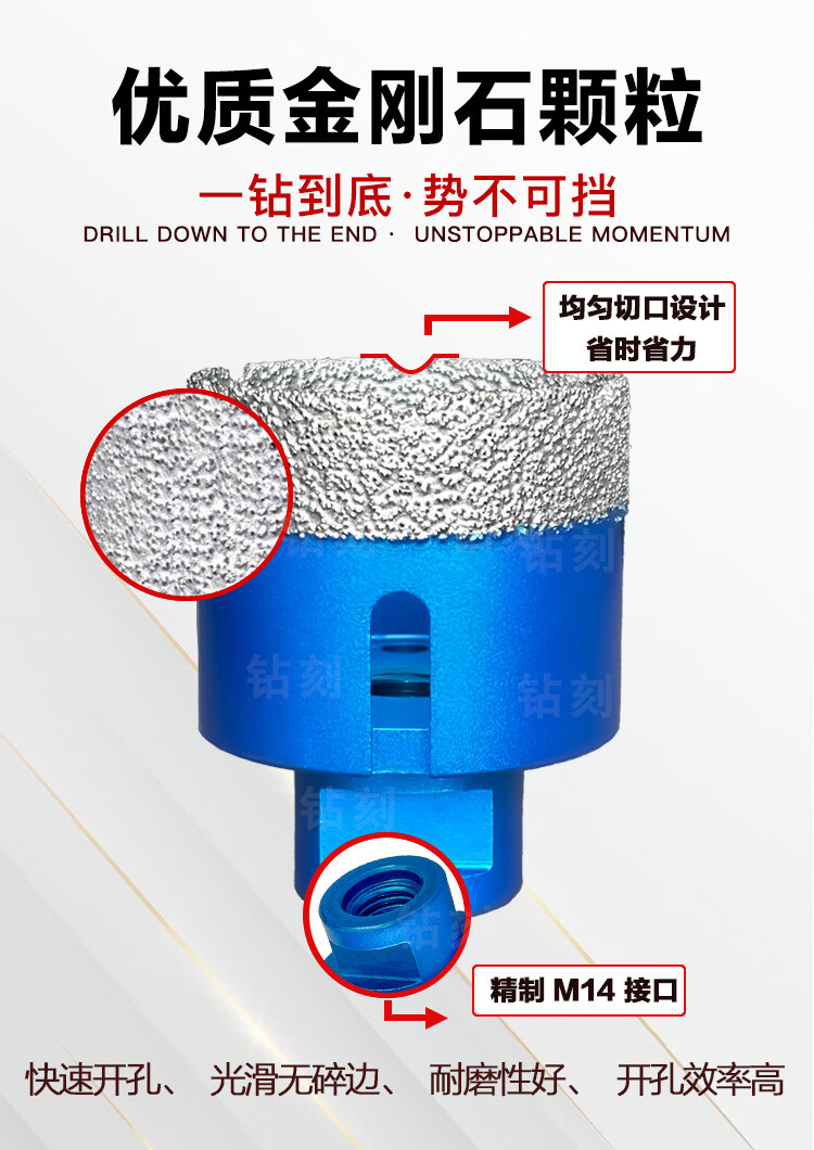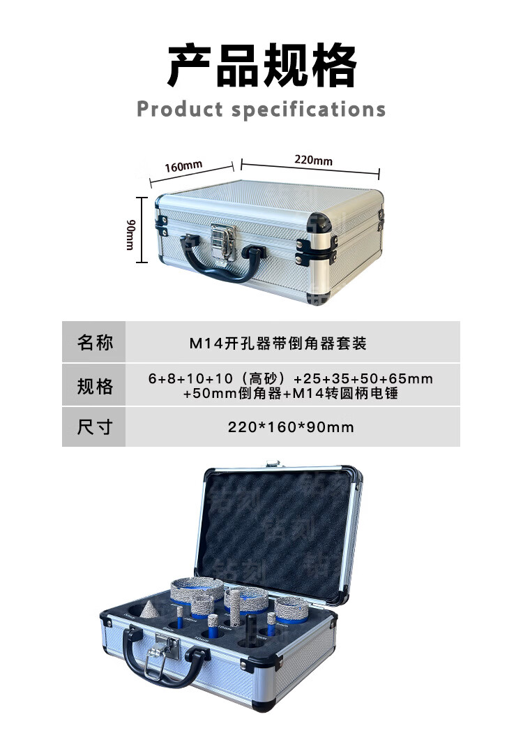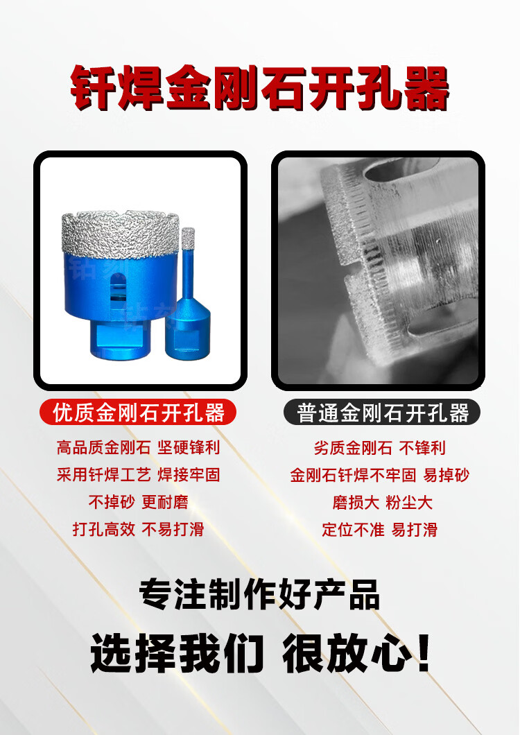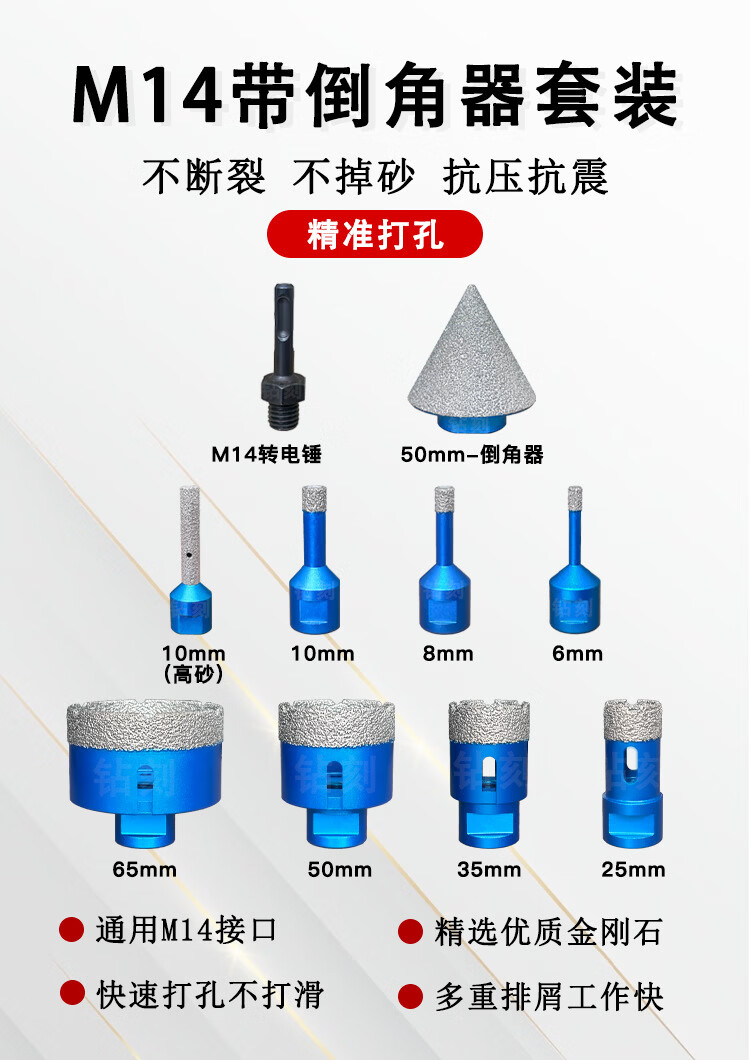 He Jiagong cross-border M14 brazed diamond hole opener set marble glass tile stone reaming drill bit 6+8+10+25+35+50+65+edge trimmer 10+